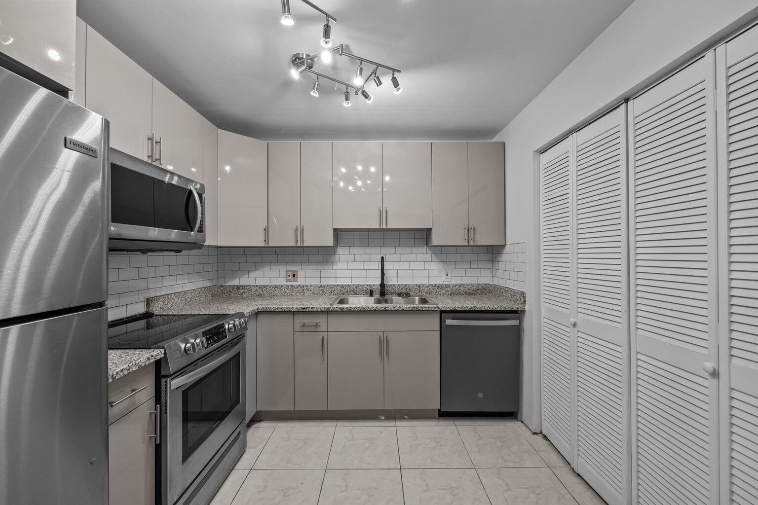 Bright and spacious 2-bedroom, 2-bath townhome located in a very well-maintained community just 15 minutes from the beach. This gorgeous home features high vaulted ceilings at the entryway, a modern split bedroom floor plan, and beautiful tile & laminate flooring throughout. The renovated kitchen offers granite countertops, a sleek backsplash, stainless steel appliances, and a full-size washer and dryer. The master suite includes an en suite bathroom, a walk-in closet, and sliding glass doors leading to the private fenced-in patio with a covered area, perfect for relaxing or entertaining. Conveniently located just minutes from I-95, and surrounded by restaurants, shops, and grocery stores. Schedule your showing today!