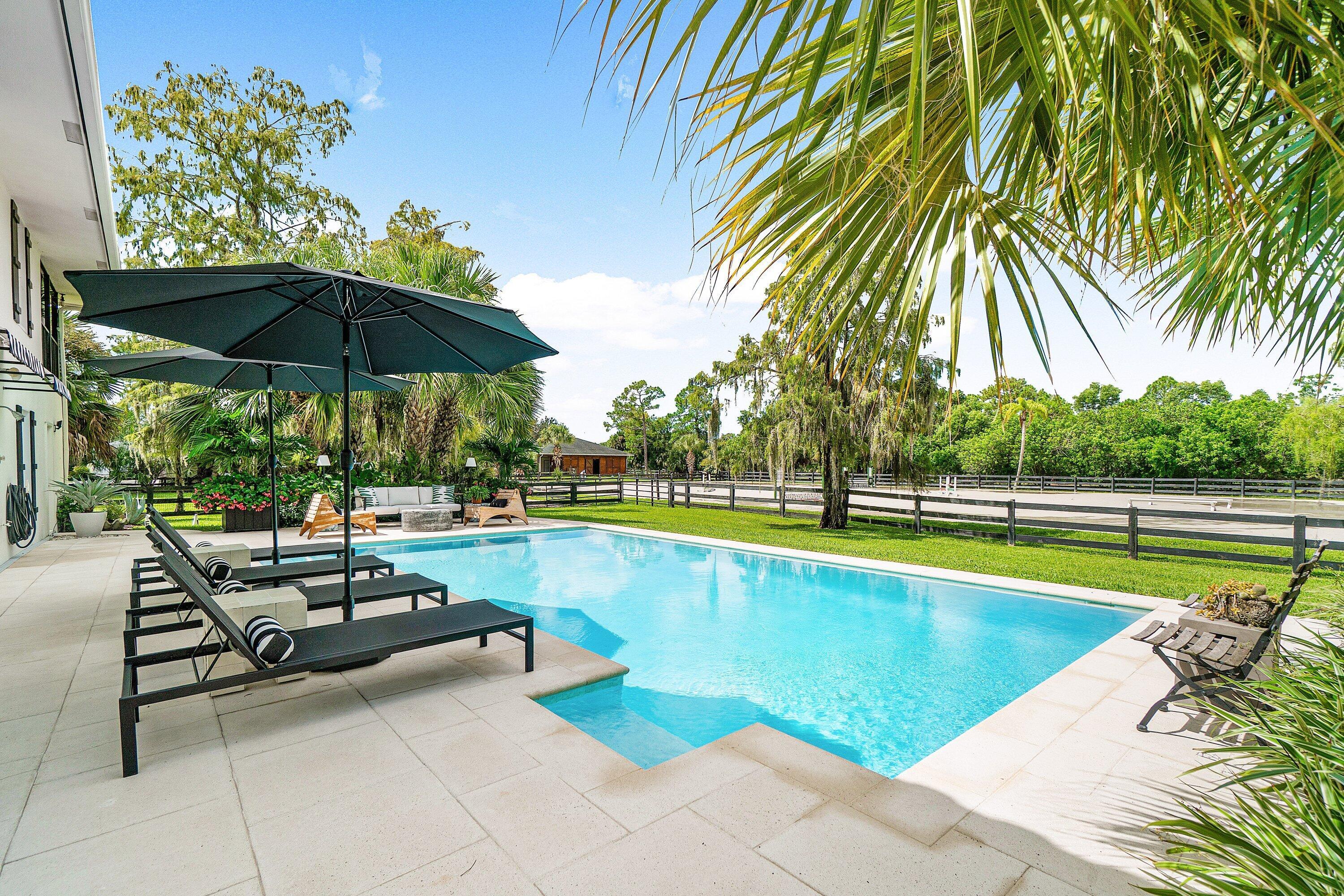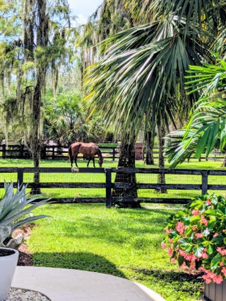 EQUESTRIAN'S PARADISE with PALM BEACH ISLAND STYLING! This is a LIFESTYLE choice! Tremendous opportunity to own a perfect blend of ''horse paradise'' and ''owner comfort'' with this masterfully re-designed property. Enjoy morning coffee on your front porch or barn, then host delightful dinner parties w/ friends on your stunning pool deck at sunset. Let your horses train hard, then relax as horses should on the 5 huge, grassy paddocks and in their own spacious ''in & outs'' attached to all 7 stalls. Bonus features: Whole House Backup Generator powers home, barn & the well! Full Impact Windows, Tankless Water Heater, & Fiber Optic Wi-Fi makes for easy living. You'll love this home where 20 miles of scenic & safe riding trails grace your property right out your back gate. Covered OK.~ The property has plenty of room to expand the barn by 4-5 additional stalls added at the back of the existing barn, or even more can be added with a 2nd barn if desired. A Buyer will also have an option to add a "Covered" over the Arena, which is all allowed in Deer Run! The 108' x 190' arena also has room to expand both lengthwise or in width if desired...it would be very easy to expand! ~ Additional amenities include a 220V RV Hookup, extensive circular driveway with an electric gate and numerous parking options for cars and horse trailer convenience. Deer Run has contracted with HOTWIRE and installed Fiber Optic buried lines throughout the community for high quality Wi-Fi & cable service starting in 2025, which is included in the HOA Fee. ~ Water is available to all paddocks and the 7-stall barn affords 12'x12' professionally matted stalls with superior air ventilation throughout the barn enhanced by the extra tall roof design in the barn, along with the powerful center aisle and stall fans. The barn has a fly system in place and an oversized storage shed (w/ A/C) for hay, shavings and grain storage next to the barn for safety. ~ The Whole House back Up Generator is serviced by a buried 1000 gallon propane tank. Water from the 308' canal can be used for irrigation to minimize well use. The barn has close up shutters for all stall doors and Roll Down shutters at each end for storm security. ~ The home has all Impact Windows throughout, except on 3 sliding glass doors, which are covered by Panel Shutters. The entire upstairs has a new Insta-Hot electric Water heater and the ground floor has a separate Hot water heater in the garage. ~ The home is graced by 3 working fireplaces, however the current owner would recommend having them chimney swept cleaned and inspected before burning in them. He has never burned in them, but used them for ambiance only. ~ Please note, all the home's custom drapes do not convey as the owner will not include those in sale.