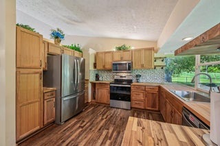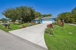 10 minutes from Tradition and St Lucie West!! Move-in ready home with no neighbors on either side or behind -- enjoy peaceful living with added privacy and beautiful views of the nearby pond! This home features a 2022 A/C, 2017 roof, and 2011 water heater. The septic system was serviced in February 2025 (can be converted to City Sewer). Inside, you'll find a modern kitchen with stainless steel appliances, new cabinets, and butcher block countertops. Relax in the screened-in porch overlooking the spacious backyard. Additional highlights include a complete home surge protector and aluminum shutters for storm protection. Great opportunity for anyone seeking a well-maintained, move-in ready property with excellent potential!