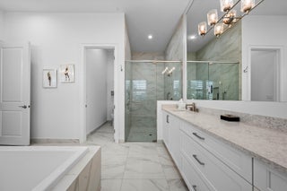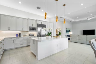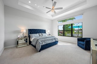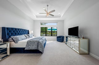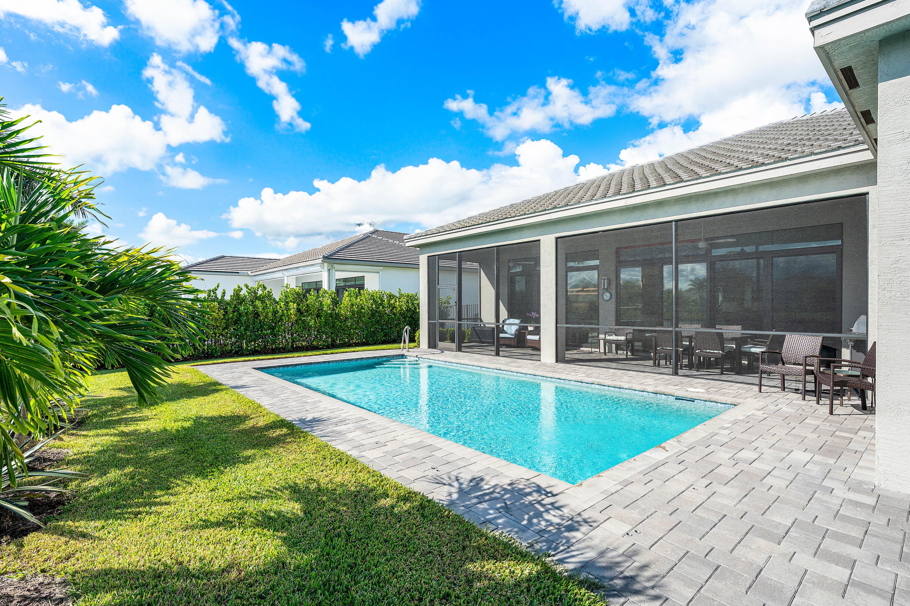 Lushly landscaped Napa model on beautiful lakefront lot. Great curb appeal-stone front, extended walkway and etched glass doors. The open concept home (4/4.1+Club Room+split 3cg) has impact windows, 24'' porcelain tile floors, designer window treatments & light fixtures, LED hi-hats, fans, custom built-ins, outfitted closets, upgraded baths and more! Gourmet kitchen w/gas, white wood cabinetry with banks of drawers and pull-outs, quartz countertops with full height backsplash, stainless hood, center island with pendant lights & more! Dining room has built-in buffet unit with storage and display. Luxurious primary suite, three ensuite guest bedrooms and formal powder room. A large Club Room has a built-in desk unit. You'll love the screened porch, fenced yard, heated pool and lake view.This home is located in Valencia Grand, a premier 55+ lifestyle community featuring a spectacular 44,000 square-foot clubhouse and top notch (nearly) 9-acre recreational facility. Endless activities and opportunities for fun abound - there are activities, trips, shows, and clubs of all types. The clubhouse features an elegant foyer and lobby, Grand ballroom with raised stage and dance floor, three spacious card rooms, Sports Lounge with billiard tables, poker tables and golf simulator, Restaurant with indoor/outdoor seating, Poolside Bar & Happy Hours at the Poolside Bar, Arts and crafts center, Catering kitchen and cooking studio, Exercise studio with ping pong, Fully equipped fitness center and men's and women's locker rooms with steam rooms and showers, outdoor yoga garden, Mind and Body Spa for everything from hair to nails to facials to massages and more! There are four pools - a beautiful Resort-style pool and Shade Pavilions, Lap pool, Resistance walking pool, Grandchildren's wading pool, and an Outdoor whirlpool spa. There are six har-tru tennis courts with shade pavilions and lighting for night play, tennis pro shop and shaded tennis and pickleball seating areas, tennis pro, league play, four indoor pickleball courts, seven outdoor pickleball courts, pickleball pro, league play, 4 bocce courts with intramural play and walking/jogging/biking paths just outside the community. Valencia Grand is conveniently located near shopping, restaurants, houses of worship and major highways!