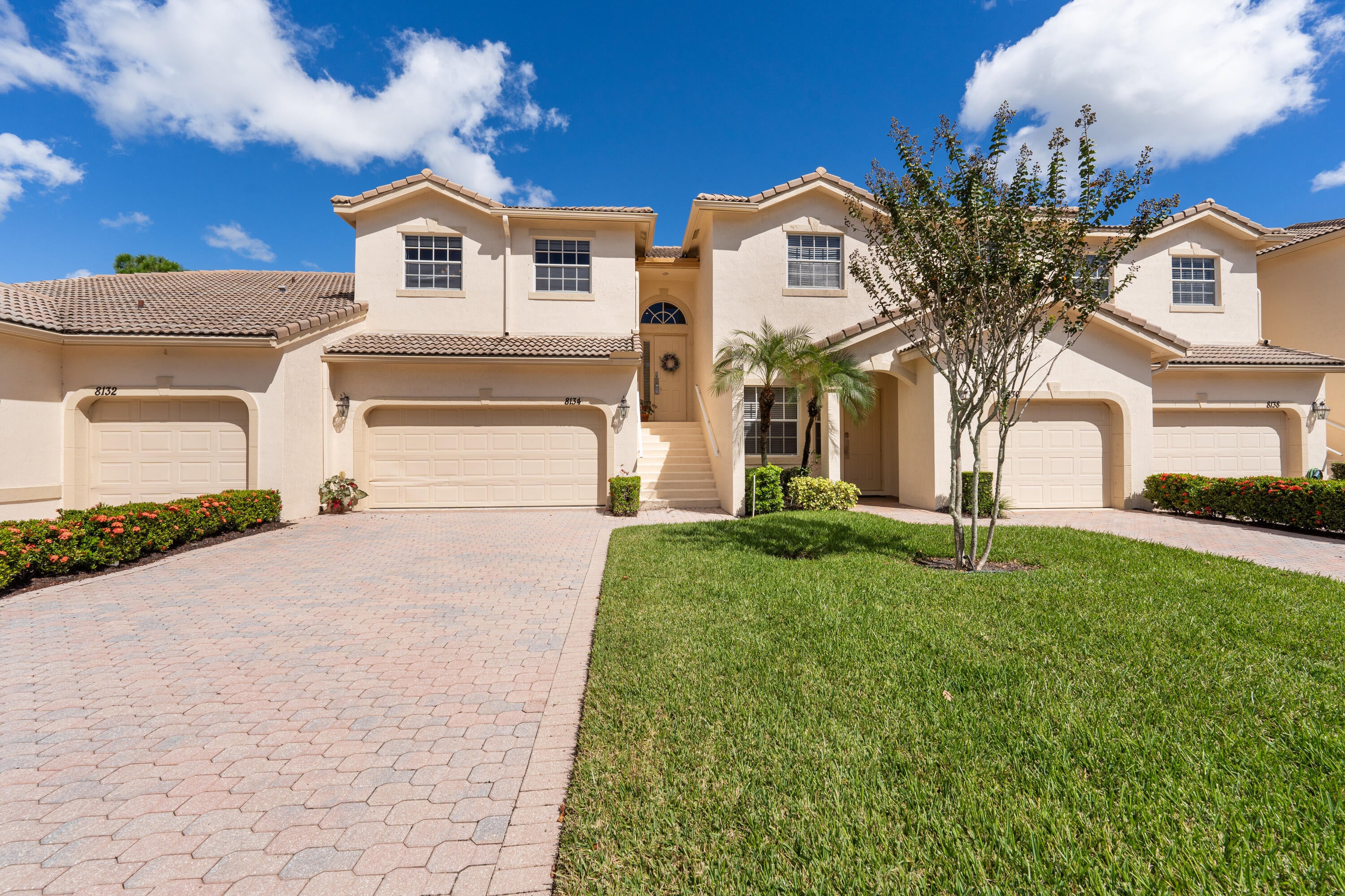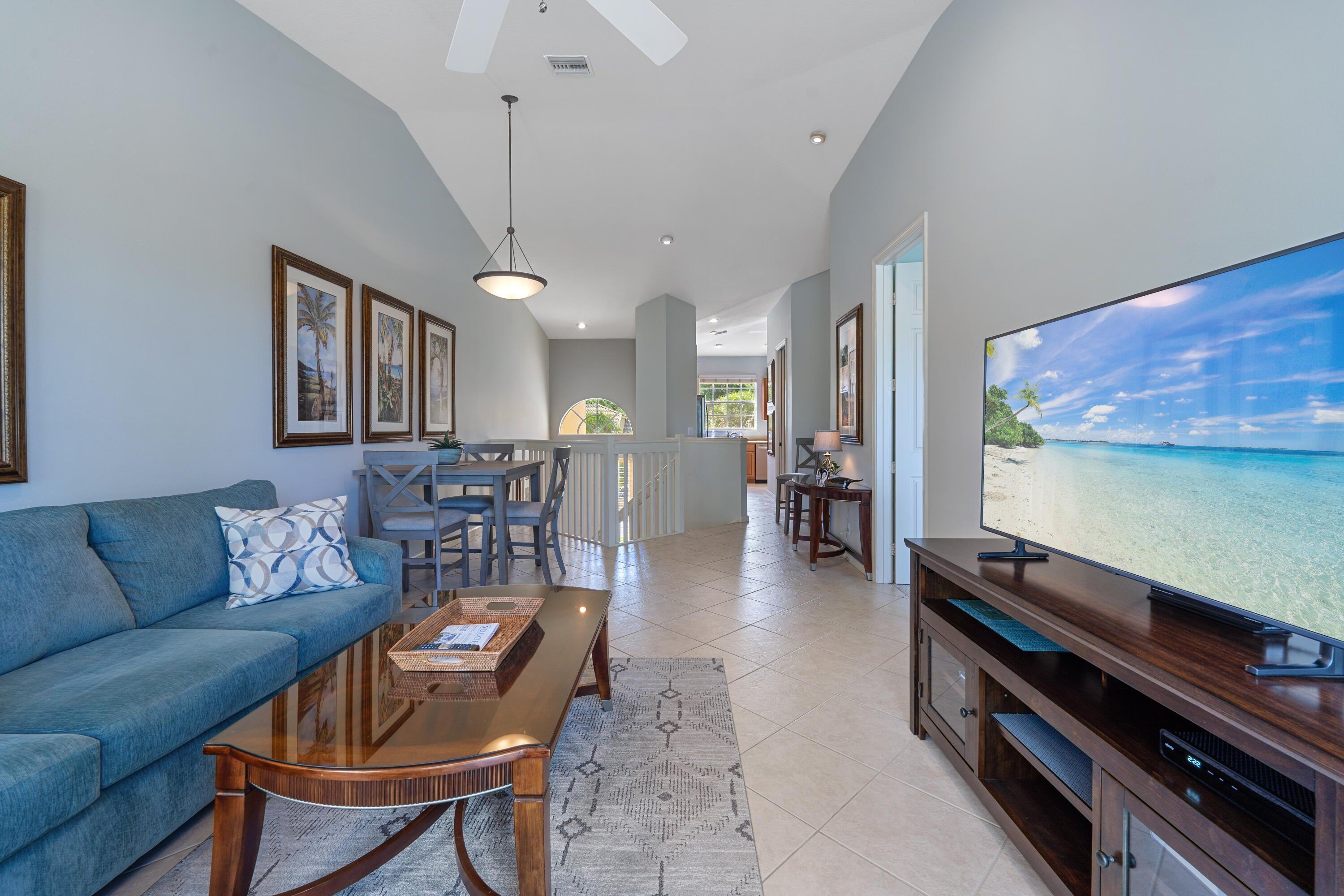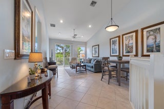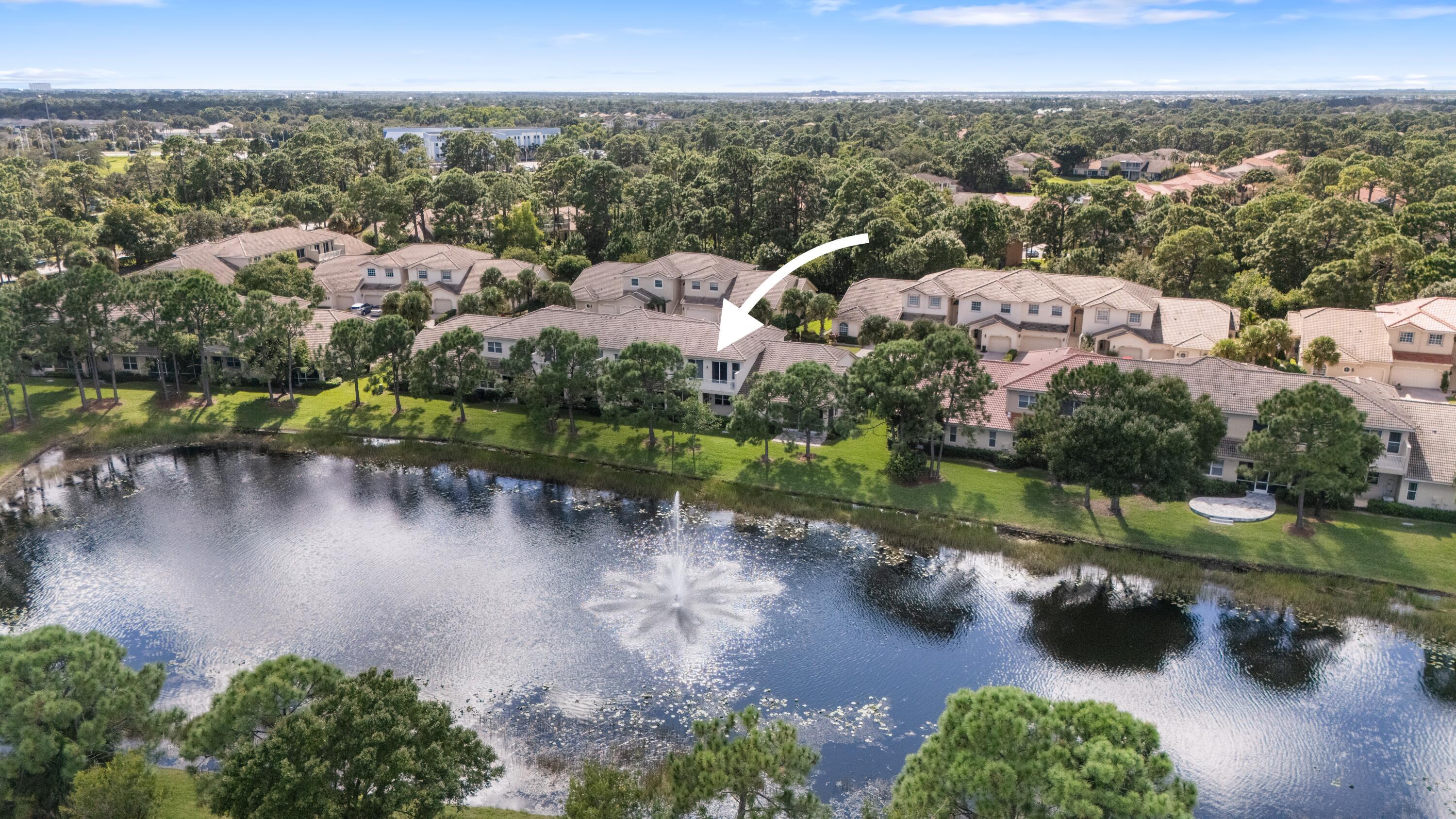 This well-maintained, split-level home features a double car garage, high ceilings, stainless appliances, fresh interior and exterior paint, new tile flooring on lower level, walk in closet, separate shower and soaking tub, lake views from all bedrooms and the family room. This floorplan includes an oversized 5x28 balcony and a 12x13 screened porch for your outdoor enjoyment. Castle Pines has a resort style pool and spa within walking distance, or residents may choose to enjoy the PGA Village Island Club, a large-scale recreation and activity center, complete with fitness center, tennis, pickleball, heated pool, and multi-purpose rooms. Location is terrific, just two minutes from I-95 and conveniently close to shopping, restaurants, parks, and activities such as the NY Mets springtraining facility. This unit is completely turn-key including all furniture, televisions, cooking appliances, dishes, utensils, maintenance and cleaning supplies. The sellers are non-smokers without pets who only used the townhome 6 months out of the year. This one is worth seeing. Measurements should be verified by Buyer or Buyer's Agent.