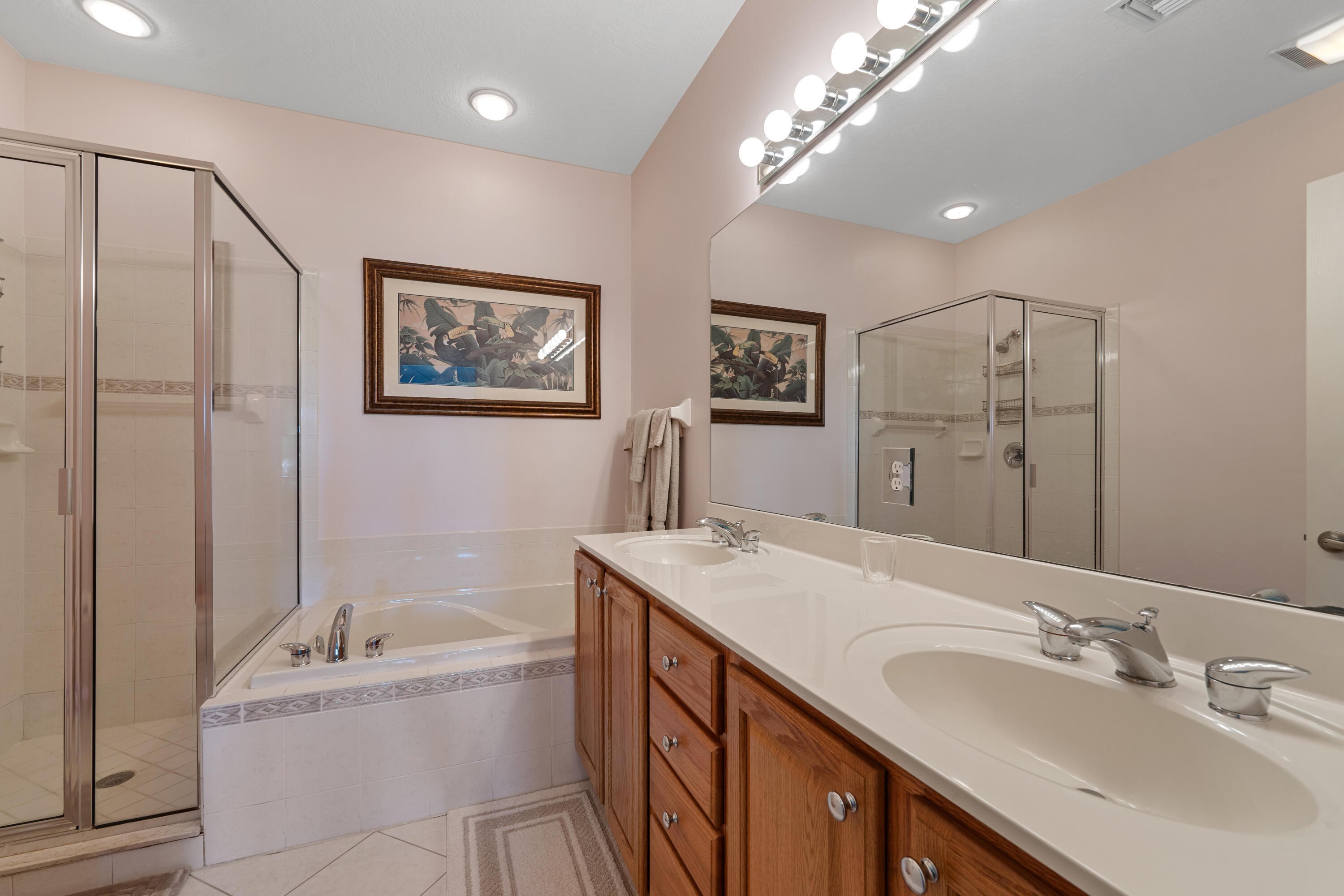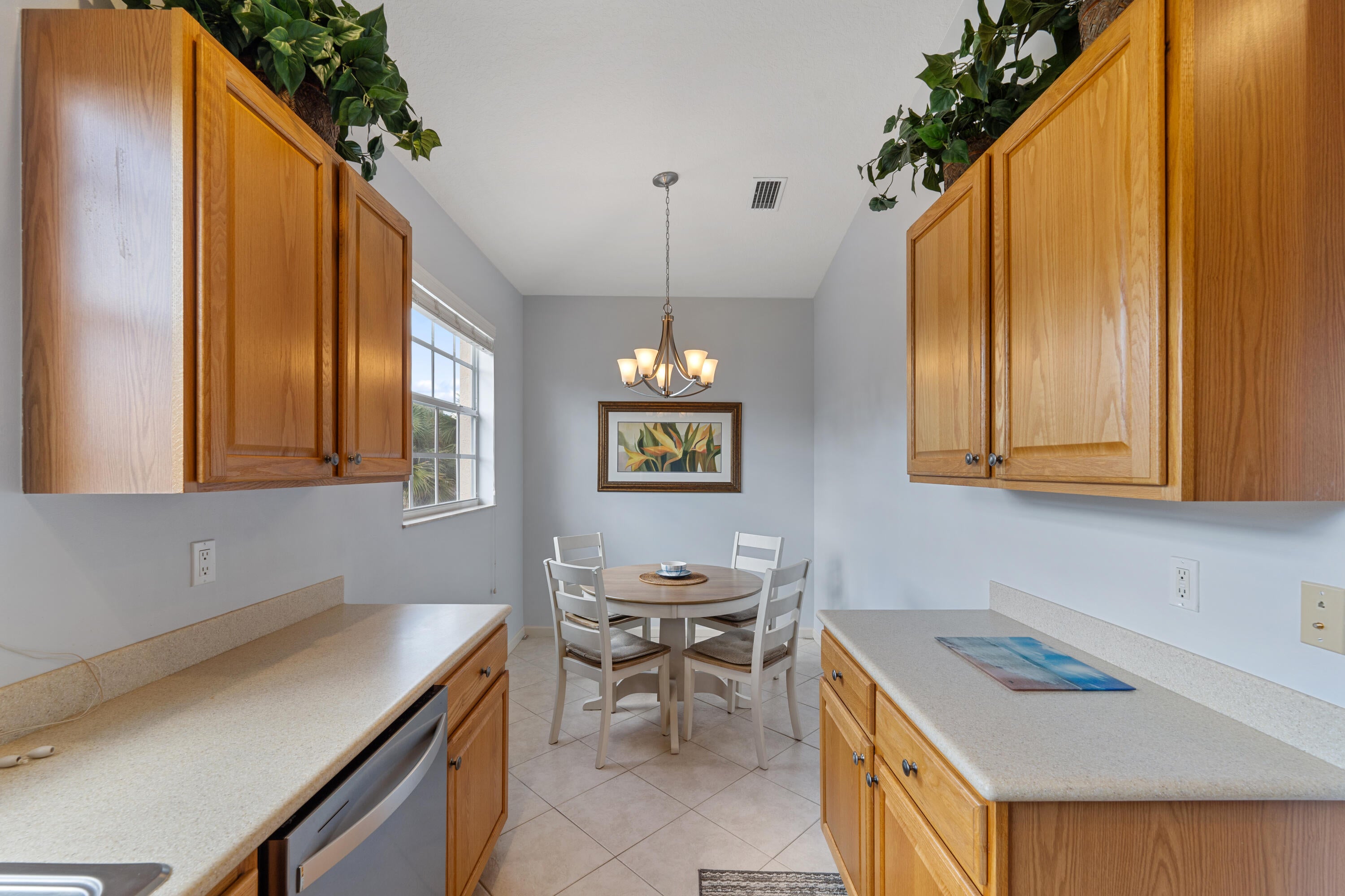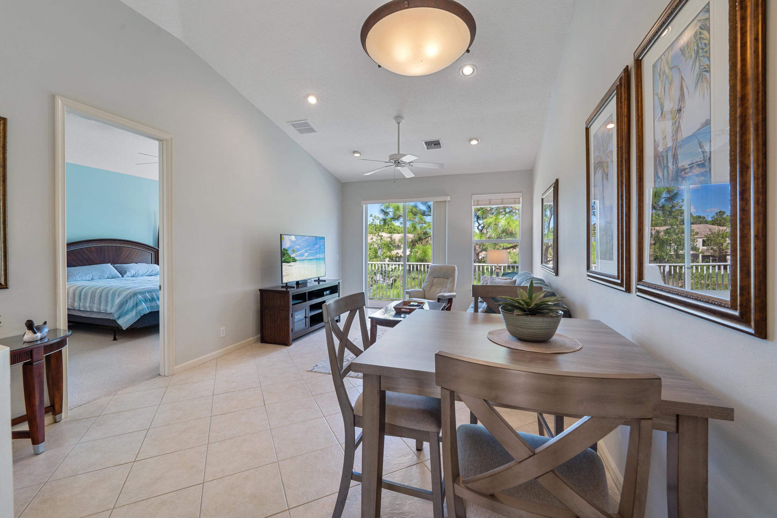 This well-maintained, split-level home features a double car garage, high ceilings, stainless appliances, fresh interior and exterior paint, new tile flooring on lower level, walk in closet, separate shower and soaking tub, lake views from all bedrooms and the family room. This floorplan includes an oversized 5x28 balcony and a 12x13 screened porch for your outdoor enjoyment. Castle Pines has a resort style pool and spa within walking distance, or residents may choose to enjoy the PGA Village Island Club, a large-scale recreation and activity center, complete with fitness center, tennis, pickleball, heated pool, and multi-purpose rooms. Location is terrific, just two minutes from I-95 and conveniently close to shopping, restaurants, parks, and activities such as the NY Mets springtraining facility. This unit is completely turn-key including all furniture, televisions, cooking appliances, dishes, utensils, maintenance and cleaning supplies. The sellers are non-smokers without pets who only used the townhome 6 months out of the year. This one is worth seeing. Measurements should be verified by Buyer or Buyer's Agent.