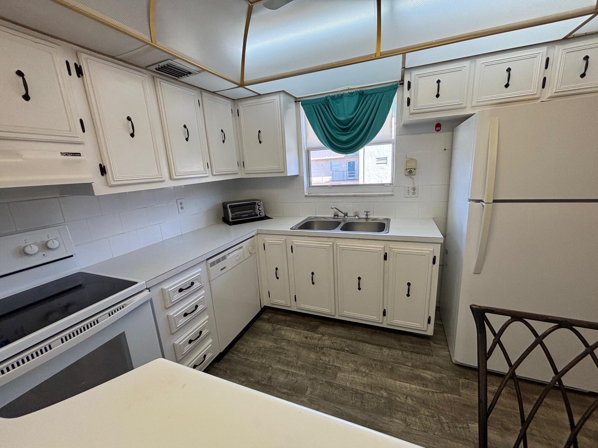 LOWEST PRICED BAHAMA MODEL IN LAKESIDE VILLAGE. 900 Sq. Ft. with water and fountain views from all rooms. Seller motivated. Seller will pay special assessment at closing. New roof. Spacious and bright rooms, walk-in closet, and more closets in hallway. Lakeside Village has a large main pool plus a smaller heated pool, and plenty activities through the year. Great place to enjoy life in a very friendly community.
