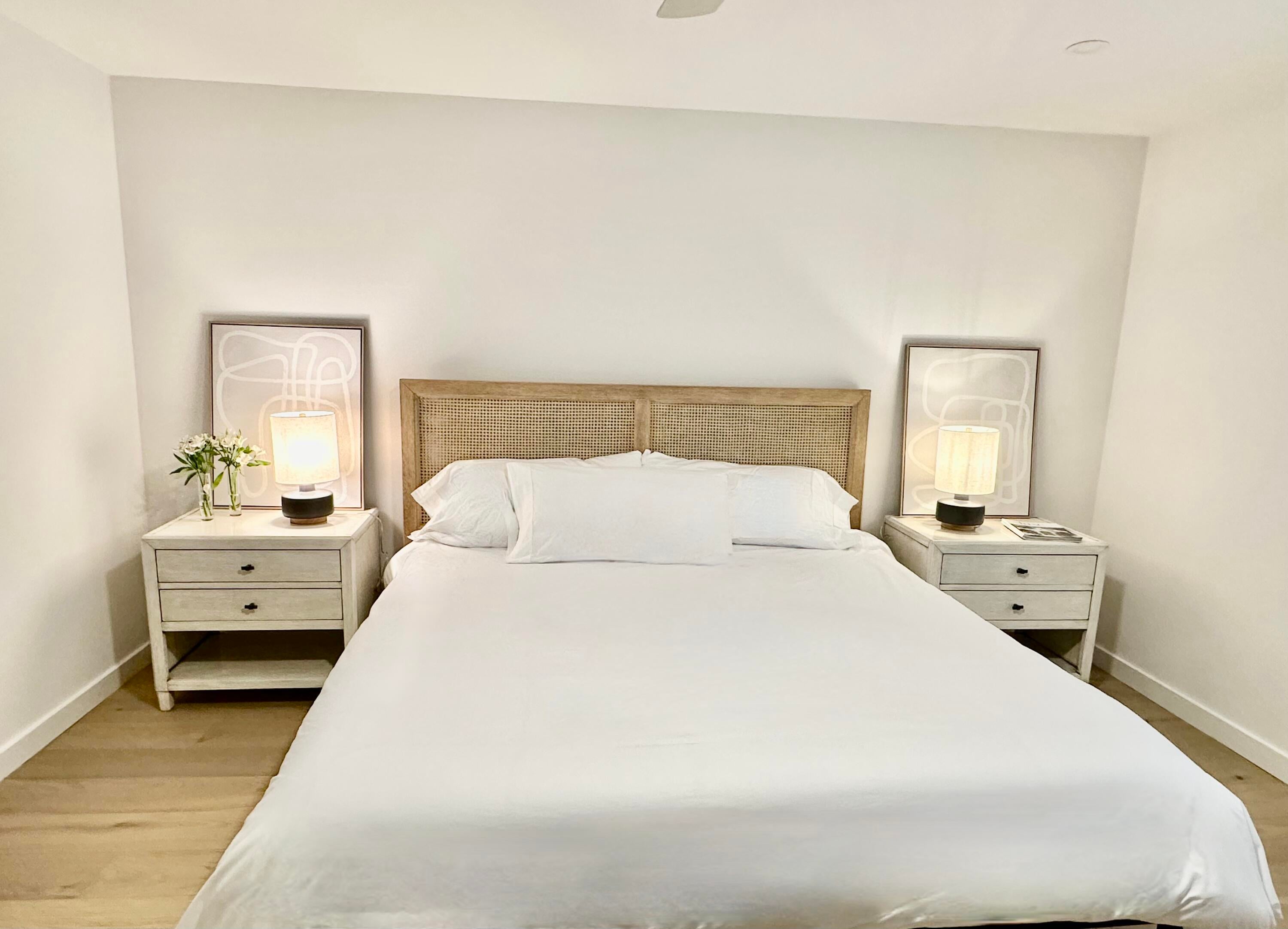 COMPLETELY RENOVATED AND FURNISHED 2BR/2.5BA townhome with white oak floors, large kitchen with pantry space galore, built-in bar with wine fridge and island seating with view of 9th Tee box on Fazio course at PGA National. All new appliances, high end furniture, art, drapes and shades. Exceptional Primary bath offers double sinks, lighted mirrors, enlarged shower with bench and handheld shower, large walk-in closet with built-ins and a king bed. Guest BR has 2 full-size beds with double walk-in closets, & shower/tub combo. Fine linens, towels, and total turnkey upfit make this a luxury getaway. YOU MAY HAVE USE OF THE PGA NATIONAL CLUB AND RESORT FACILITIES!