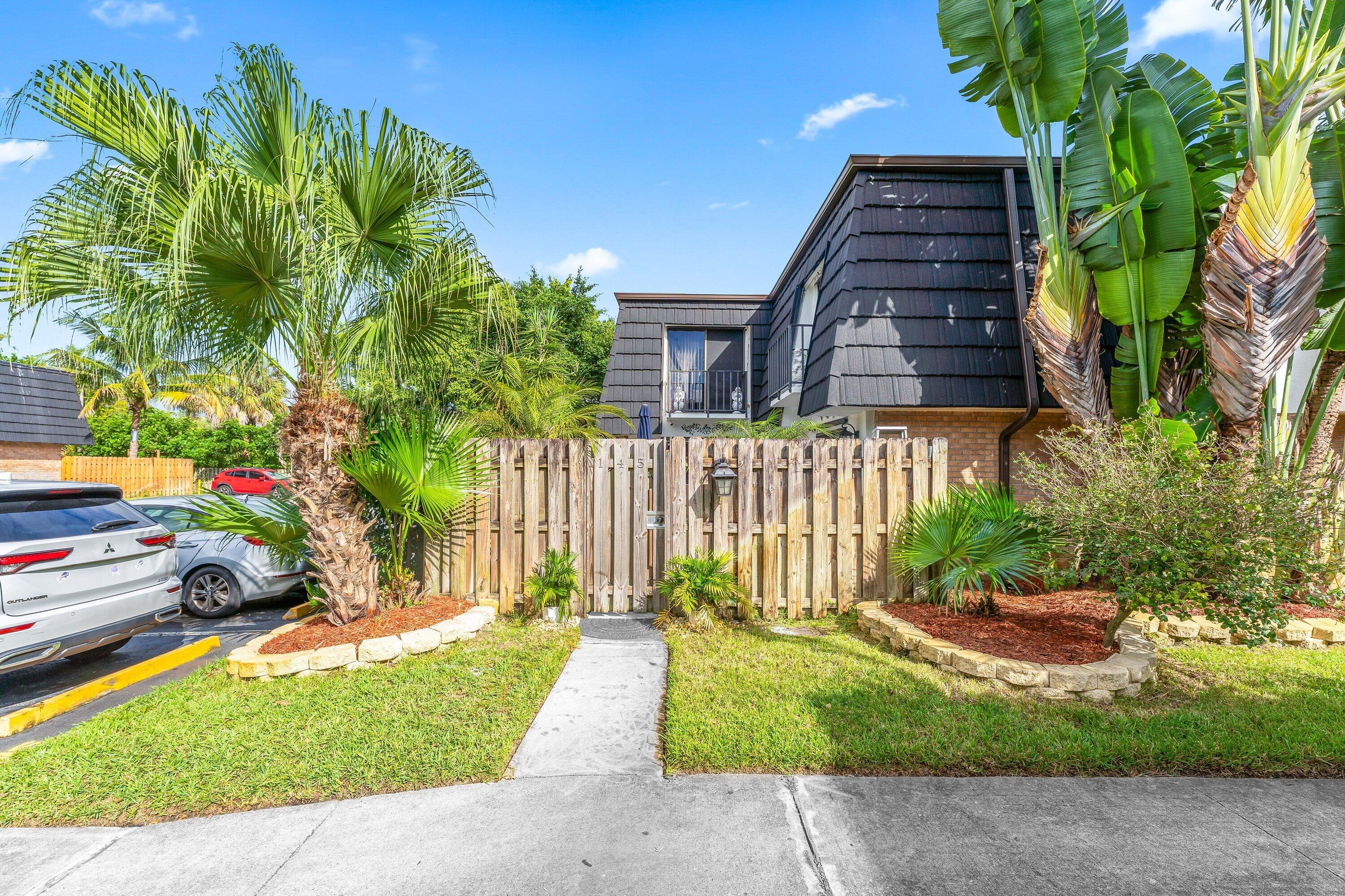 Welcome to this beautifully maintained and spacious 3BR/2.5BA townhome!Enjoy peace of mind with a new Aluminum roof, new AC, newer appliances, and a cozy gas fireplace. The inviting kitchen features stainless steel appliances and warm finishes that make cooking a delight.Upstairs, you'll find a primary suite and guest bedroom--each with its own private balcony--perfect for morning coffee or evening relaxation. All bathrooms include double sinks, with a convenient first-floor half bath and laundry room for added ease.Truly move-in ready, this home also offers a private patio and courtyard ideal for entertaining or quiet evenings outdoors. Ideally situated for both comfort and convenience, Perfectly positioned near schools, Palm Beach State College, the airport, and local hospital.