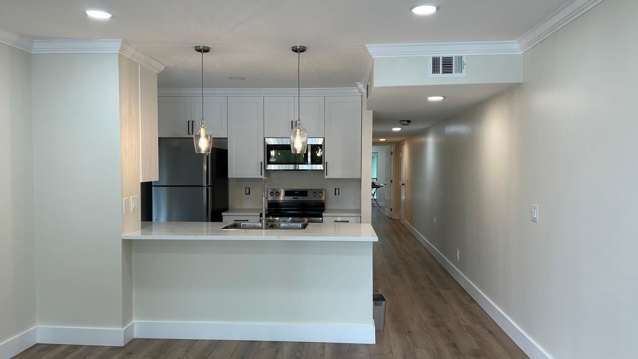 Serene water view in the gated community of Cypress Point in PGA National. This is a very desirable TWO bedroom unit! Just remodeled. New kitchen cabinets with stainless steel appliances. New water heater, bathroom cabinets, laminate flooring, and paint. Lake view covered balcony to enjoy the breeze and watch the nature and water views. Community has a nice pool, a walking path going through PGA National, and a park near by. Centrally located in Palm Beach Gardens, close to the Turnpike and I95. Water included.