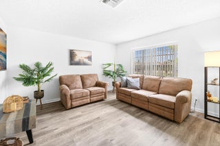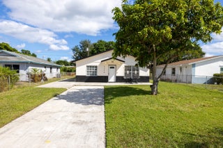 Spacious 3 bedroom plus oversized DEN, 2 bathroom, CBS home on a private 0.17 acre lot, NO HOA! There is brand new LVP flooring in the living room and kitchen (2025), and tile flooring in bedrooms and den. The kitchen was renovated and it is equipped with granite counter tops, low profile microwave, gas stove and shaker cabinets. Notable features include new fire rated impact front and side doors (2025), painted exterior (2024), newer electrical panel (2022), no popcorn, newer toilets and vanities, and tankless water heater (2023). Washer and dryer are inside. Head out to enjoy a fenced-in backyard with plenty of room for a pool. The home is equipped with an alarm and security cameras. The garage was converted into living space. The home is just a short ride away from gorgeous SingerIsland beach, shopping plazas, Palm Beach Gardens downtown and midtown, and fun downtown West Palm Beach. It is approximately 15 minutes from PBI airport. All measurements are approximate. Take a look at the 3D virtual walk through.