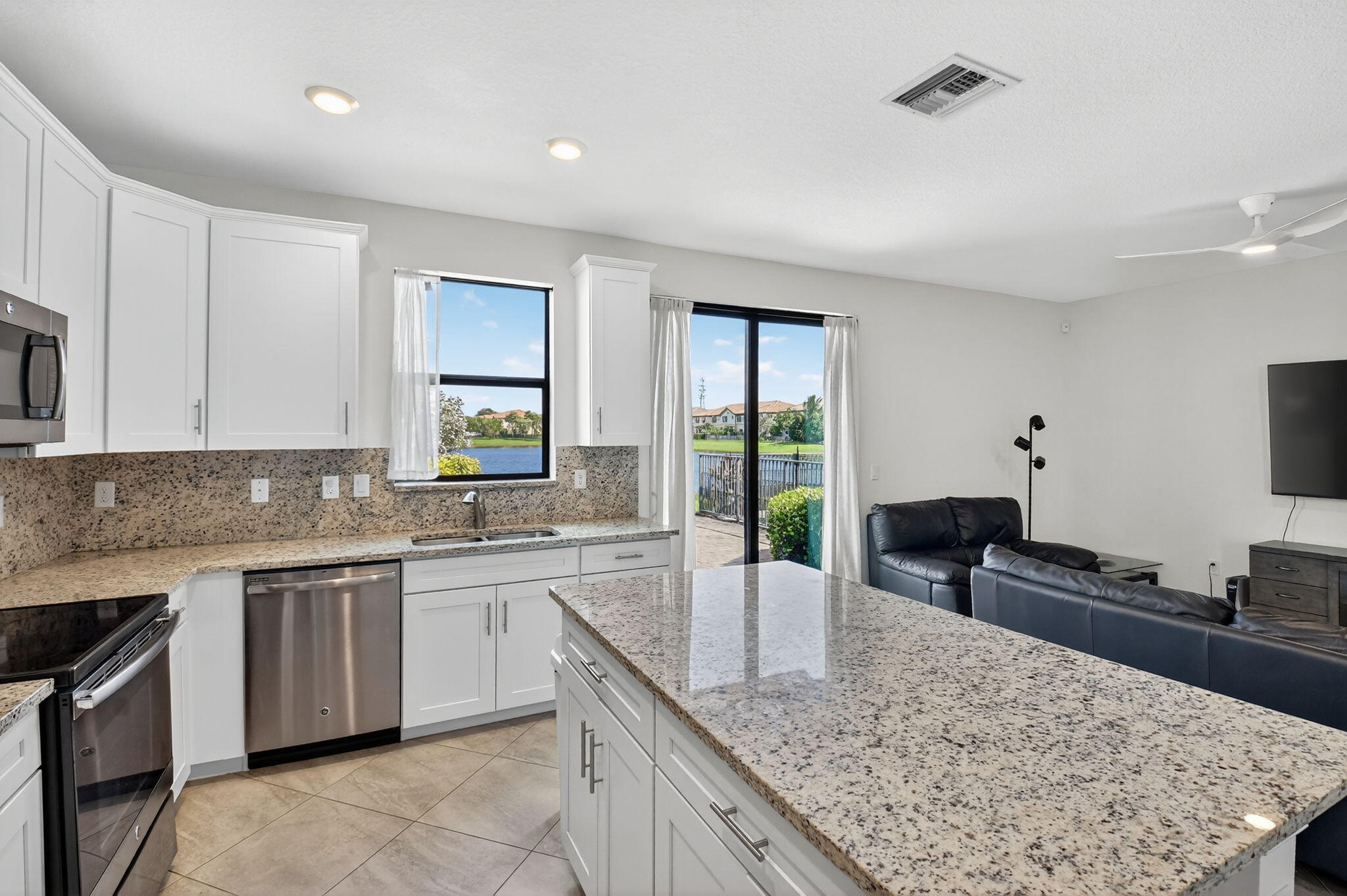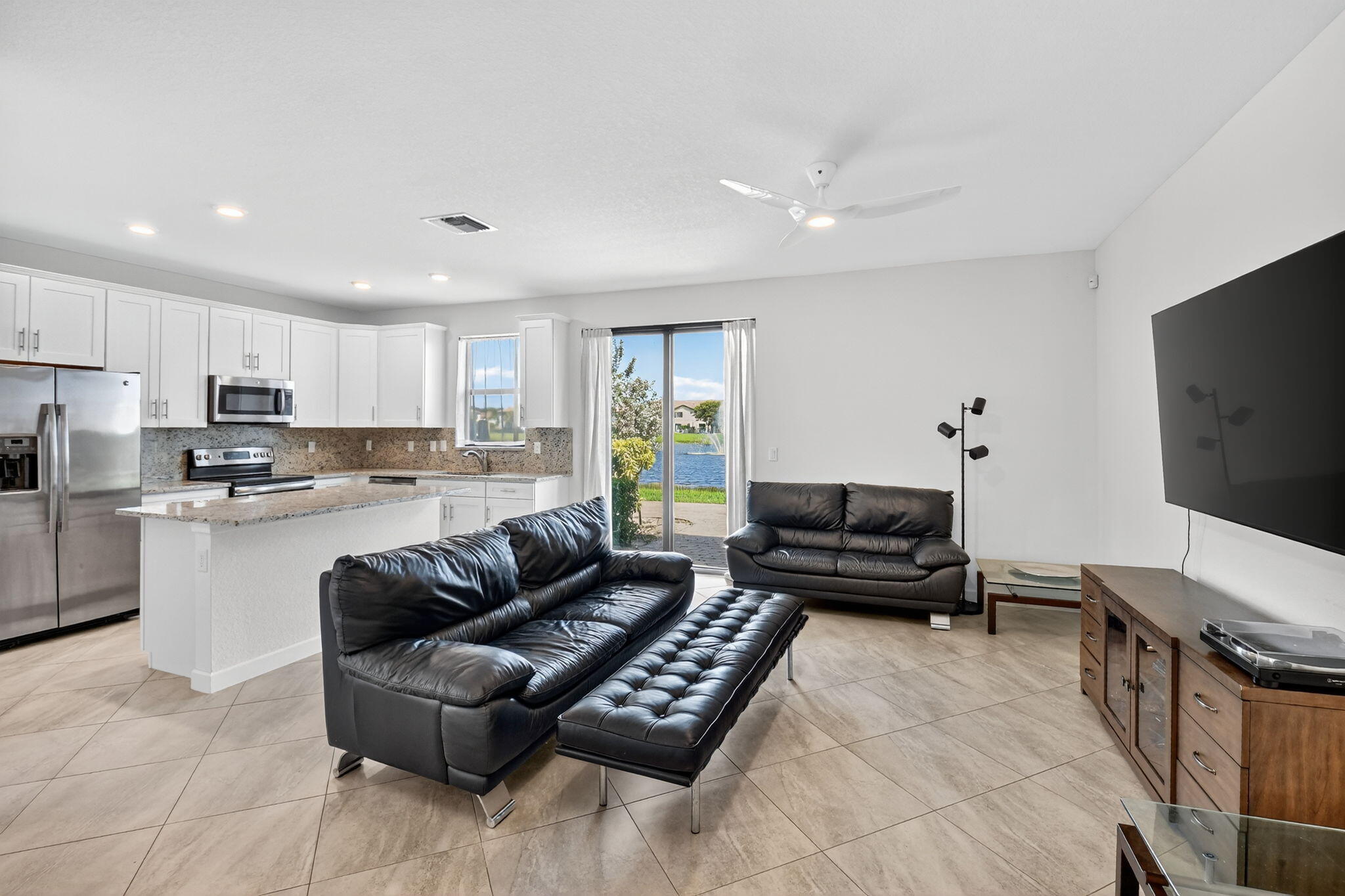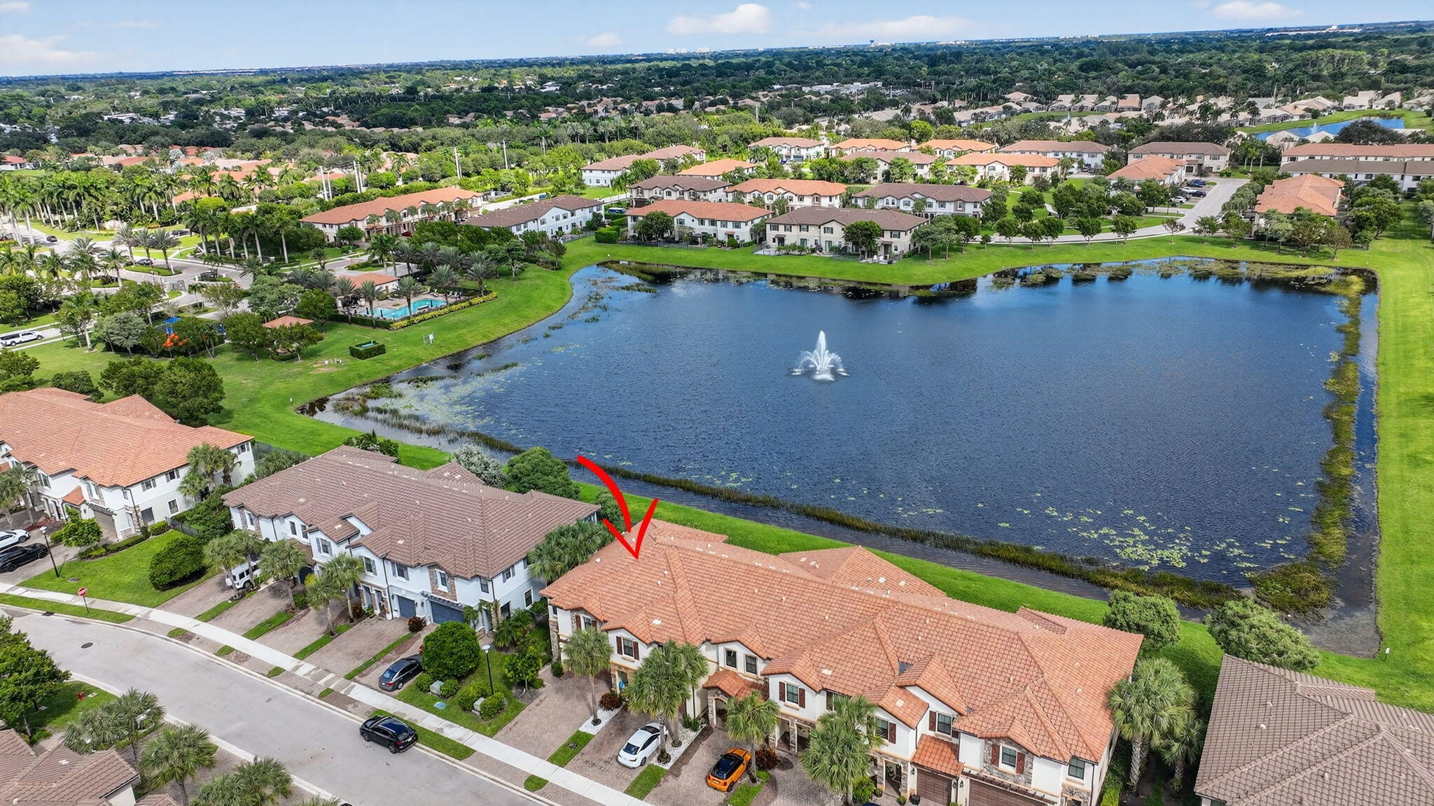 Enjoy stunning lake views in the gated community of Cambria Parc.Located on the Delray Beach/Boynton Beach border, this spacious corner townhome--built in 2017 features 4 bedrooms, 3.5 bathrooms, and a 2-car garage.Inside, you'll find impact windows, soaring ceilings, recessed LED lighting, upgraded ceiling fans, and an open-concept kitchen with quartz countertops and ample cabinetry. Upstairs, all four bedrooms feature plantation shutters. The primary suite offers a walk-in closet, dual vanities, a large shower, and a separate soaking tub.Step outside to a beautifully extended paver patio overlooking beautiful lake views--perfect for relaxing or entertaining.Cambria Parc offers a swimming pool, lakeside gazebo, playground, walking paths and more.