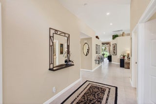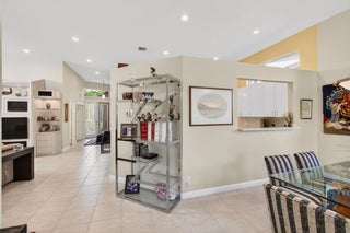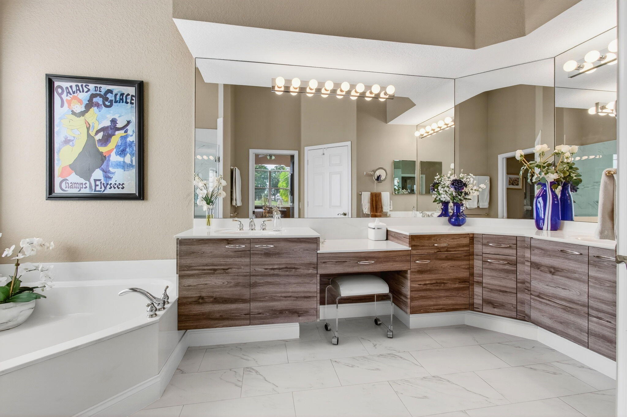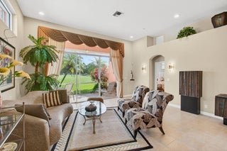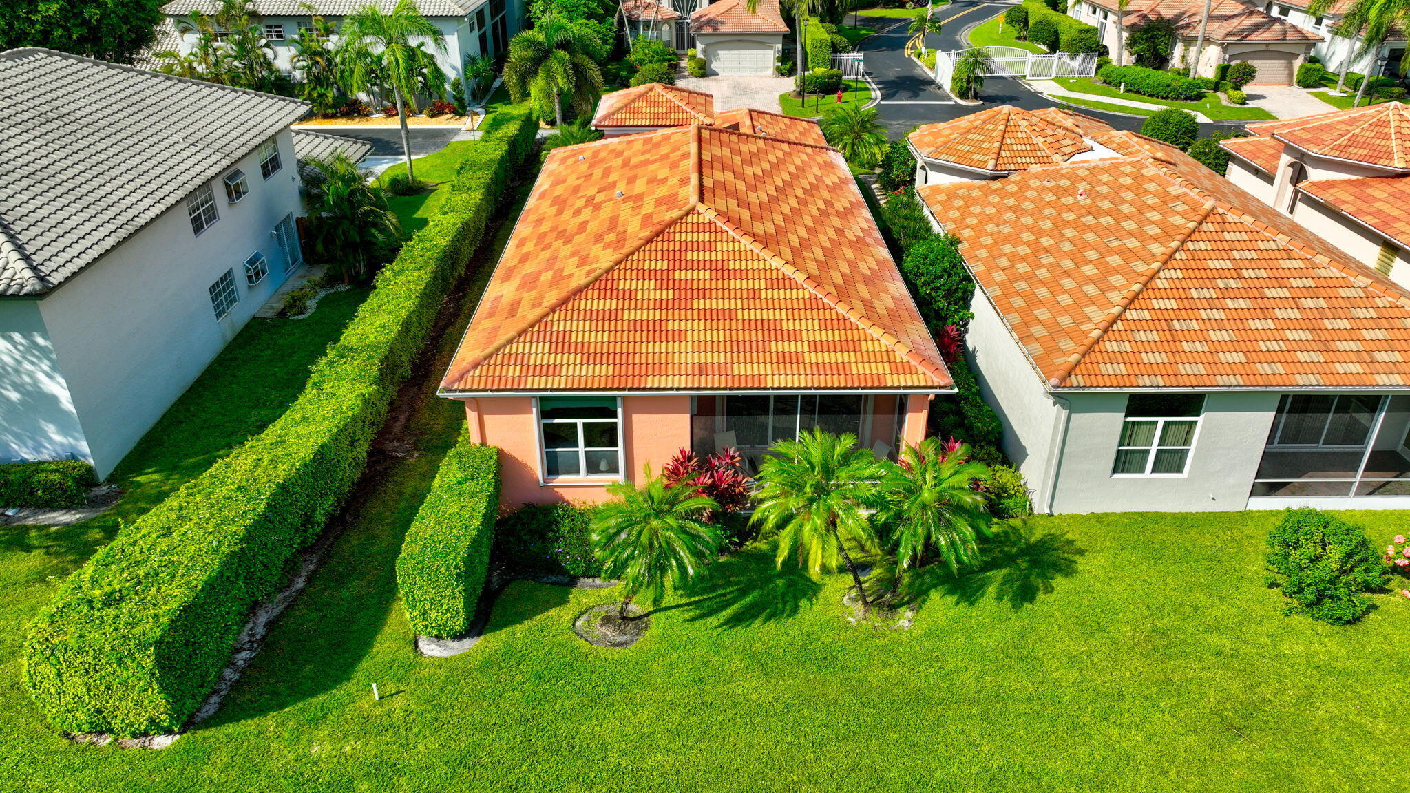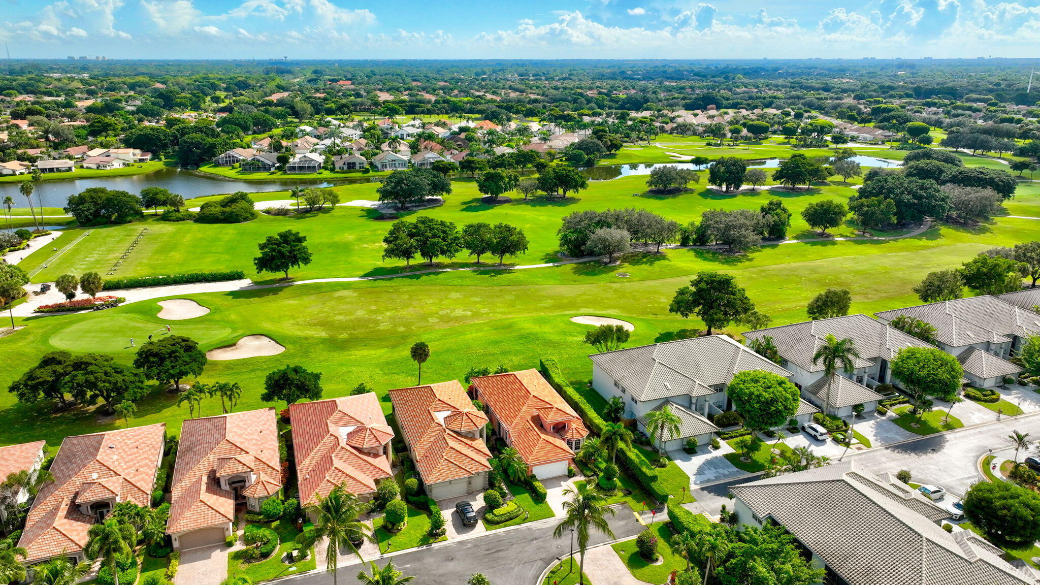 This exquisite home is one of 11 homes at Village at the Green in Indian Spring Country Club community. A model home ight on the 18th hole of the golf course. Three bedrooms 3 full baths and a split bedroom floor plan. Tiled thru out the living areas. Updated eat in kitchen with sliders to side patio, Living-dining room combo, Master bedroom suite is complete with walk in closet and updated contemporary master bath with dual vanities and separate tub and shower. Volume ceilings, accordion hurricane shutters, Generator with buried 500 gal propane tank. Sliders from liv rm to Screened and covered patio