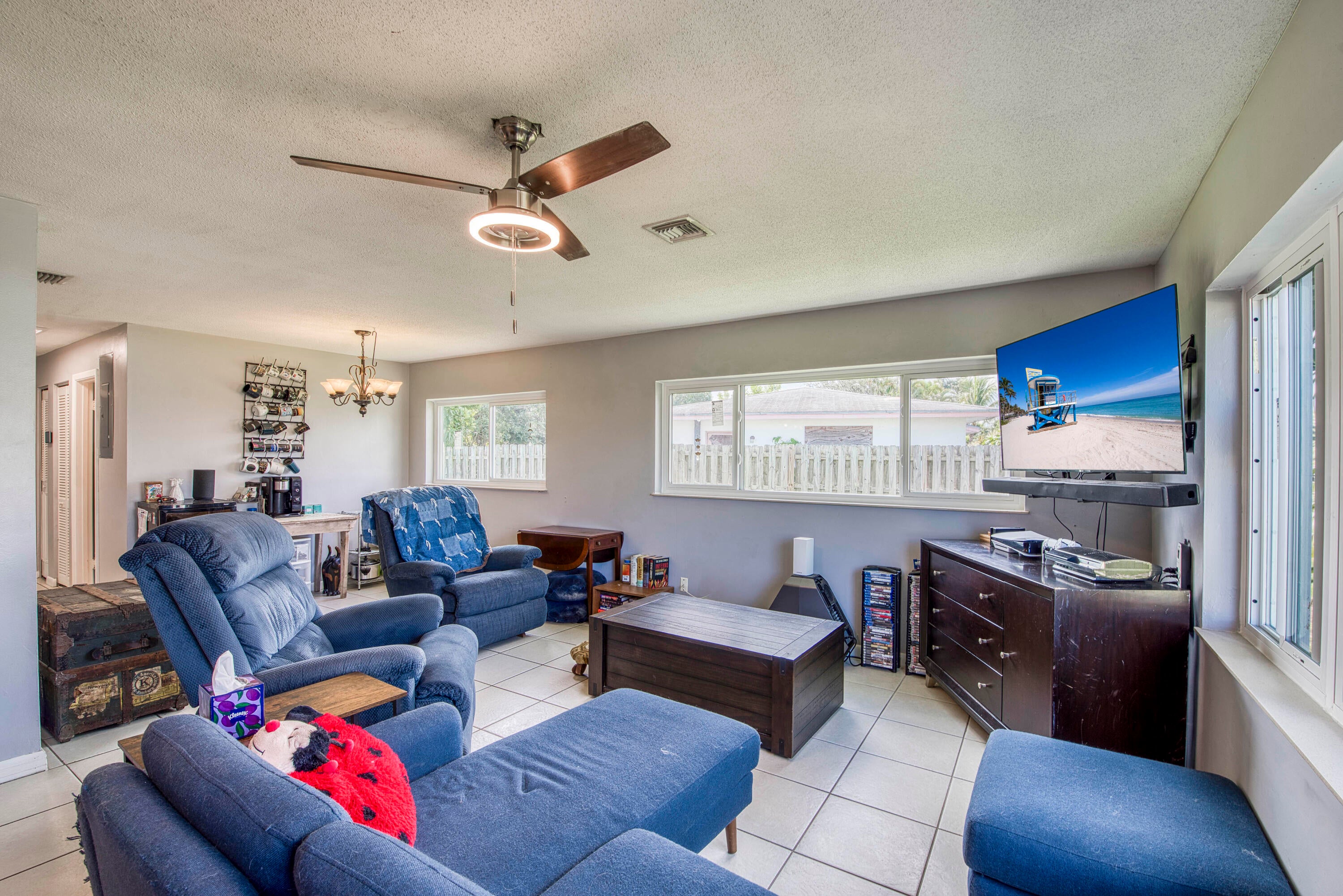 Discover this charming 3-bed, 2-bath home in a prime Palm Beach Gardens location! Enjoy peace of mind with a newer metal roof, newer A/C, impact windows, and paid-off solar panels for energy efficiency. The open-concept living and dining areas flow into a flexible den, perfect for work or play. Step outside to your private, fully fenced backyard with fruit trees, a chicken coop, and a paver patio. All this with NO HOA fees in a nice, sought-after neighborhood!