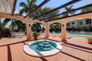 The OUTDOOR space is unbeatable! Not one, but TWO patio doors that open to a large paver patio and green space on the other. Located walking distance to Town Center mall, Whole Foods, Verde School, this 2 bed, 2 bath and 1 car garage unit is very desirable and has a private feel. You will NOT feel the typical restrictions you might at a regular condo. Here, you can bring you gas grill and sit on your patio in peace and privacy in the lush landscape. Each unit features garage parking and one assigned spot. 100 yards to the gorgeous pool where the fun continues along with a hot tub and community grill great for gathering with friends. This unit is one of the best-priced units on the market in central Boca, but surely has the best features and amenities for the price! Small pets OK!