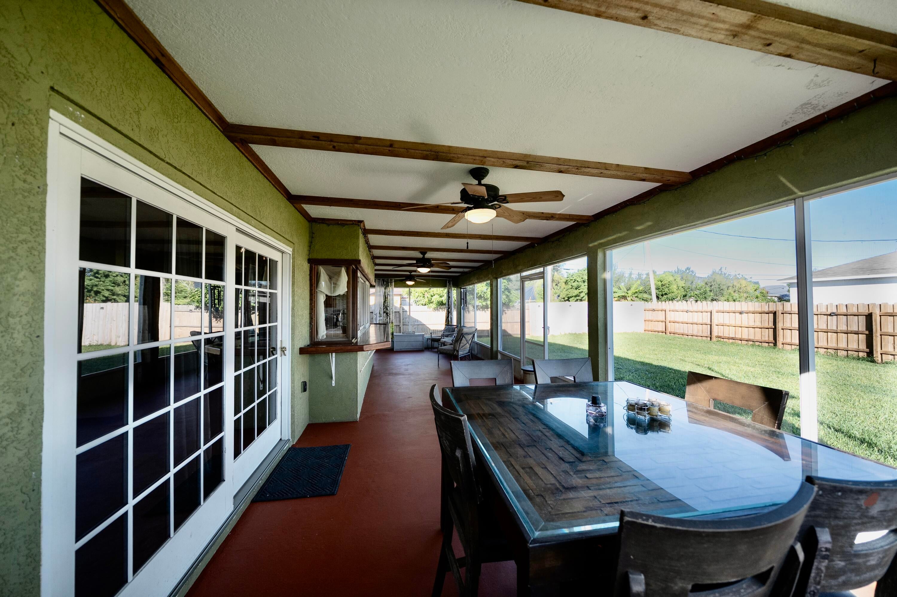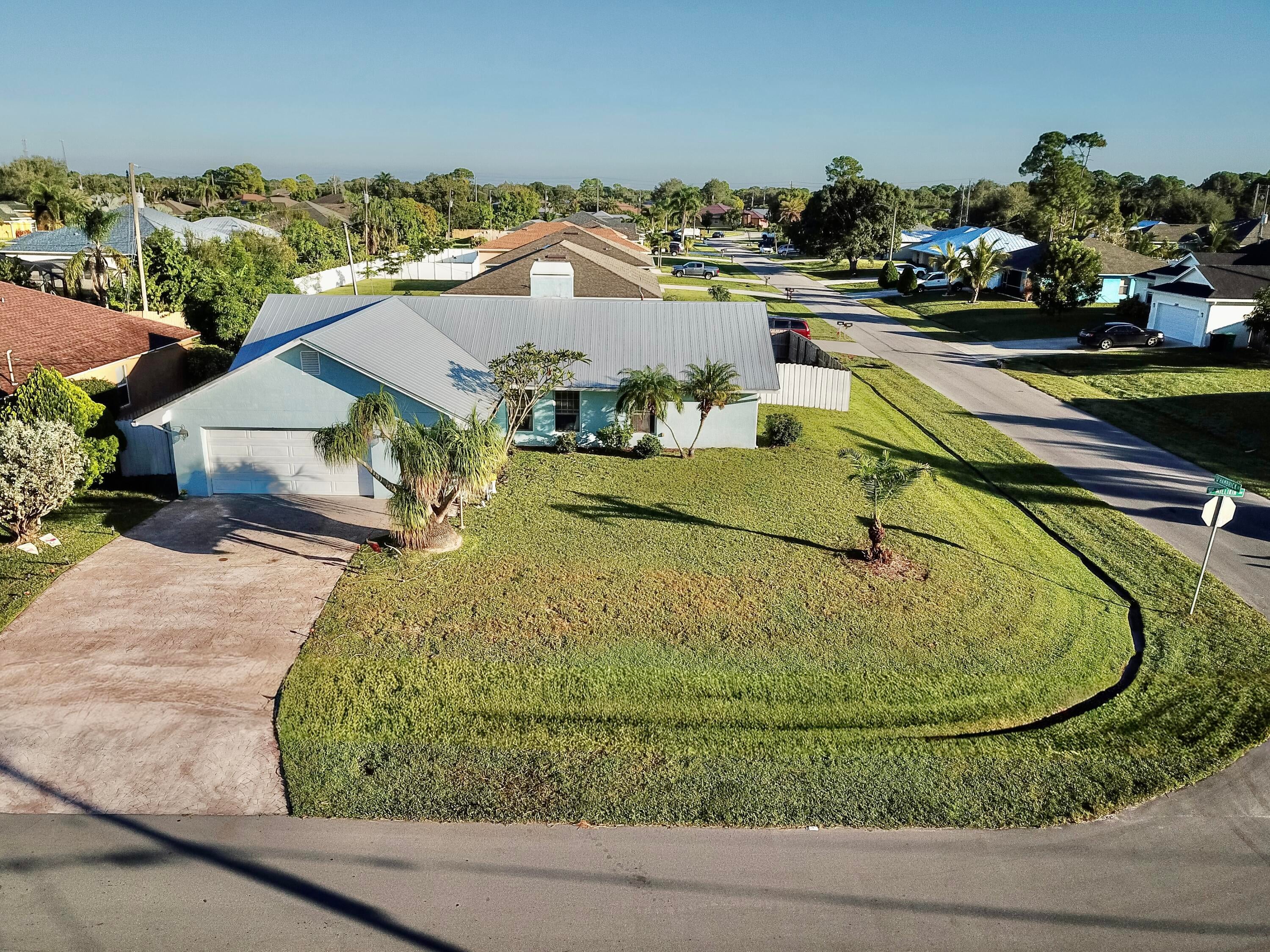 Charming 3 Bedroom, 2 Bath Home on a Corner Lot - No HOA! Welcome home to this beautifully maintained 3-bedroom, 2-bath, 2-car garage residence located on a quiet street in Port St. Lucie. Featuring a metal roof (2017), newer A/C, and a recently installed fence, this home is move-in ready and offers lasting peace of mind. Inside, you'll love the inviting living area with a cozy fireplace, perfect for relaxing evenings. The spacious kitchen includes a convenient pass-through to the enclosed porch, ideal for entertaining or enjoying a quiet morning coffee. The 1/4-acre corner lot provides plenty of outdoor space for gardening, pets, or family gatherings. With no HOA, you'll have the freedom to park your boat or RV and make the property your own. Conveniently located near shopping, dining