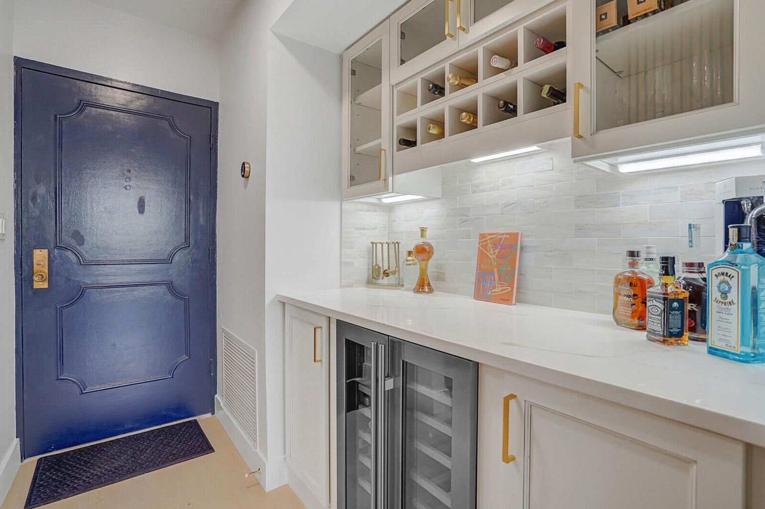 Welcome to this stunning and spacious 2-bedroom, 2-bathroom south-facing residence, bathed in natural light throughout the day and exquisitely renovated for modern coastal living. The open-concept layout features elevated 42'' quartz countertops, stainless steel appliances, and smart, energy-efficient lighting throughout. Custom wood veneer paneling and a bespoke bar with wine fridge add warmth and sophistication. Both bedrooms offer custom closets, with the second bedroom accessed through charming French doors. Spa-like bathrooms include both wall-mounted and overhead rain shower options, while motorized shades are programmed for optimal light and privacy throughout the day. Step out onto your private balcony and take in breathtaking views of the Intracoastal Waterway, Lake Boca,community pool, picnic areas, and the lush Rutherford Nature Preserve. The unit includes a private beach locker, dedicated indoor air-conditioned bike space, and conveniently located laundry just down the hall. Boca Towers is a resort-style community offering an impressive array of amenities, including a fitness center, a heated outdoor pool, sauna, shuffleboard, game room, library, arts and crafts room, and an elegant lounge with kitchen available for private gatherings. Residents enjoy waterfront grills and entertainment spaces, deeded beach access, and a community dock with boat slips, plus exclusive kayak, canoe, and paddleboard storage. Recent building restoration has been completed. Located in one of Boca Raton's most coveted areas, the building is just moments from Red Reef Golf Course, Gumbo Limbo Nature Preserve, Ocean Strand Park, and top-tier shopping and dining in downtown Boca. Enjoy easy access to Fort Lauderdale, Miami, and Palm Beach International airports. This all-ages community is pet-friendly (up to 15 lbs). Boca Towers offers the ultimate in waterfront living with unparalleled views, luxury amenities, and an unbeatable locationyour perfect piece of paradise!