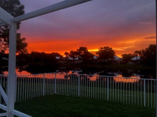 Private lakefront beauty on tree lined streets with sidewalks in Garden Oaks (24/7 manned gated community) A rare find--this pet-friendly home radiates charm, comfort, and tranquility. You'll love the open kitchen with granite countertops, stainless steel appliances, and solid wood cabinetry. Spacious layout with huge living room, den, and two separate bedroom suites in desirable split plan. Relax on the expansive screened patio with large covered section. Private fenced yard--perfectly positioned for peaceful lake views and awesome sunset views. Separate Laundry room with wet sink, Central vacuum, ADT, large 2-car garage. Rate includes FPL of $125* Monthly*FPL allowance (10,000 kWh/year). Minutes to shopping, dining, beaches, golf, I-95 and Turnpike.
