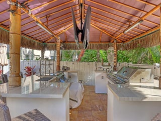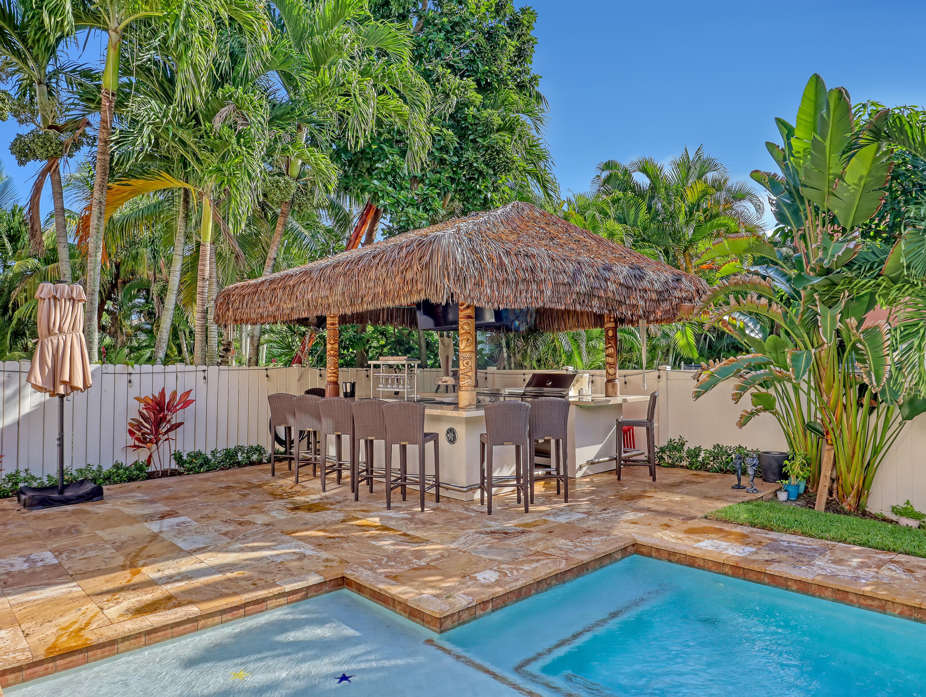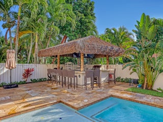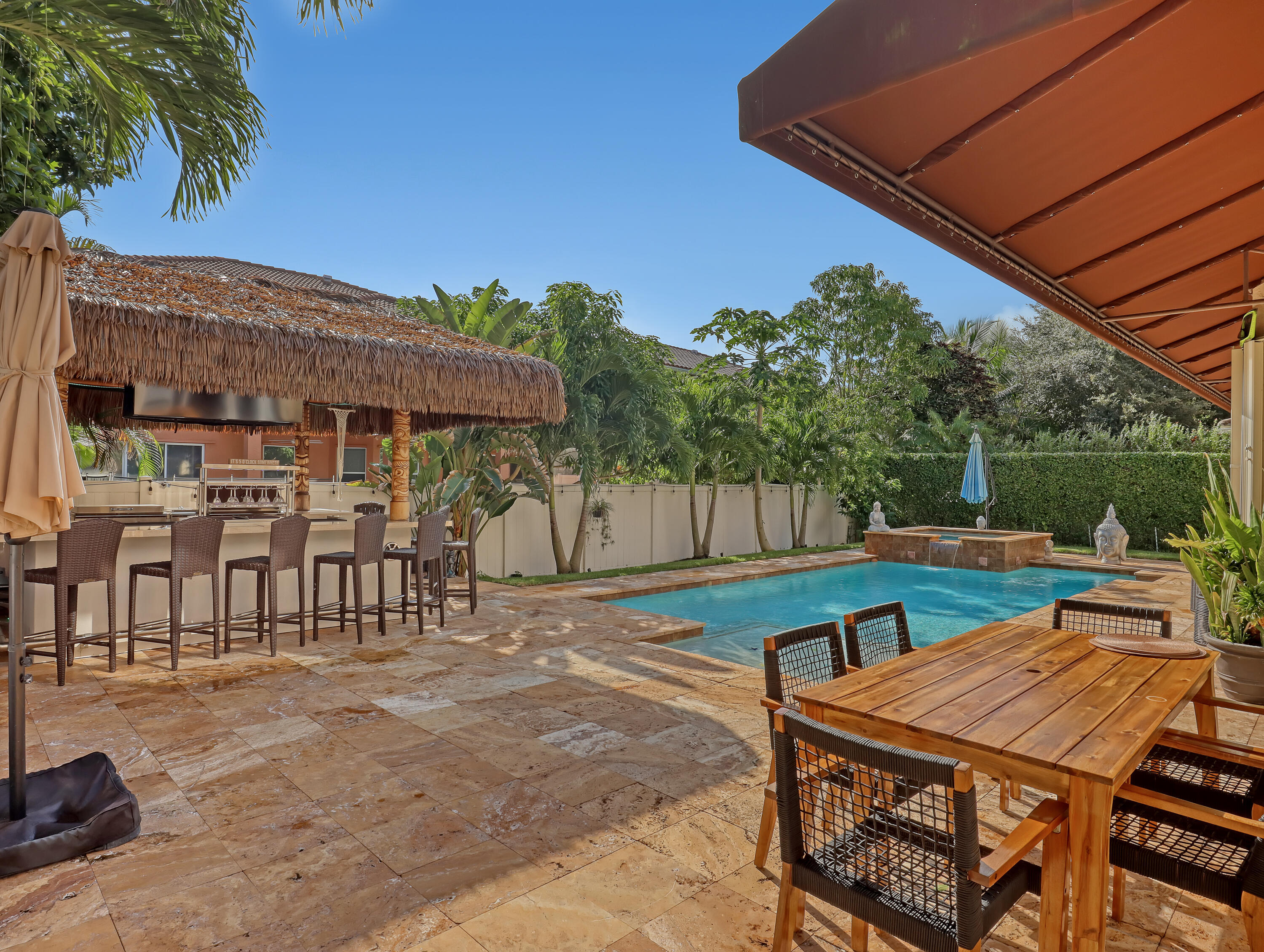 Welcome to the highly desirable community of Madison Green! Located in the exclusive Walden Village, this stunning pool home showcases exceptional upgrades and elegant finishes throughout. The spacious Monticello floor plan offers 5 bedrooms and 3 bathrooms, providing the perfect blend of comfort and style. Step inside and immediately feel the refined elegance you've been searching for. The brand-new custom kitchen is a showstopper, featuring Bosch appliances, quartz countertops, under-cabinet lighting, and a second wall oven--perfect for hosting and entertaining.The backyard oasis is designed for true South Florida living. Lush palms and tropical landscaping create natural privacy around the saltwater pool, which features a sundeck, heater, and raised spa, all controlled by an AquaLink automation system. For the ultimate entertaining experience, enjoy the 16x16 Abaco outdoor tiki kitchen by Paradise Grillsa luxury setup ideal for gatherings and cookouts.