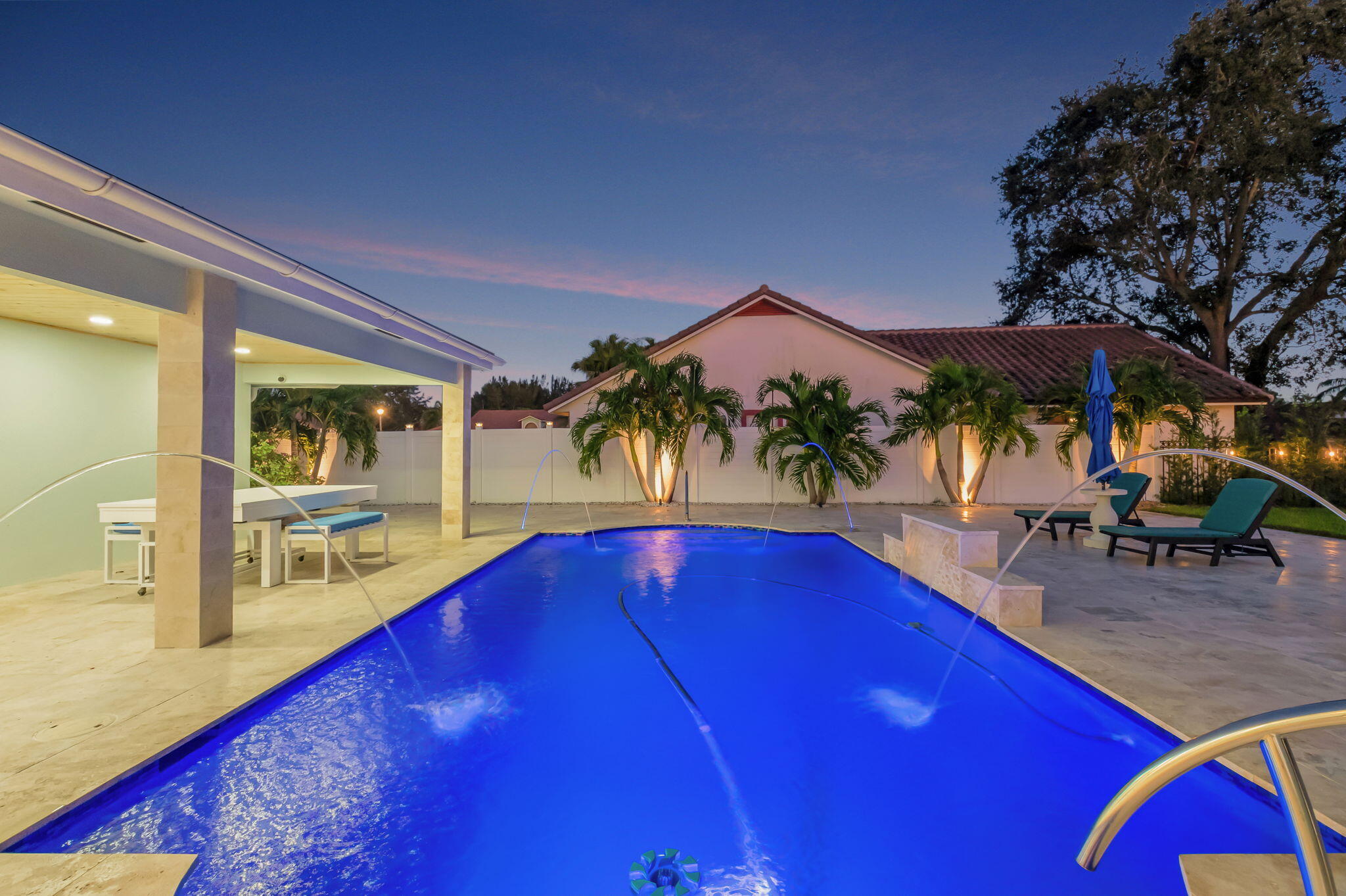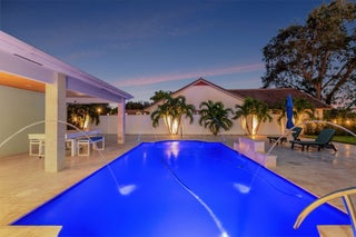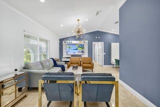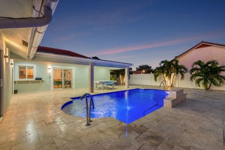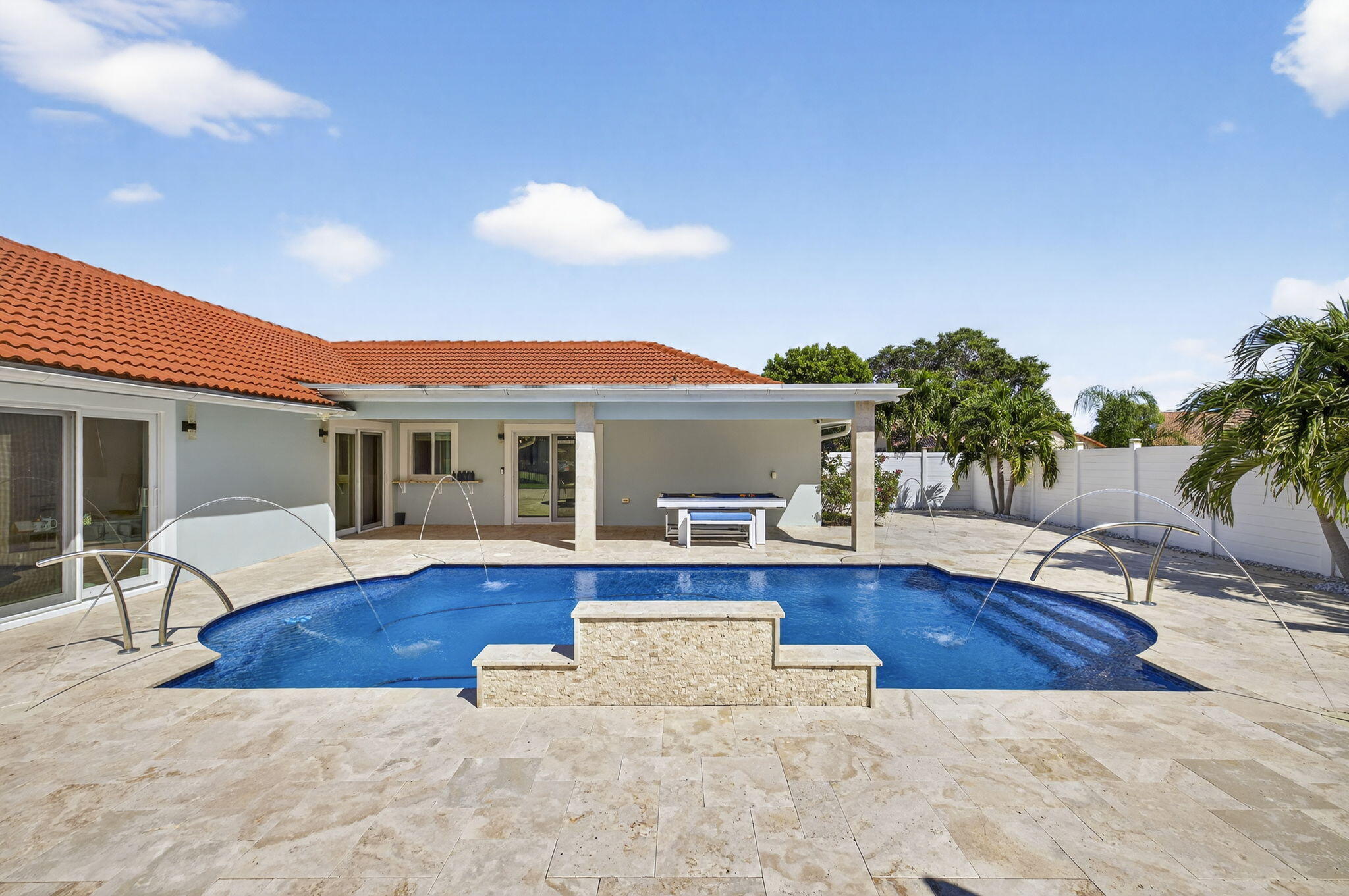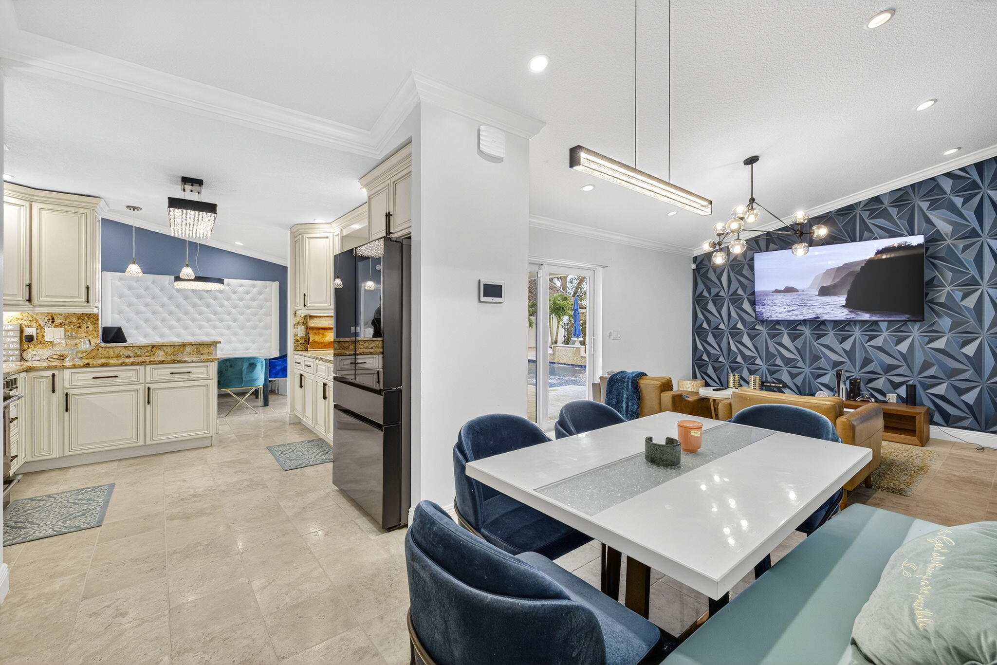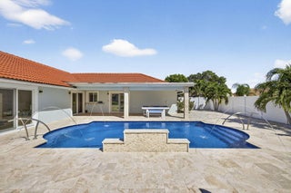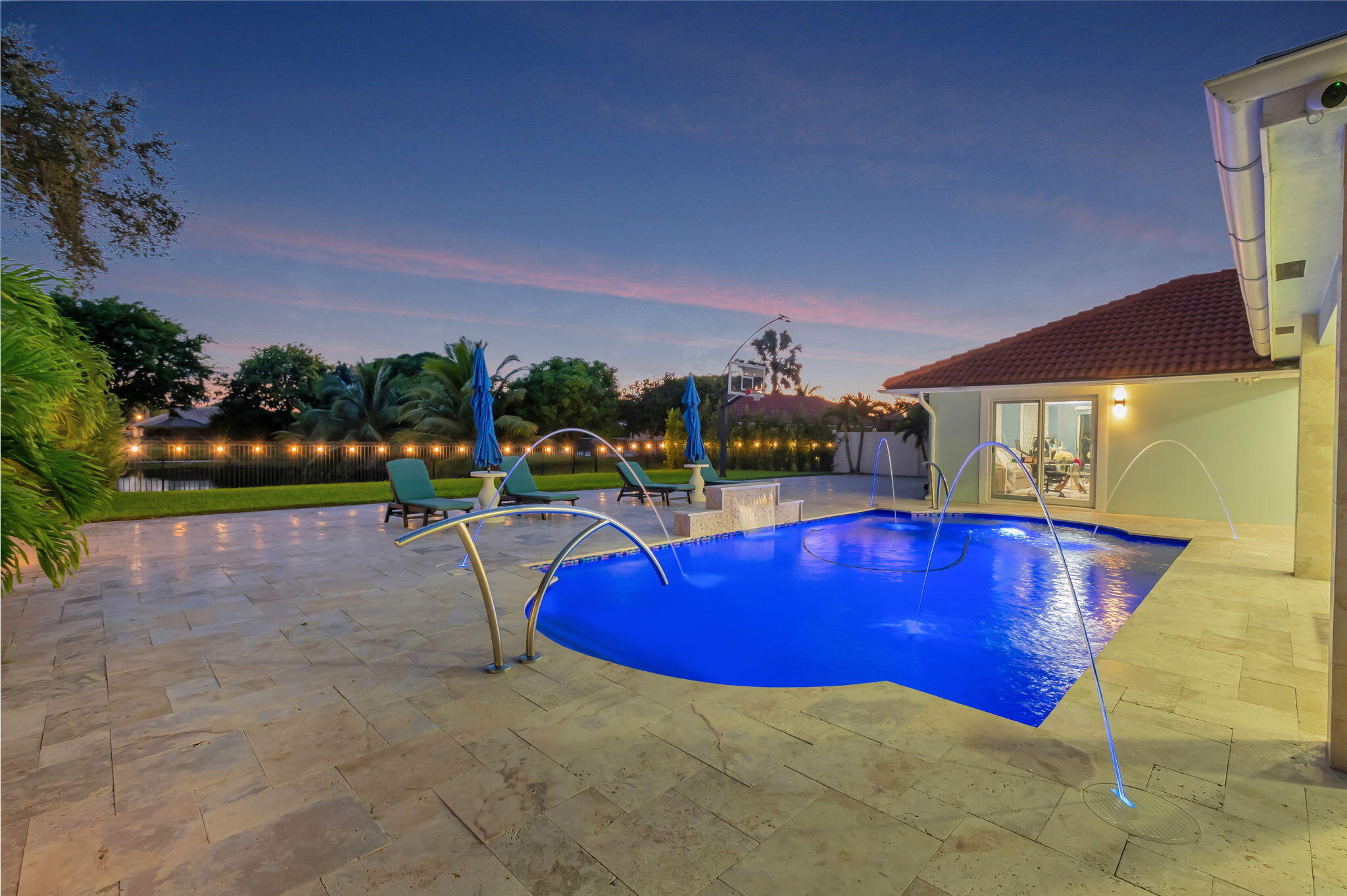 A Perfect Blend of Modern Elegance & Effortless Comfort.Welcome to a residence where thoughtful upgrades, refined design, and smart technology come together to create a lifestyle of sophistication and ease. This beautifully updated home showcases quality craftsmanship and exceptional attention to detail inside and out.From the moment you arrive, you'll appreciate the privacy wall and paver-lined driveway that frame the home's elegant exterior. The 2019 roof and impact windows ensure peace of mind, while the covered gutters and Trane 4-ton A/C (installed 2023)--professionally serviced by Hi-Vac and controlled directly from your phone--add convenience and reliability.Step inside to discover an inviting interior adorned with travertine flooring, quartz countertops, and custom accent walls that elevate every room. The home's ambiance is enhanced by modern lighting fixtures, including a unique illuminated table, and wood-paneled ceilings that add warmth and dimension. All closets feature fitted, soft-close systems, and every detail from the baseboards and crown molding to the pull-out storage solutions in the bathrooms and laundry room reflects thoughtful design and practicality. The kitchen and living spaces are both beautiful and functional, featuring stainless steel appliances, a refrigerator with voice control ("Hey Bixby"), and a voice-activated sink for the ultimate modern convenience. For added comfort, electric remote-controlled shutters provide privacy and protection at the touch of a button. Technology enthusiasts will appreciate the home's integrated smart systems with an 8-camera security setup and an electric car charger in the garage. The garage itself is immaculately maintained, complete with epoxy floors, ample cabinetry, two washers and dryers, and even a TV that stays. Step outdoors to your private retreat, featuring a heated pool with AquaLink automation, pool heater, and pump (both installed in 2020), and a fully automated irrigation system. Whether entertaining or relaxing, this space invites you to enjoy the best of Florida living year-round. Every element of this home was designed to offer luxury, comfort, and peace of mind where style meets smart living. All measurements, dimensions, and square footage information provided are deemed reliable but are not guaranteed and should not be relied upon as exact. Such information has been obtained from public records, builder plans, or third-party sources. The Broker and Seller make no representations or warranties as to the accuracy of this information. It is the sole responsibility of the Buyer to verify all measurements, room dimensions, and square footage to their own satisfaction before purchase. ALL TV's ARE EXCLUDED
