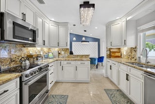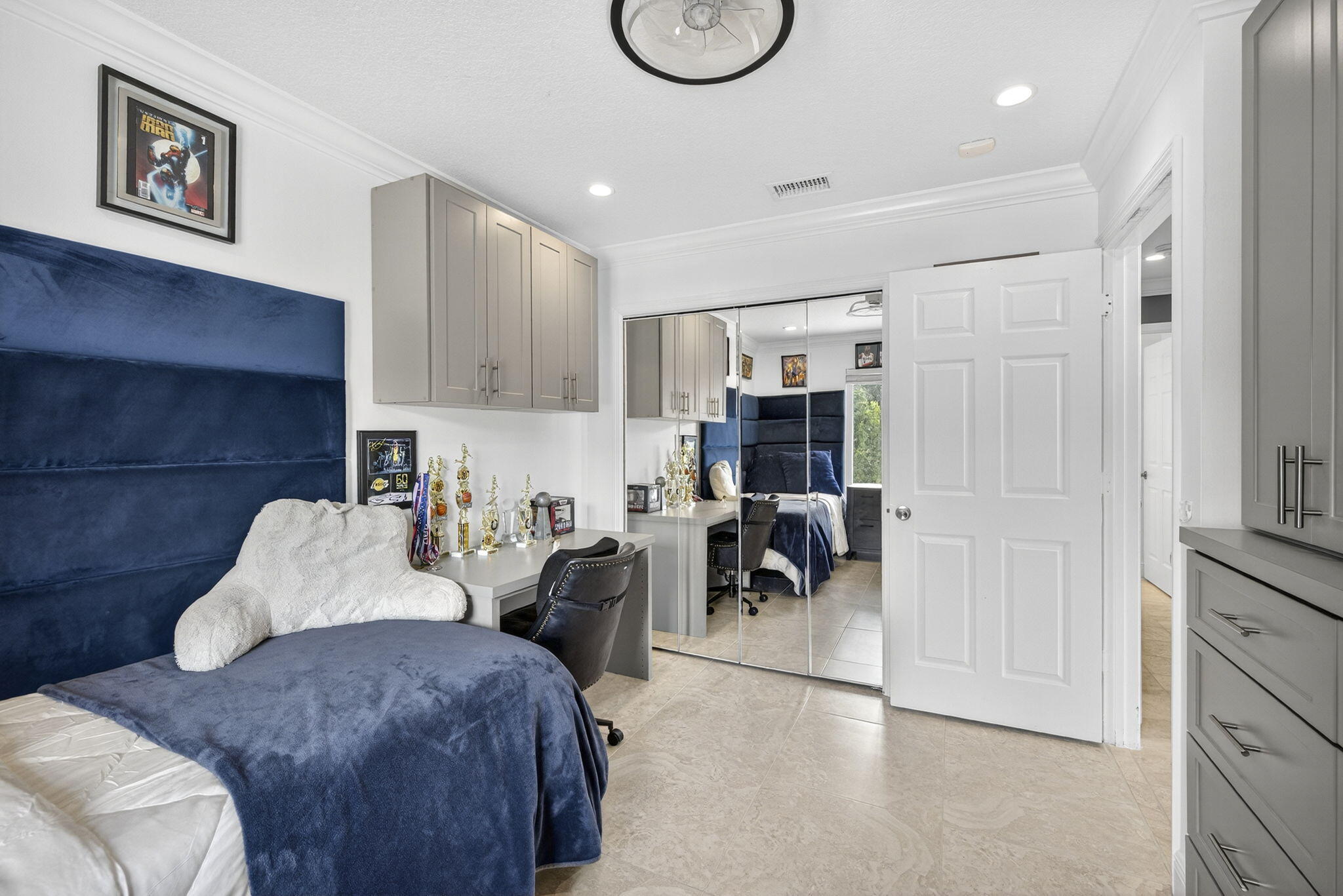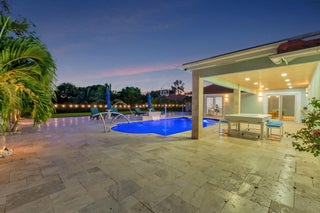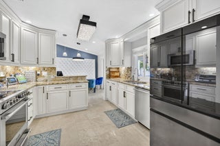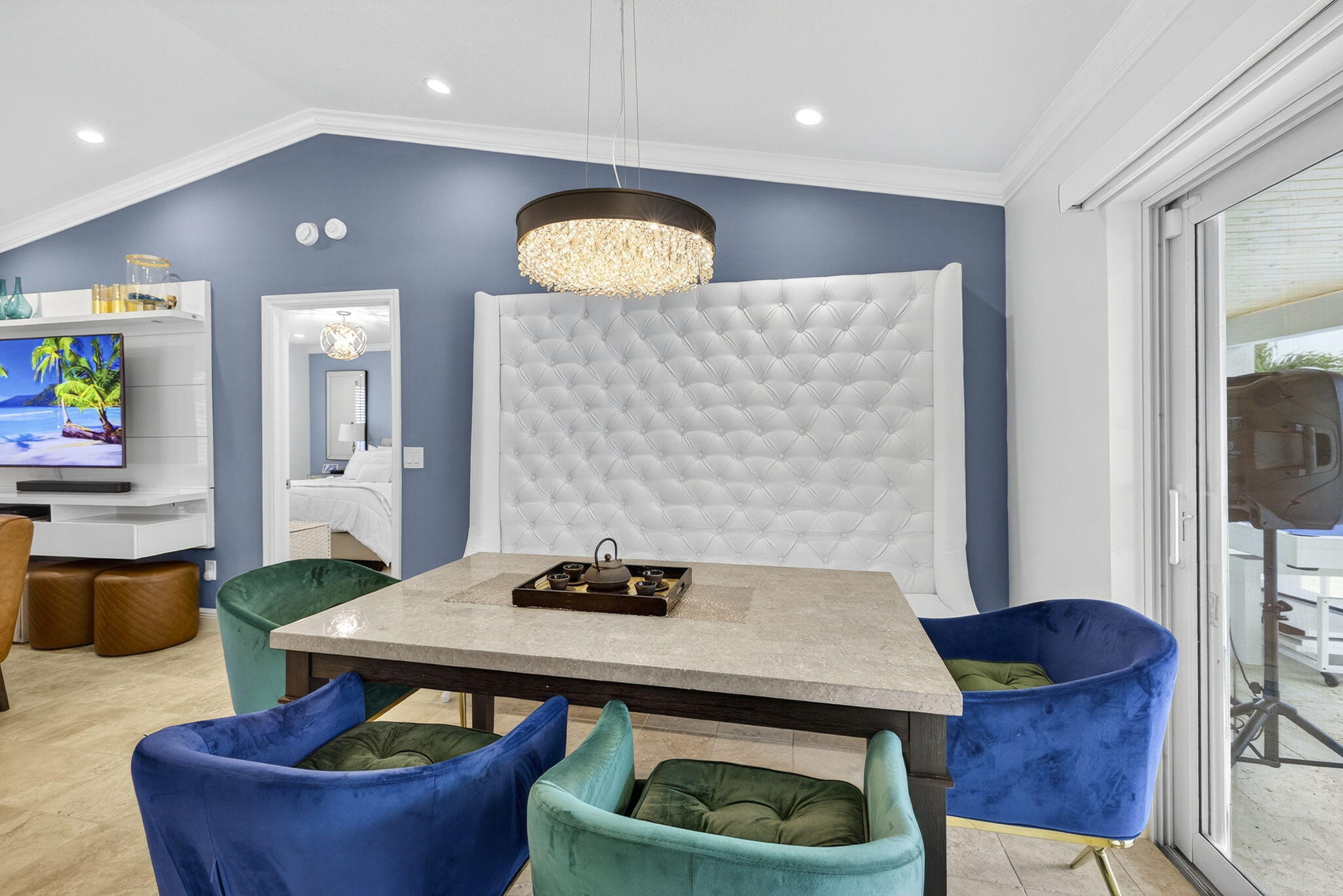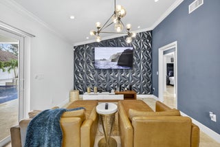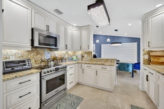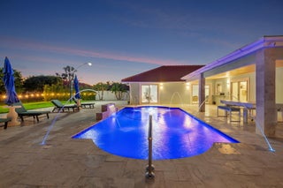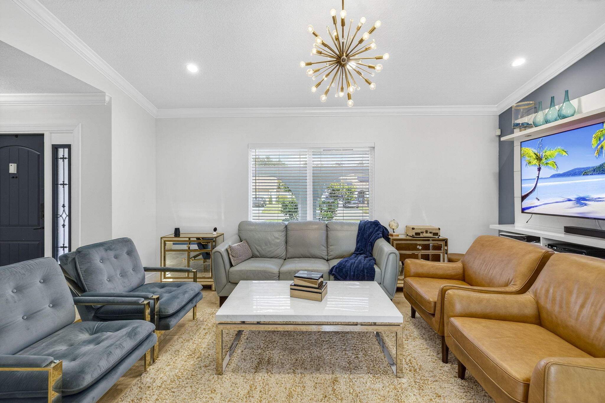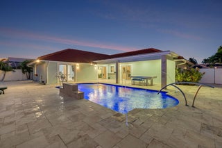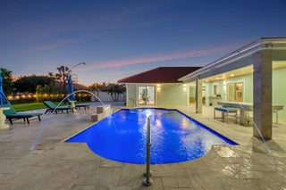 A Perfect Blend of Modern Elegance & Effortless Comfort.Welcome to a residence where thoughtful upgrades, refined design, and smart technology come together to create a lifestyle of sophistication and ease. This beautifully updated home showcases quality craftsmanship and exceptional attention to detail inside and out.From the moment you arrive, you'll appreciate the privacy wall and paver-lined driveway that frame the home's elegant exterior. The 2019 roof and impact windows ensure peace of mind, while the covered gutters and Trane 4-ton A/C (installed 2023)--professionally serviced by Hi-Vac and controlled directly from your phone--add convenience and reliability.Step inside to discover an inviting interior adorned with travertine flooring, quartz countertops, and custom accent walls that elevate every room. The home's ambiance is enhanced by modern lighting fixtures, including a unique illuminated table, and wood-paneled ceilings that add warmth and dimension. All closets feature fitted, soft-close systems, and every detail from the baseboards and crown molding to the pull-out storage solutions in the bathrooms and laundry room reflects thoughtful design and practicality. The kitchen and living spaces are both beautiful and functional, featuring stainless steel appliances, a refrigerator with voice control ("Hey Bixby"), and a voice-activated sink for the ultimate modern convenience. For added comfort, electric remote-controlled shutters provide privacy and protection at the touch of a button. Technology enthusiasts will appreciate the home's integrated smart systems with an 8-camera security setup and an electric car charger in the garage. The garage itself is immaculately maintained, complete with epoxy floors, ample cabinetry, two washers and dryers, and even a TV that stays. Step outdoors to your private retreat, featuring a heated pool with AquaLink automation, pool heater, and pump (both installed in 2020), and a fully automated irrigation system. Whether entertaining or relaxing, this space invites you to enjoy the best of Florida living year-round. Every element of this home was designed to offer luxury, comfort, and peace of mind where style meets smart living. All measurements, dimensions, and square footage information provided are deemed reliable but are not guaranteed and should not be relied upon as exact. Such information has been obtained from public records, builder plans, or third-party sources. The Broker and Seller make no representations or warranties as to the accuracy of this information. It is the sole responsibility of the Buyer to verify all measurements, room dimensions, and square footage to their own satisfaction before purchase. ALL TV's ARE EXCLUDED