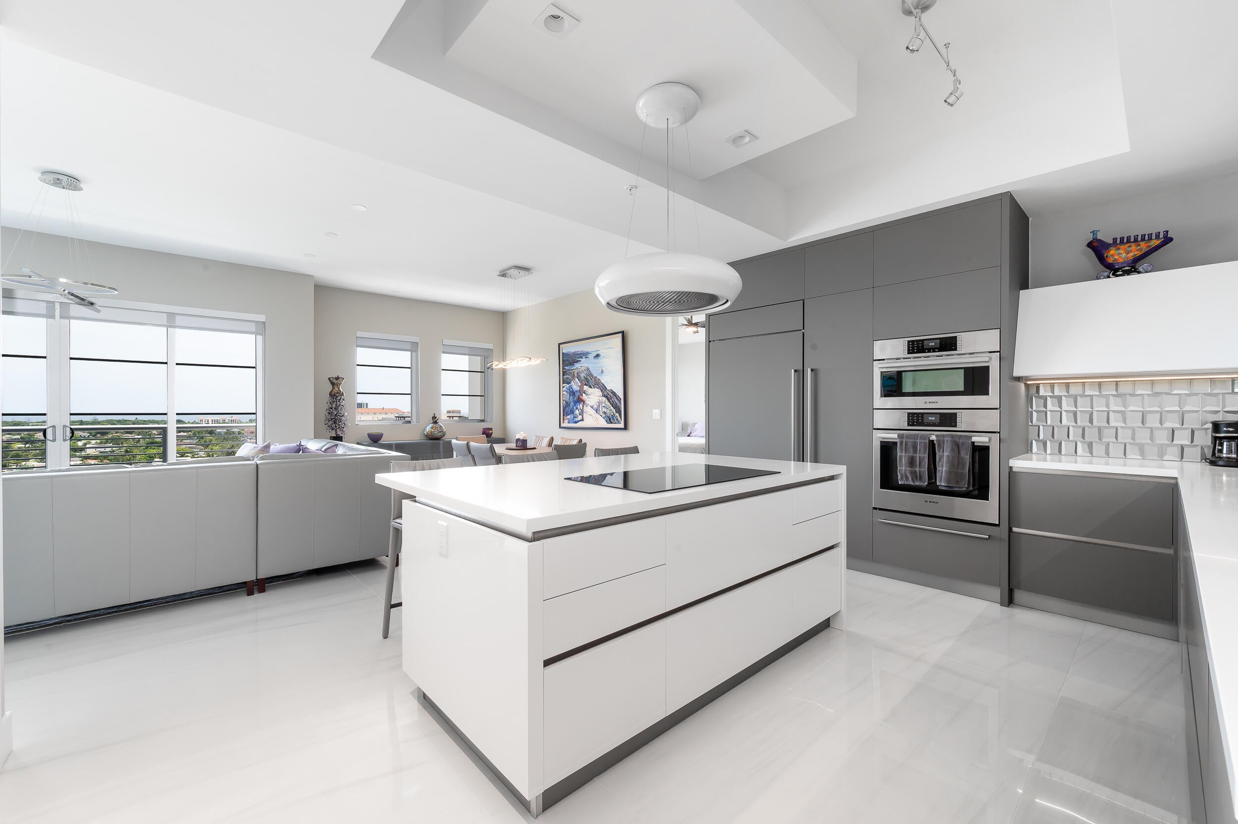 Discover the epitome of luxury living in Downtown Boca with this exquisite condo on the 11th floor with incredible Ocean Views. Enjoy panoramic views of East Boca and an abundance of natural light that frame the vibrant cityscape and ocean. Step inside to find an open living space with high-end finishes and modern design elements. The gourmet kitchen boasts top-of-the-line appliances, custom cabinetry, and a spacious island perfect for entertaining. 3 bedroom plus 2.5 bath layout offers a split bedroom plan both with ensuite baths. The primary is a serene retreat with a spa-like bathroom and oversized walk-in closet. Enjoy stunning sunrise views from your 2 separate balconies. THREE private parking spaces + THREE private storage units. This residence has it all!