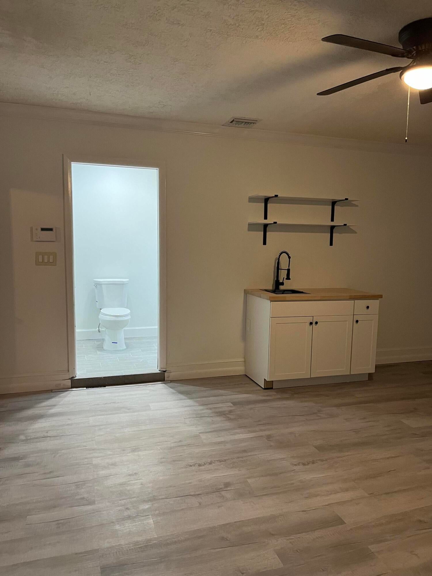 Charming efficiency apartment approximately 300 sq. ft. with a private entrance in a peaceful Jensen Beach neighborhood--no HOA! This unfurnished studio offers a full bathroom, refrigerator, and microwave. Enjoy the convenience of all utilities included--electric, water, and lawn care. The unit features its own A/C. Pets are welcome, but NO SMOKING. Annual lease only. Located close to beaches, shopping, dining, and vibrant downtown Jensen Beach.