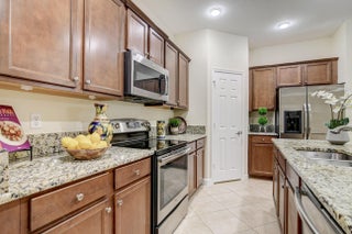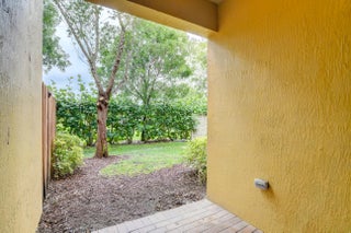 UPSCALE TOWNHOME IN BOUTIQUE COMMUNITY. GATED ENTRY AND CODED FRONT DOOR ENTRY. PRIVATE GARDEN VIEW FROM COVERED PAVER PATIO. STONEFRONT 2 STORY 3BEDROOM, 2.5 BATHS WITH 1 CAR GARAGE. GOURMET KITCHEN WITH GRANITE, STAINLESS, PANTRY. TILE ON THE DIAGONAL IN FOYER, POWDER ROOM, DINING AREA, FAMILY ROOM DOWNSTAIRS. LAMINATE ON STAIRS AND UPSTAIRS. DOUBLE DOOR PRIMARY BATH HAS TUB, DUAL VANITIES, AND SEPARATE SHOWER. PRIMARY BEDROOM GAS TRAY CEILING AND WALK-IN CLOSET. TWO ADDITIONAL BEDROOMS SHARE THE GUEST BATH AND UPSTAIRS LAUNDRY ROOM. COMMUNITY POOL AND TROPICAL FOLIAGE, A-RATED SCHOOLS, CLOSE TO MALL, SHOPS, RESTAURANTS, MEDICAL, EQUESTRIAN AND TURNPIKE.
