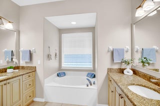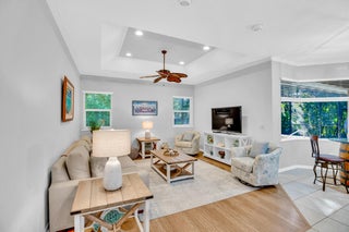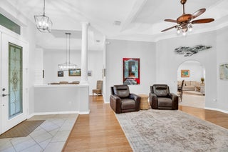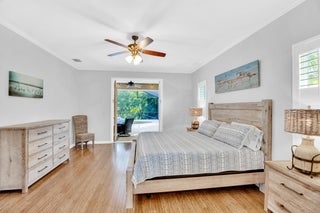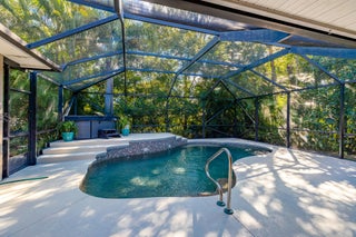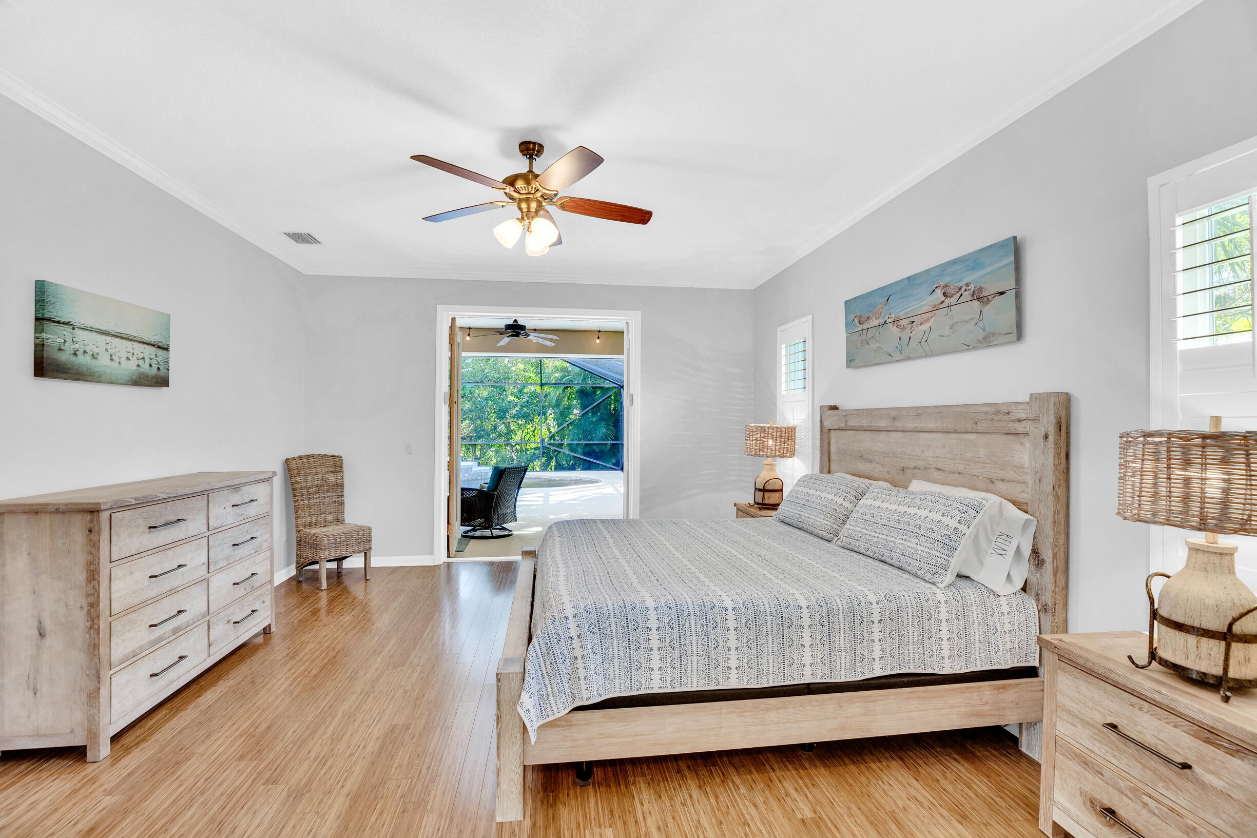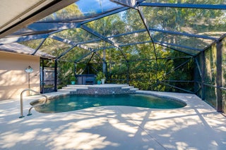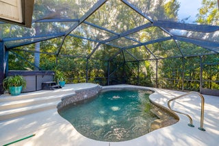 Nestled in the sought-after enclave of The Crossing, this custom-built pool home awaits. Lush .36/acre lot affords tranquility and privacy. Step inside to enjoy living areas that open to the solar-heated pool. Island kitchen features miles of cabinets and counter space with bar seating. Luxe master suite has walk-in closets, dual vanities, soaking tub, and roomy shower. Den adjoins the primary suite and can easily flex as 4th bedroom/nursery with walk-in closet. Circular drive and side-entry garage can park plenty of cars! Reroofed and replumbed, with up-to-date HVAC units and water heater, full hurricane protection and built-in generator. One-acre lake is the focal point of this elegant neighborhood. Life is a breeze on these oak-canopied streets!