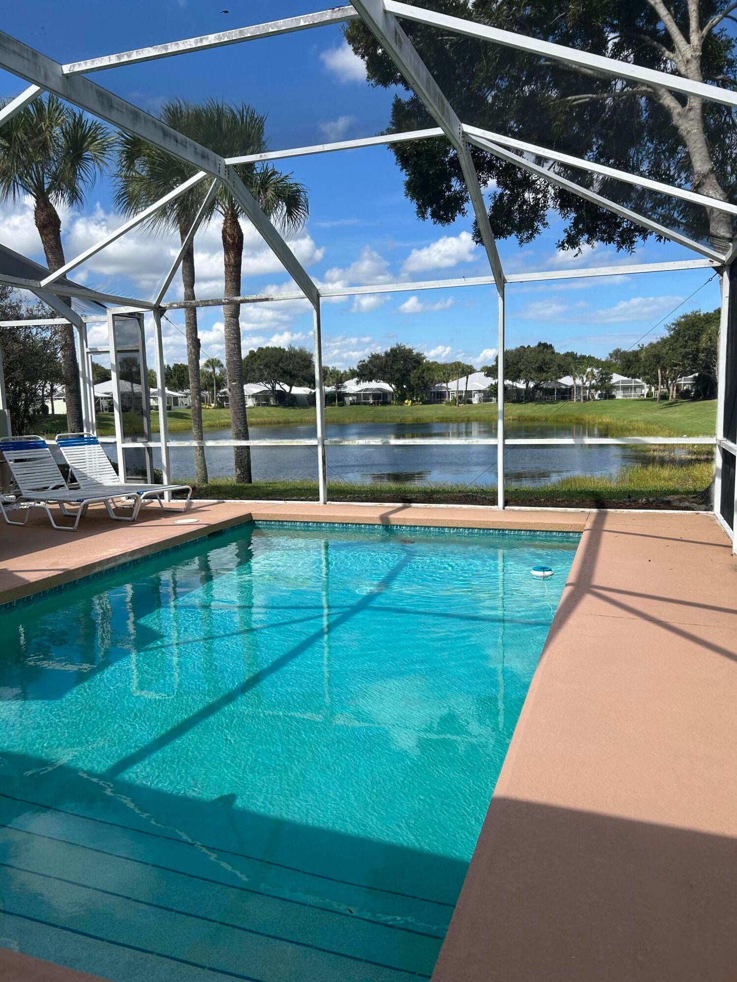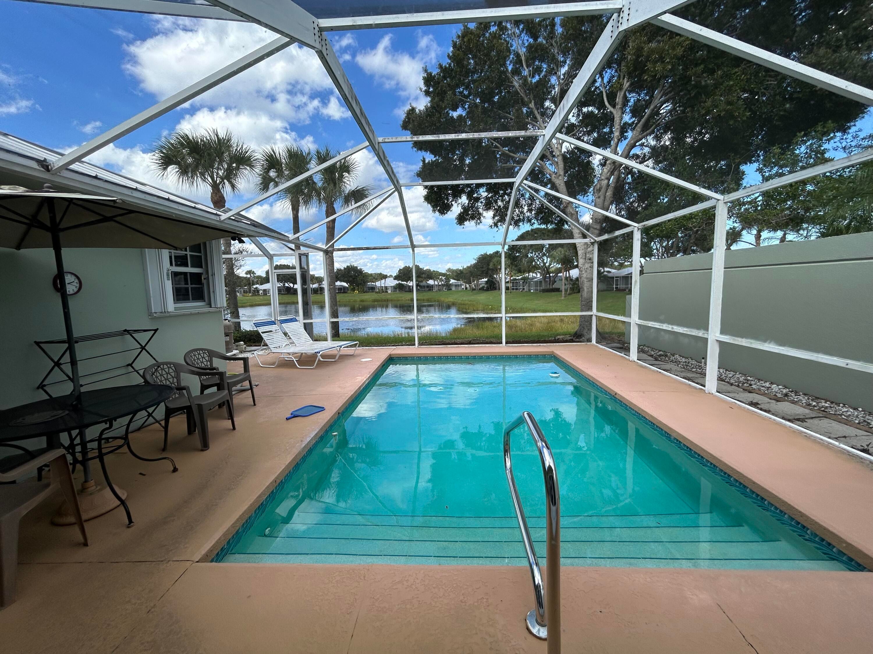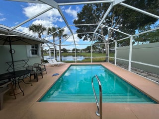Just Listed: Beautiful 2BR/2BA/2CG direct lakefront pool home in The Meadows, a gated community. Newer roof, gorgeous granite kitchen features stainless appliances, 4 person granite peninsula bar, built in microwave and tons of storage. Split bedrooms with cabana master bath to pool area. Vaulted ceilings. Huge laundry room with lots of cabinetry and countertop space. Full size 2 car garage and accordion shutter hurricane protection as well. This home has it all and is one of the very few lakefront homes in the Meadows with a pool (heated) and it is still priced lower than all other homes, even non lakefront no pool homes, for quick sale! New roof in 2017 plus full accordion shutter protection keeps insurance costs low!, New AC 2019 and new HWH 2021.