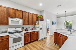 Beautiful home, formal living and dining room areas, breakfast nook, large screened porch, master bath with 2 vanities, roman tub and separate shower. Kitchen with Corian counter tops, gas stove. Recently Painted interior and Exterior. Deluxe vinyl Faux Wood Flooring throughout. Community offers large pool overlooking lake, Gym, Tennis Courts, and well-appointed clubhouse for special events.
