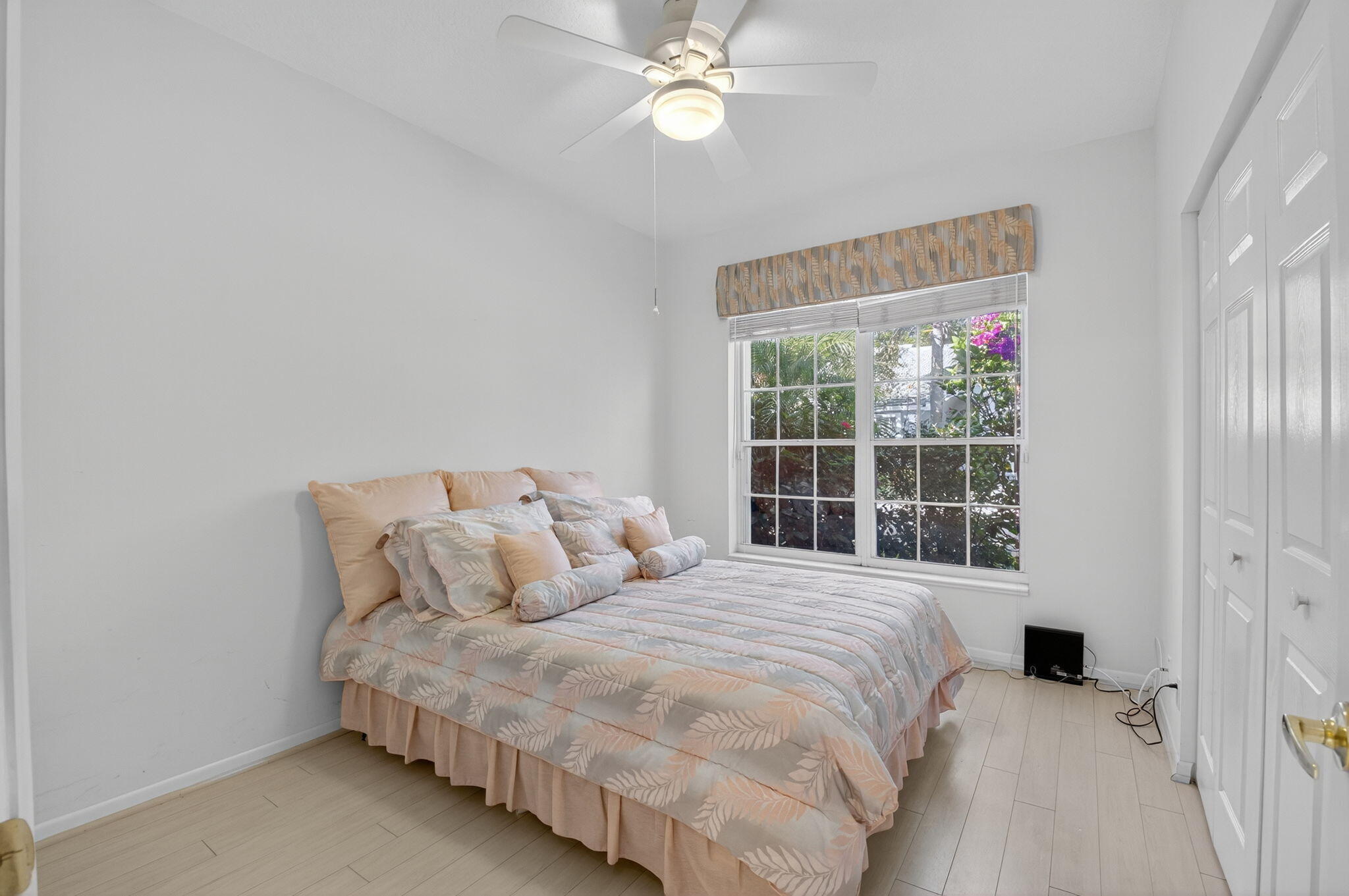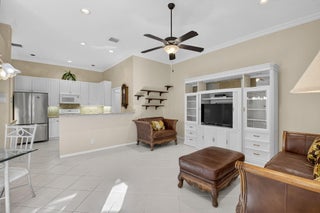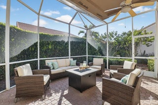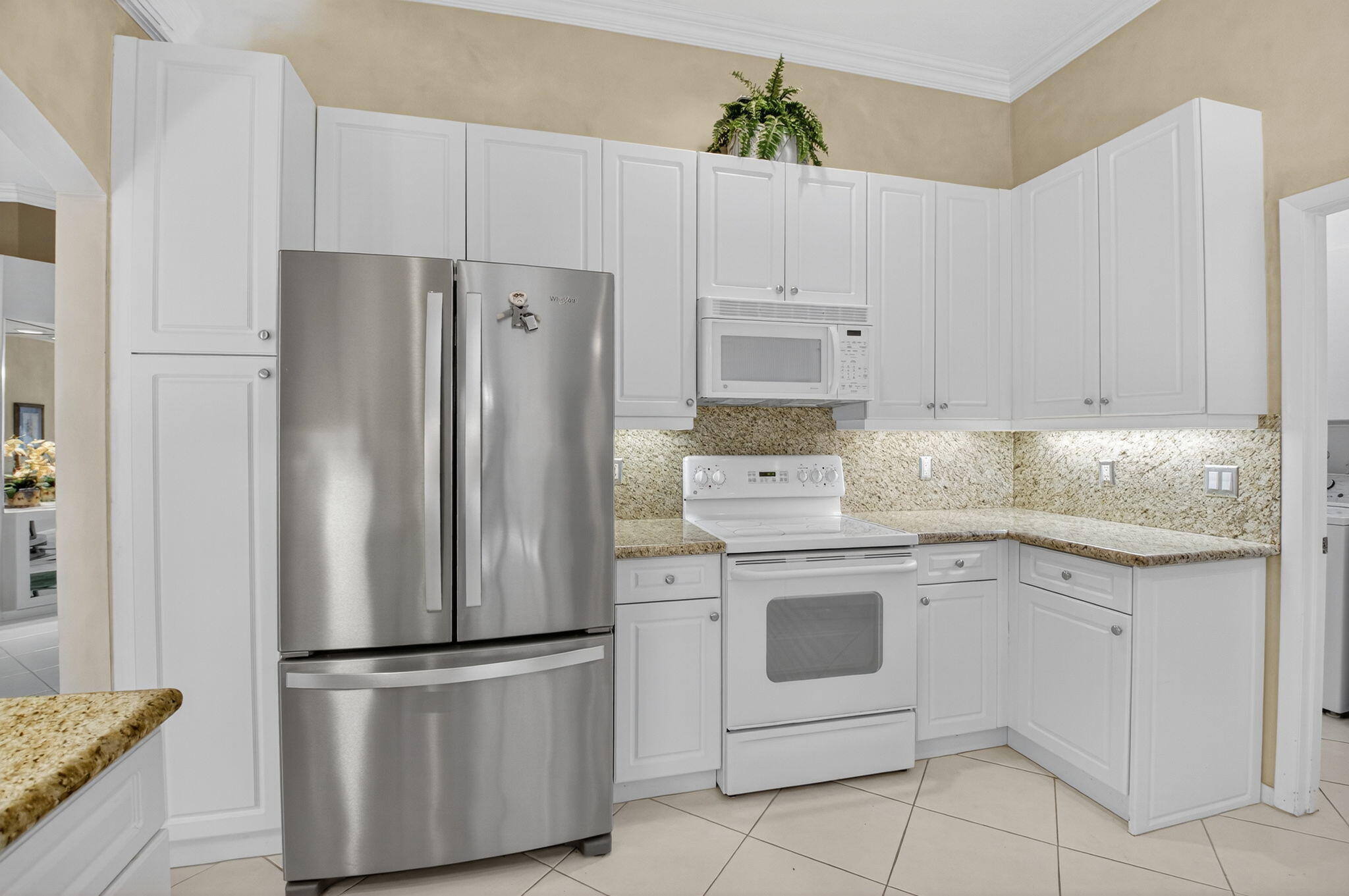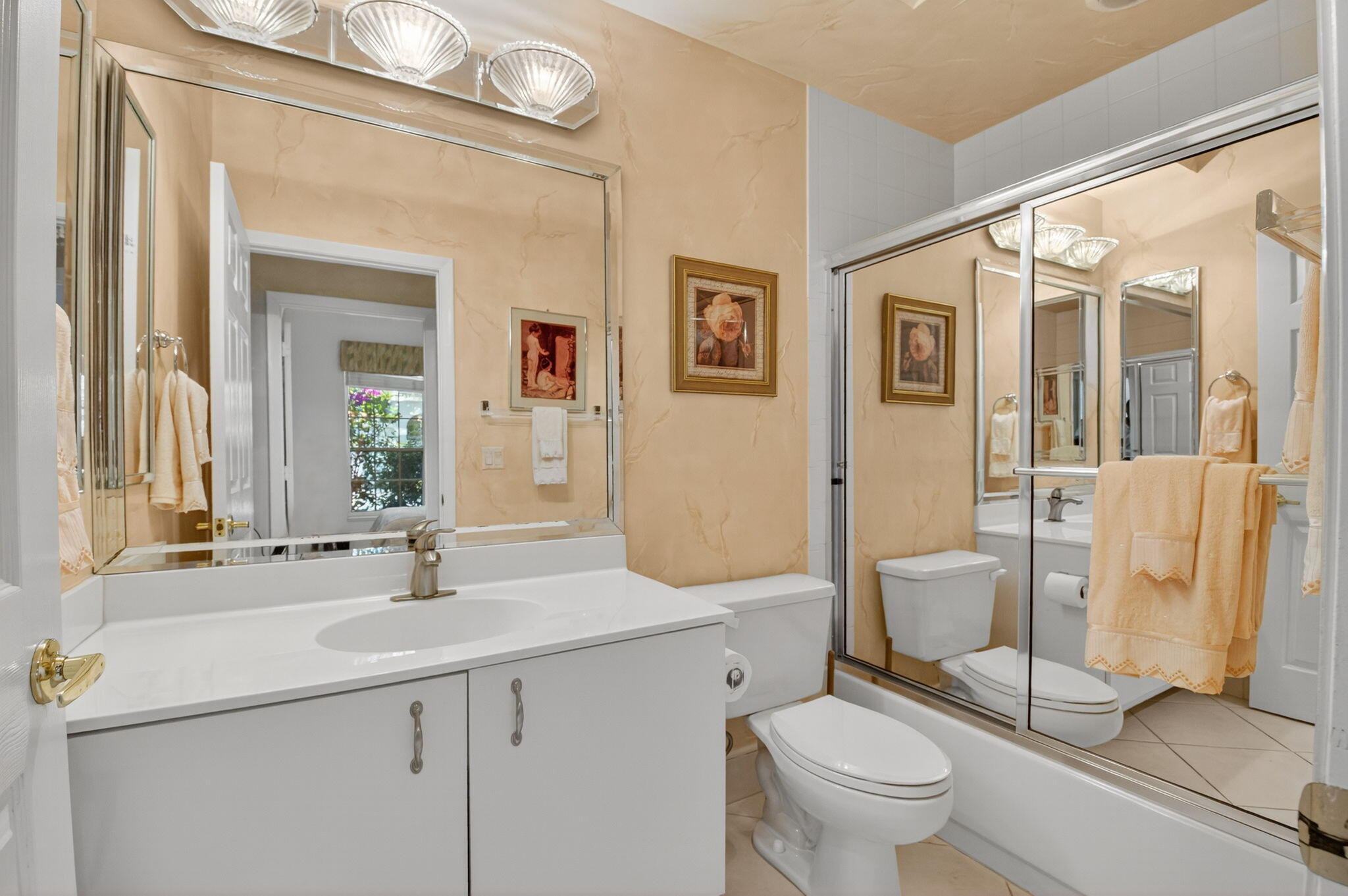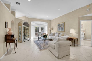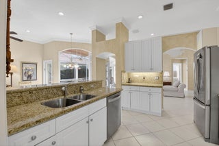 Welcome home to this beautifully maintained single story residence located in the gated Costa Del Sol community of Boca Pointe in Boca Raton--an all-ages neighborhood known for its charm and tranquility. This elegant Waterford model features 3 bedrooms, 2 bathrooms, a 2 car garage, and nearly 1,900 square feet of bright, open living space. Designed with a desirable split floor plan, the home offers volume ceilings, recessed lighting, neutral tile and wood flooring, and an abundance of natural light throughout. The exterior exudes timeless Mediterranean-inspired appeal, with a warm stucco finish and a completely redone tile roof completed in 2022. A paver brick driveway leads to the spacious 2-car garage, while the inviting entryway is set beneath a graceful arched portico.The lush, meticulously maintained landscaping enhances the home's curb appeal, showcasing tropical plants, manicured shrubs, and perfectly edged green grass for a truly picturesque setting. As you enter, you're welcomed by a thoughtfully designed layout that combines functionality with elegance. To the right, 2 spacious guest bedrooms and a full bathroom provide comfort and privacy for family or visitors. The formal dining and living rooms offer a refined space for entertaining, featuring high ceilings and abundant natural light. To the left, the kitchen opens seamlessly to a charming breakfast nook and a comfortable family roomperfect for casual meals or relaxing evenings. The open concept design blends traditional warmth with modern comfort, highlighted by graceful archways, detailed crown molding, and expansive French doors in the formal living room that lead to a tranquil, freshly power washed paver patio. Together, the living and dining spaces create an inviting flow ideal for both entertaining and everyday living. The kitchen is a true focal point, featuring white cabinetry, granite countertops and backsplash, and a cozy breakfast nook. Appliances include a white range with matching microwave, a newer stainless steel French-door refrigerator, and a brand-new stainless steel dishwasher. A convenient pass-through window connects the kitchen to the living area, ideal for serving guests, while the adjacent laundry room offers a Whirlpool washer and dryer, built-in storage, and access to the epoxy finished 2 car garage. The primary suite is a private retreat with light wood flooring, crown molding, and expansive windows that bathe the space in natural light. The ensuite bathroom features dual sinks, a soaking tub, a separate walk-in shower, and 2 custom-organized closets, one walk-in and one reach in, for ample storage. 2 additional bedrooms are situated at the front of the home, offering flexibility for guests, family, or a home office. 1 bedroom is currently configured as a den with custom built-ins and shelving, while the 2nd features a bright and welcoming ambiance with a double-door closet and ceiling fan. The guest bathroom includes a white vanity with ample counter space, a full tub/shower combination enclosed with mirrored sliding doors, and a large wall-to-wall mirror that enhances the natural brightness of the space. Step outside to the private screened in patio an ideal setting for morning coffee or evening gatherings. The lanai features elegant brick paver flooring, two ceiling fans for comfort, and lush tropical landscaping framed by tall privacy hedges. Beyond the screened enclosure, a charming garden area with decorative stone accents and mature greenery adds to the home's tranquil appeal. Located within the highly sought-after, manned-gated community of Costa Del Sol at Boca Pointe, residents enjoy a low-maintenance lifestyle with cable, common areas, and 24-hour security included in the HOA. Optional membership at the Club at Boca Pointe offers access to an 18-hole championship golf course designed by Jack Nicklaus, a world-class tennis facility, state-of-the-art fitness center, resort-style pool, fine dining, and a vibrant calendar of social eventsall without mandatory equity fees. Ideally situated in central Boca Raton, this home is just minutes from Town Center Mall, Mizner Park, Downtown Boca, pristine beaches, and top-rated Palm Beach County schools. With its prime location, open layout, and access to the best of South Florida living, this home is an incredible opportunity to experience the luxury, comfort, and convenience of Boca Pointe living.