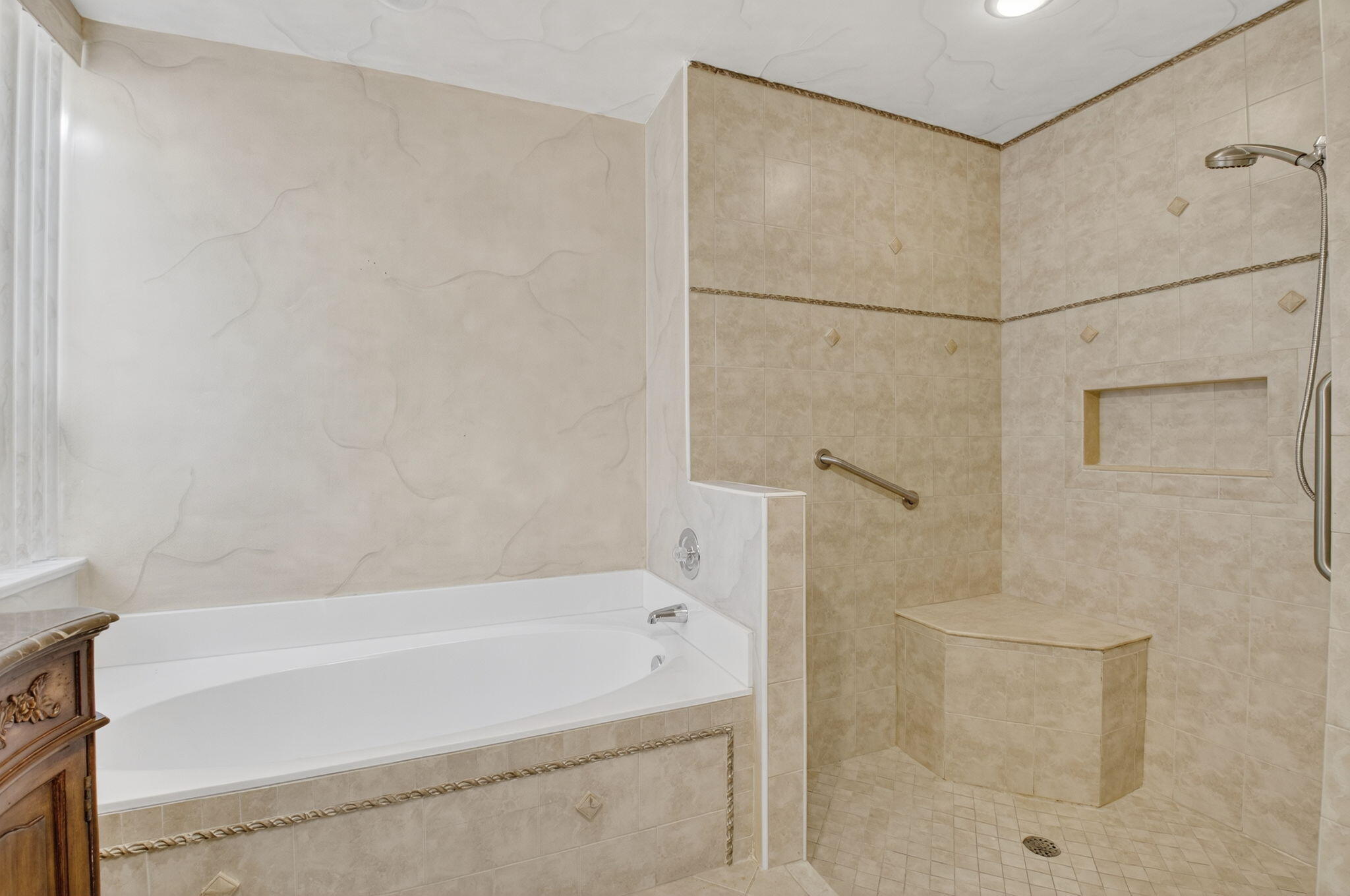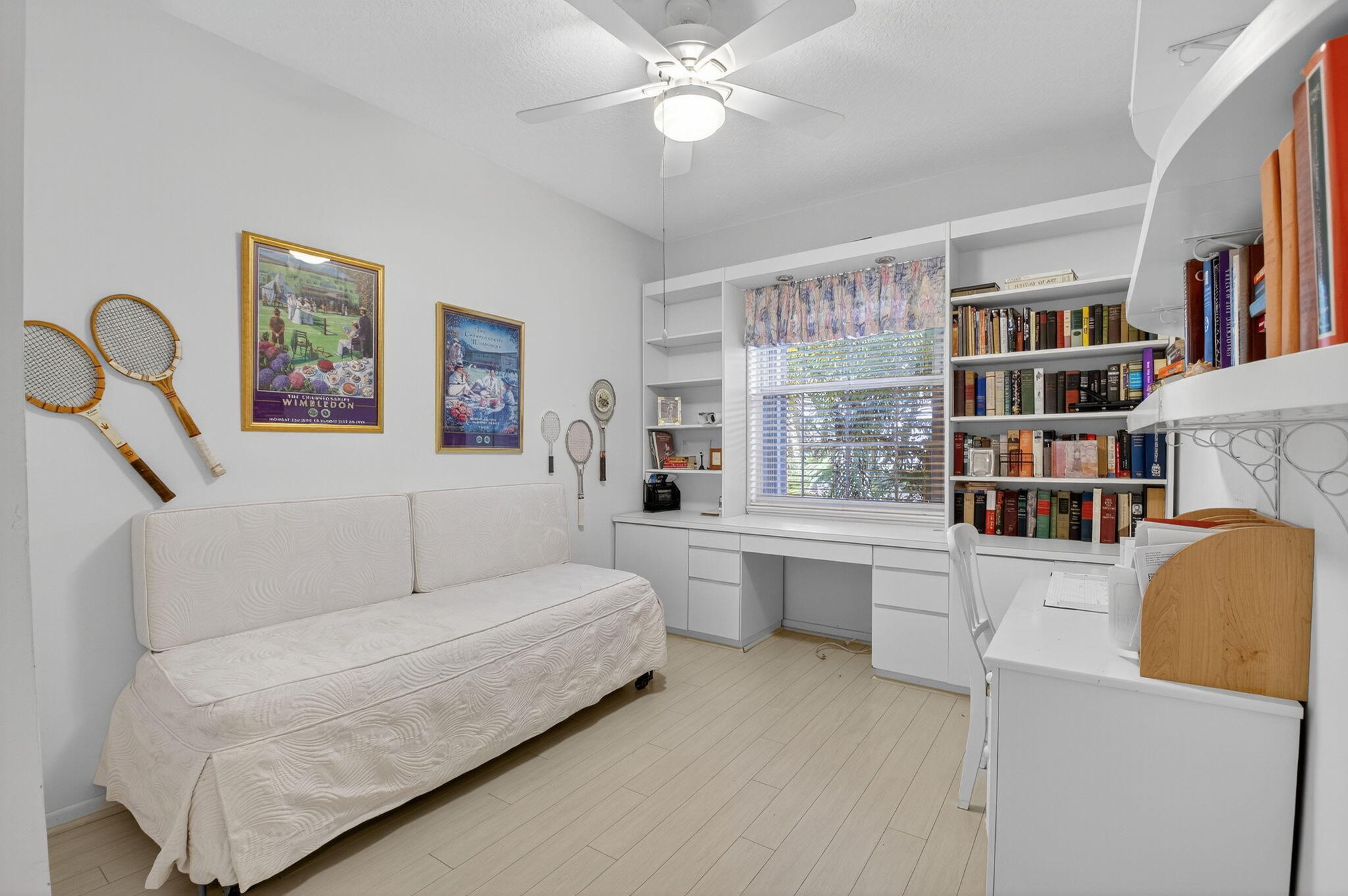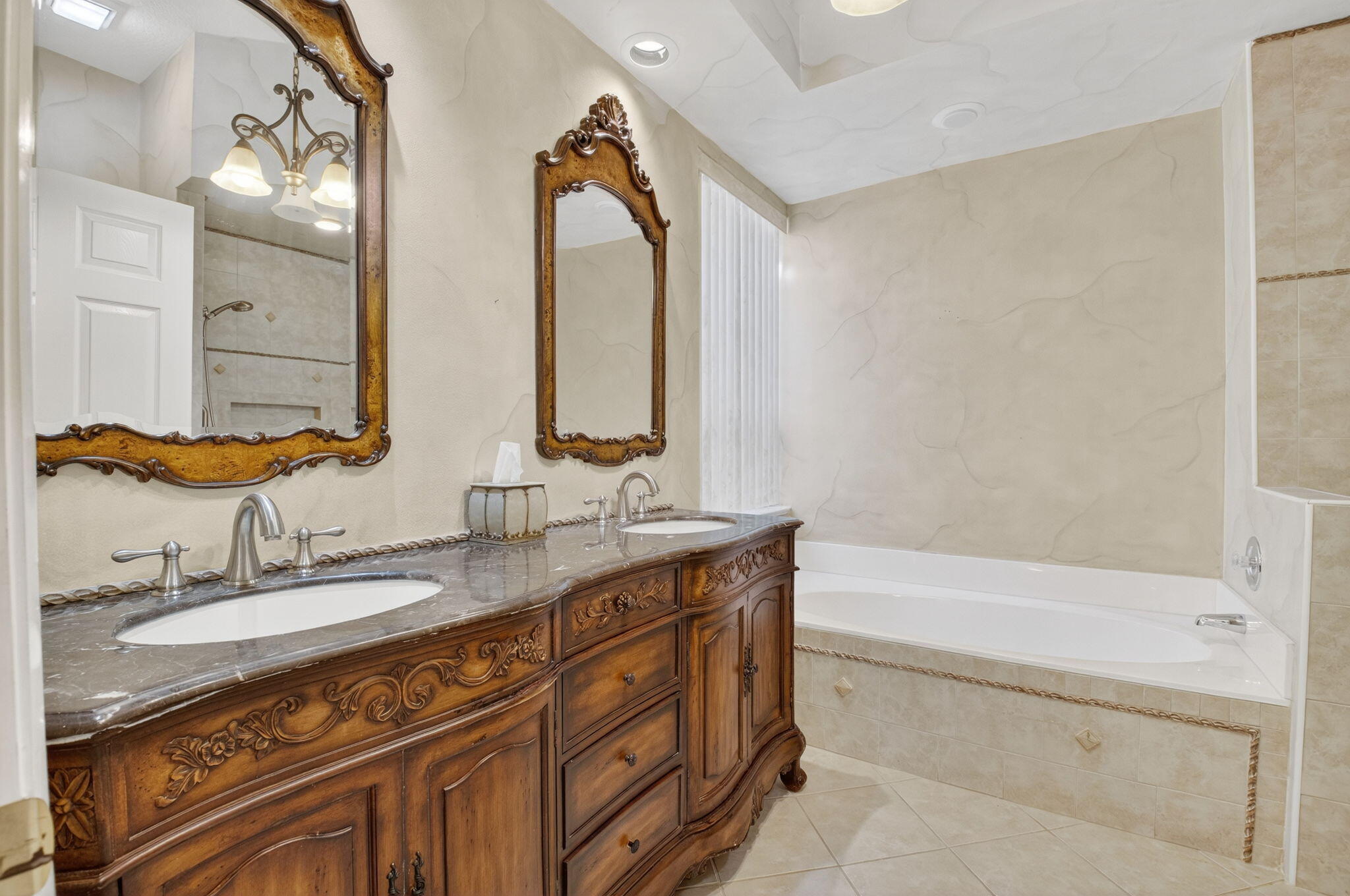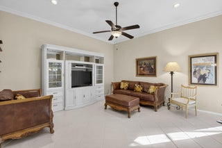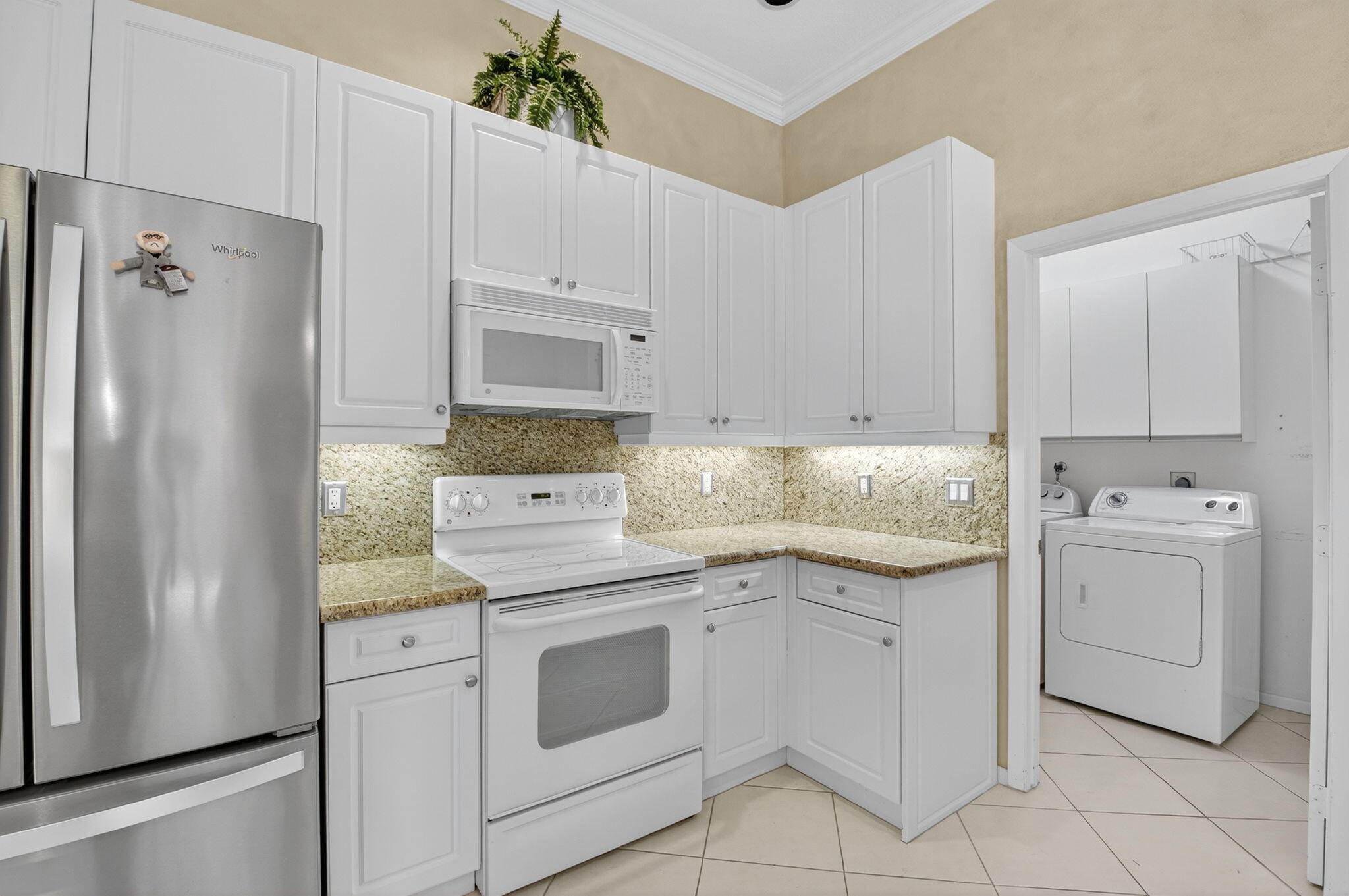 Welcome home to this beautifully maintained single story residence located in the gated Costa Del Sol community of Boca Pointe in Boca Raton--an all-ages neighborhood known for its charm and tranquility. This elegant Waterford model features 3 bedrooms, 2 bathrooms, a 2 car garage, and nearly 1,900 square feet of bright, open living space. Designed with a desirable split floor plan, the home offers volume ceilings, recessed lighting, neutral tile and wood flooring, and an abundance of natural light throughout. The exterior exudes timeless Mediterranean-inspired appeal, with a warm stucco finish and a completely redone tile roof completed in 2022. A paver brick driveway leads to the spacious 2-car garage, while the inviting entryway is set beneath a graceful arched portico.The lush, meticulously maintained landscaping enhances the home's curb appeal, showcasing tropical plants, manicured shrubs, and perfectly edged green grass for a truly picturesque setting. As you enter, you're welcomed by a thoughtfully designed layout that combines functionality with elegance. To the right, 2 spacious guest bedrooms and a full bathroom provide comfort and privacy for family or visitors. The formal dining and living rooms offer a refined space for entertaining, featuring high ceilings and abundant natural light. To the left, the kitchen opens seamlessly to a charming breakfast nook and a comfortable family roomperfect for casual meals or relaxing evenings. The open concept design blends traditional warmth with modern comfort, highlighted by graceful archways, detailed crown molding, and expansive French doors in the formal living room that lead to a tranquil, freshly power washed paver patio. Together, the living and dining spaces create an inviting flow ideal for both entertaining and everyday living. The kitchen is a true focal point, featuring white cabinetry, granite countertops and backsplash, and a cozy breakfast nook. Appliances include a white range with matching microwave, a newer stainless steel French-door refrigerator, and a brand-new stainless steel dishwasher. A convenient pass-through window connects the kitchen to the living area, ideal for serving guests, while the adjacent laundry room offers a Whirlpool washer and dryer, built-in storage, and access to the epoxy finished 2 car garage. The primary suite is a private retreat with light wood flooring, crown molding, and expansive windows that bathe the space in natural light. The ensuite bathroom features dual sinks, a soaking tub, a separate walk-in shower, and 2 custom-organized closets, one walk-in and one reach in, for ample storage. 2 additional bedrooms are situated at the front of the home, offering flexibility for guests, family, or a home office. 1 bedroom is currently configured as a den with custom built-ins and shelving, while the 2nd features a bright and welcoming ambiance with a double-door closet and ceiling fan. The guest bathroom includes a white vanity with ample counter space, a full tub/shower combination enclosed with mirrored sliding doors, and a large wall-to-wall mirror that enhances the natural brightness of the space. Step outside to the private screened in patio an ideal setting for morning coffee or evening gatherings. The lanai features elegant brick paver flooring, two ceiling fans for comfort, and lush tropical landscaping framed by tall privacy hedges. Beyond the screened enclosure, a charming garden area with decorative stone accents and mature greenery adds to the home's tranquil appeal. Located within the highly sought-after, manned-gated community of Costa Del Sol at Boca Pointe, residents enjoy a low-maintenance lifestyle with cable, common areas, and 24-hour security included in the HOA. Optional membership at the Club at Boca Pointe offers access to an 18-hole championship golf course designed by Jack Nicklaus, a world-class tennis facility, state-of-the-art fitness center, resort-style pool, fine dining, and a vibrant calendar of social eventsall without mandatory equity fees. Ideally situated in central Boca Raton, this home is just minutes from Town Center Mall, Mizner Park, Downtown Boca, pristine beaches, and top-rated Palm Beach County schools. With its prime location, open layout, and access to the best of South Florida living, this home is an incredible opportunity to experience the luxury, comfort, and convenience of Boca Pointe living.