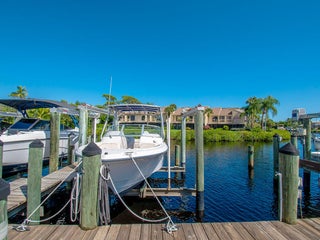 Boater's dream in Tarpon Bay Moorings! Beautifully maintained 3BR/3BA townhome featuring a private 20' dock directly behind the home plus an additional dock (#10) on the St. Lucie River with lift, power & water. Enjoy deep-water access with no fixed bridges to the ocean! Light and bright kitchen, spacious living areas with great views, upstairs laundry, and an updated walkway. Detached private garage provides extra storage and convenience. Community offers tons of charm, friendly neighbors and even a pool overlooking the canal. Perfect for boating enthusiasts and those seeking relaxed waterfront living. Ideally located near shopping, dining, parks and marinas--everything you need for the ultimate Florida lifestyle! Sizes approx/subj to error.