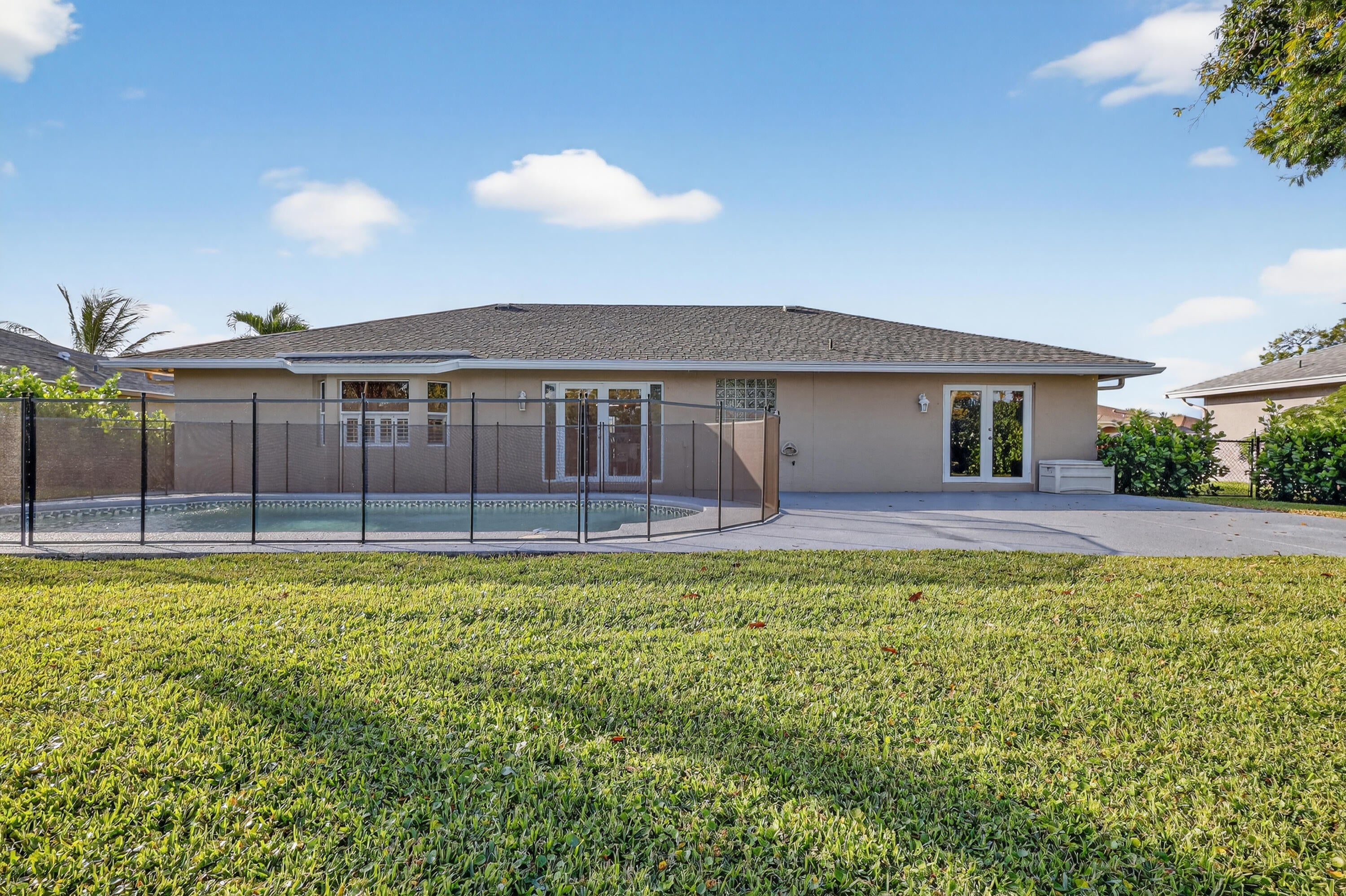 Pristine Waterfront 3-Bedroom + Den Pool HomeBeautifully maintained and move-in ready, this pristine 3-bedroom plus den home is located in a desirable, family-friendly waterfront community. Enjoy outdoor living at its finest with a private pool and an expansive deck overlooking the water--perfect for entertaining or relaxing.The bright and open floor plan features tasteful laminate flooring throughout, an open kitchen, and abundant natural light that fills every room. The spacious den offers flexibility for a home office, playroom, or guest space.Low quarterly HOA includes access to the community pool and well-kept common areas including playground and pickleball courts. This home combines comfort, style, and an unbeatable location for the ultimate Florida Lifestyle!
