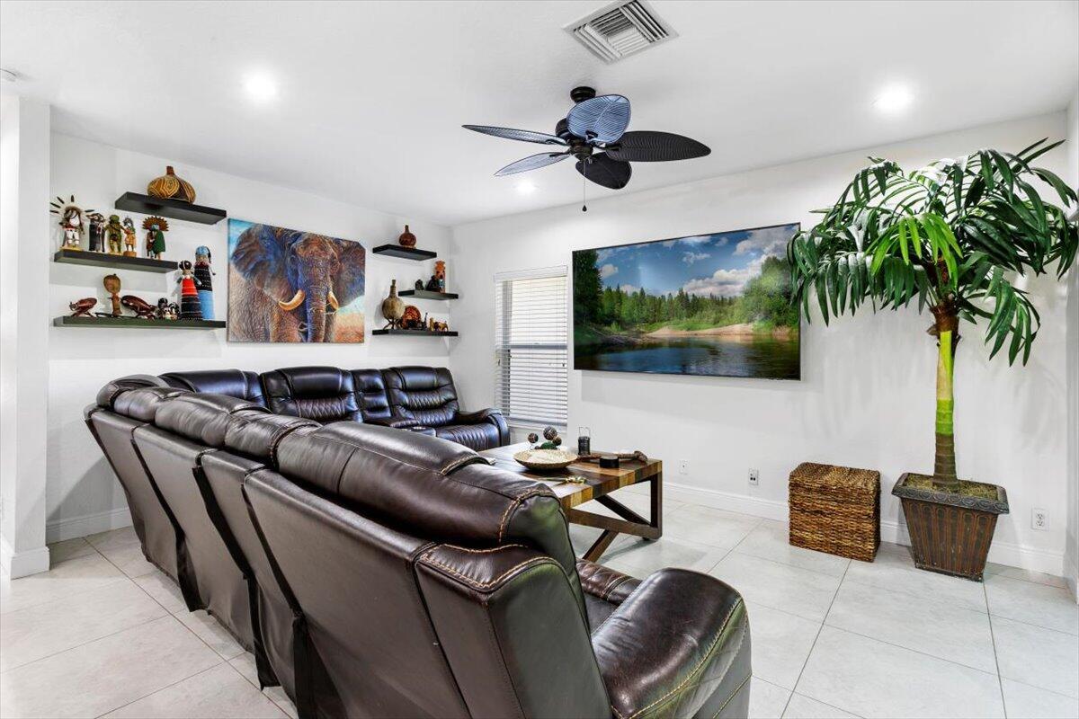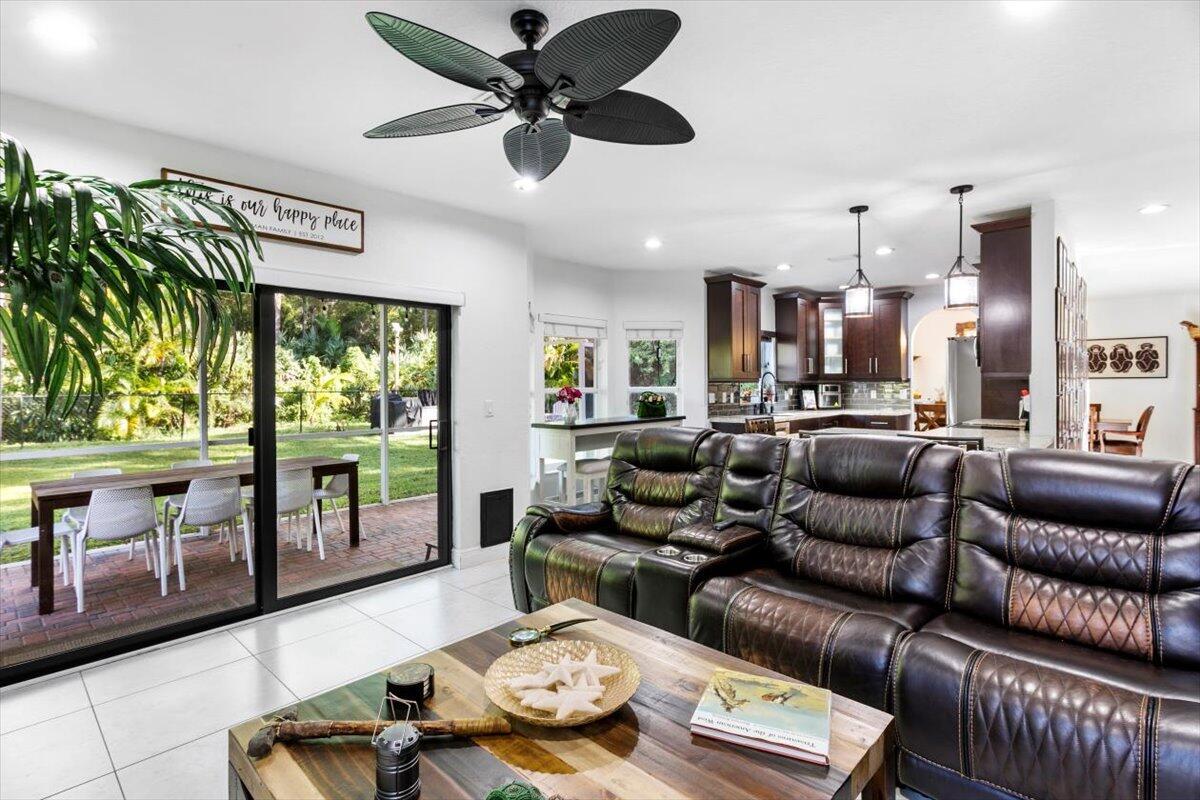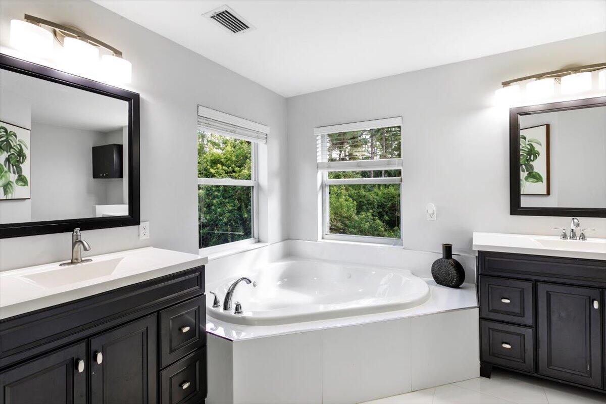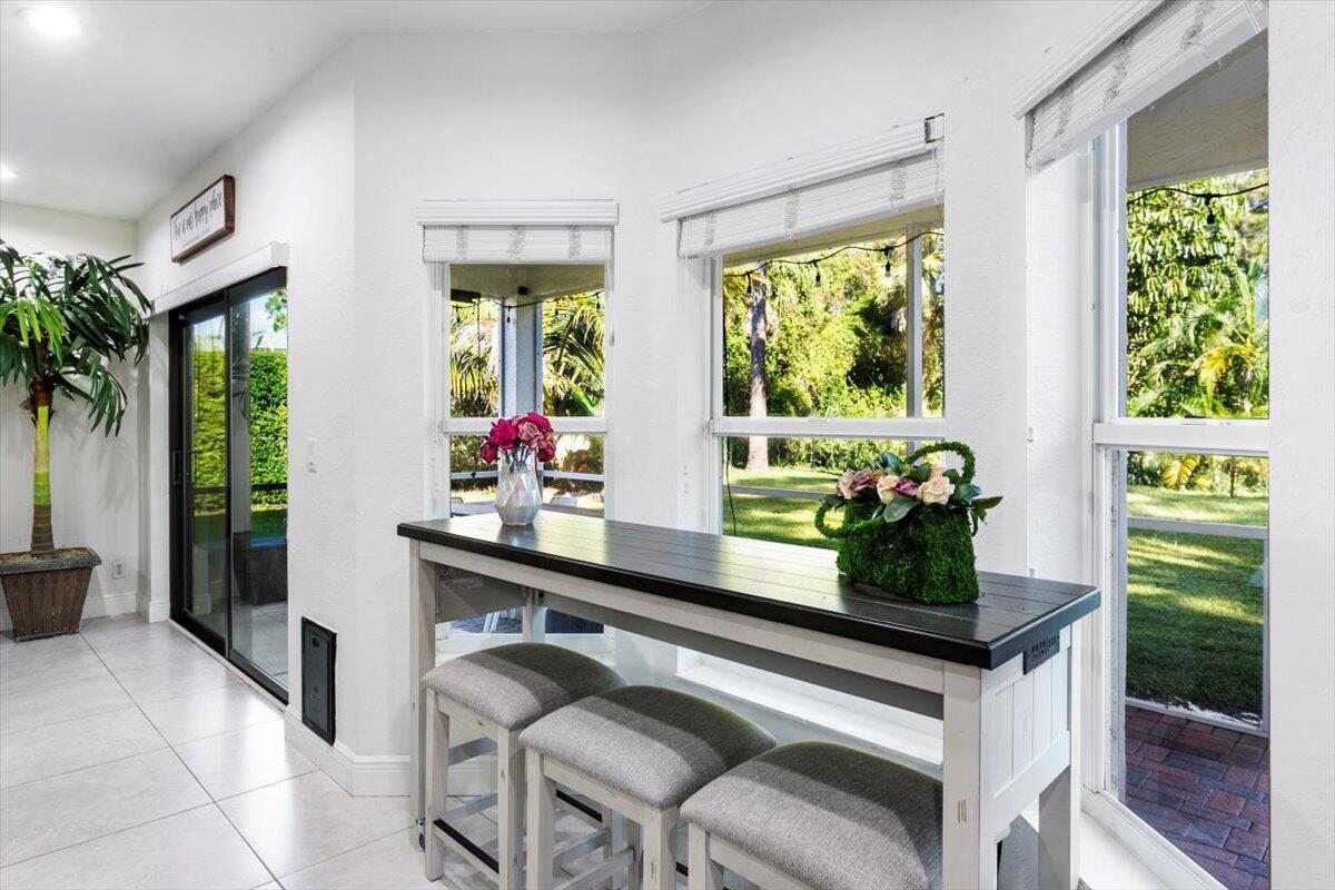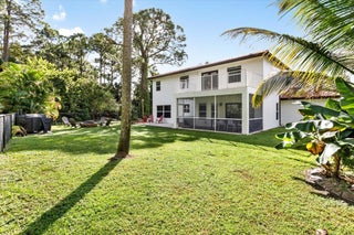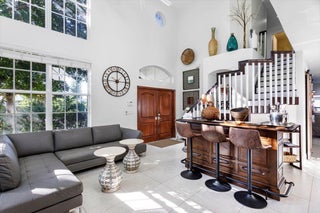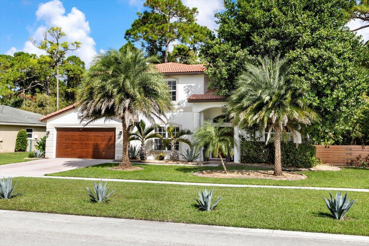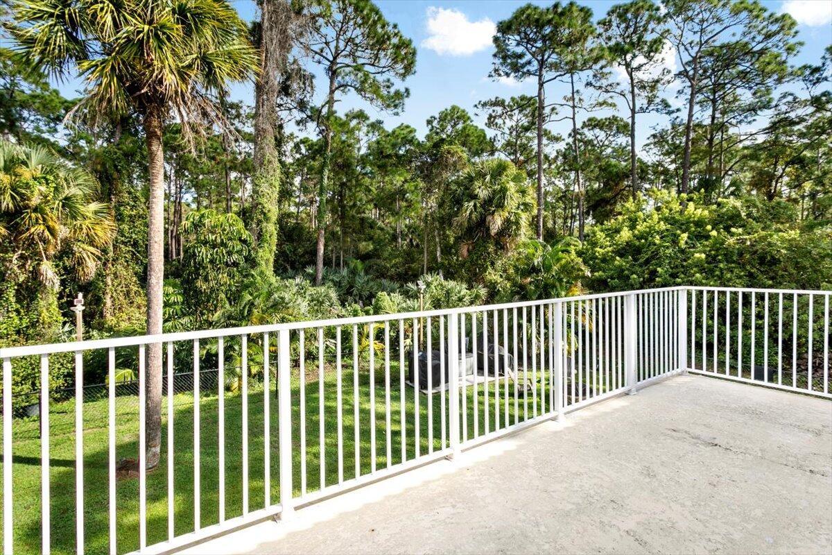 Welcome to your private sanctuary in the desirable Crestwood community, a beautifully updated residence where modern design meets effortless Florida living. Ideally positioned on lush preserve lot with N/S exposure, this home offers a rare sense of tranquility while keeping you close to everything Royal Palm Beach has to offer. From the curb, a long driveway and manicured landscaping set the tone for what's inside. Enter through the front door to find sunlit interiors, soaring ceiling, and elegant 24x24 porcelain tile flooring that flows throughout the open living spaces. The renovated kitchen is designed to impress, showcasing granite countertops, subway tile backsplash, custom soft-close wood cabinetry, LG stainless steel appliances, and double pantries for extra storage.Overlooking the spacious family room area and screened patio, it's the ideal hub for entertaining or relaxed evenings at home. The first floor includes a flexible bedroom, utility room or office, a full bath and laundry room with sink, providing both comfort and convenience for everyday living. Upstairs, the primary suite is a retreat of its own with vaulted ceilings, hardwood floors, and a private balcony overlooking the preserve, an ideal spot for morning coffee or sunset views. The spa-inspired bath features dual vanities, an oversized glass-enclosed shower, and a soaking jacuzzi tub. Three additional bedrooms offer versatility for guests, hobbies, or workspace needs, including one converted into a beautifully organized dressing room with built-ins. Head outside to your backyard paradise, a screened patio for dining al fresco, a fully fenced yard for privacy, and plenty of space for a future pool. Thoughtful touches like built-in pet doors and lush mature landscaping make this home both stylish and functional. Highlights include: new hurricane-rated front and patio doors, updated designer lighting and fans, 7-zone sprinkler system, new gutters, A/C 2021, water heater 2015, reverse osmosis system, smart home features, security cameras, and an insulated garage with ample storage. Located near shopping, dining, parks, and A-rated schools, with easy access to I-95, the Turnpike, and Palm Beach International Airport. Just minutes from Lion Country Safari, the Fairgrounds, and the upcoming Tuttle Royale "CityPlace of the West" development. This residence truly has it all, space, privacy, and location wrapped in timeless Florida charm. Discover why this home stands out from the rest. All that is missing is YOU!