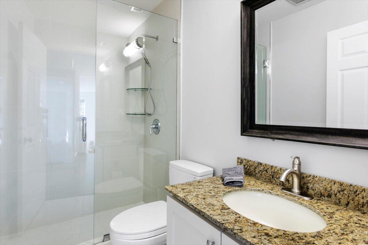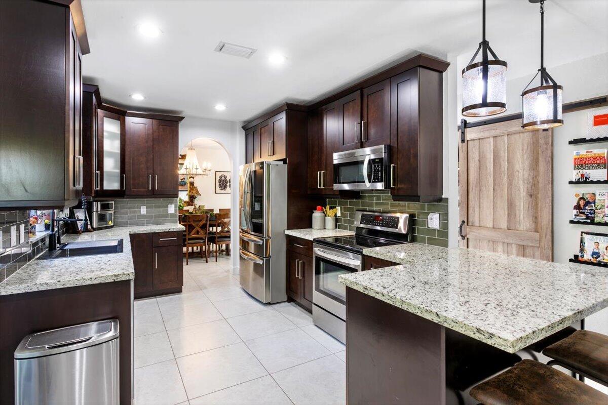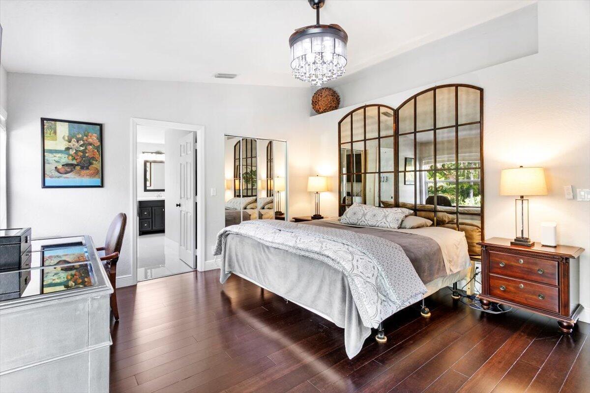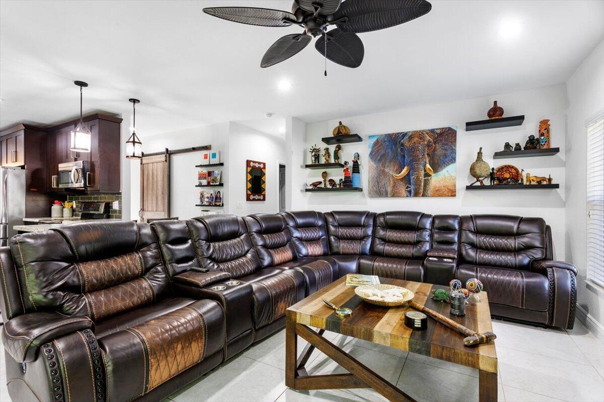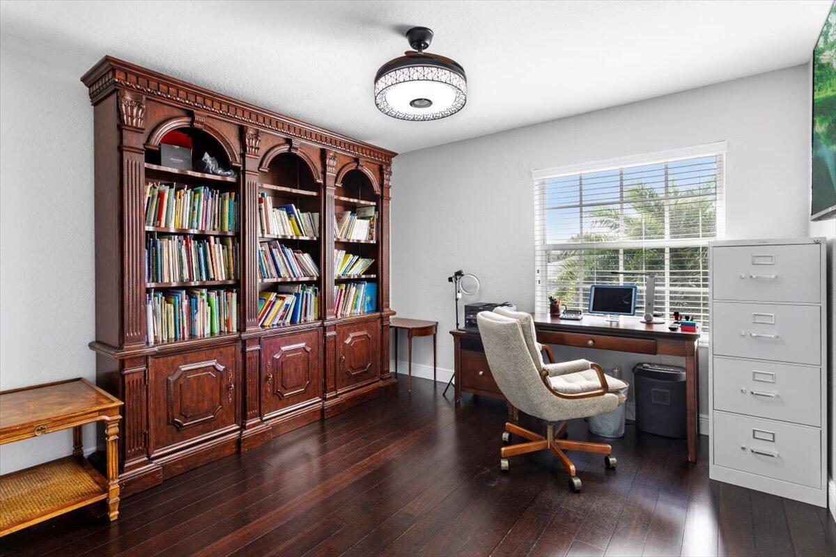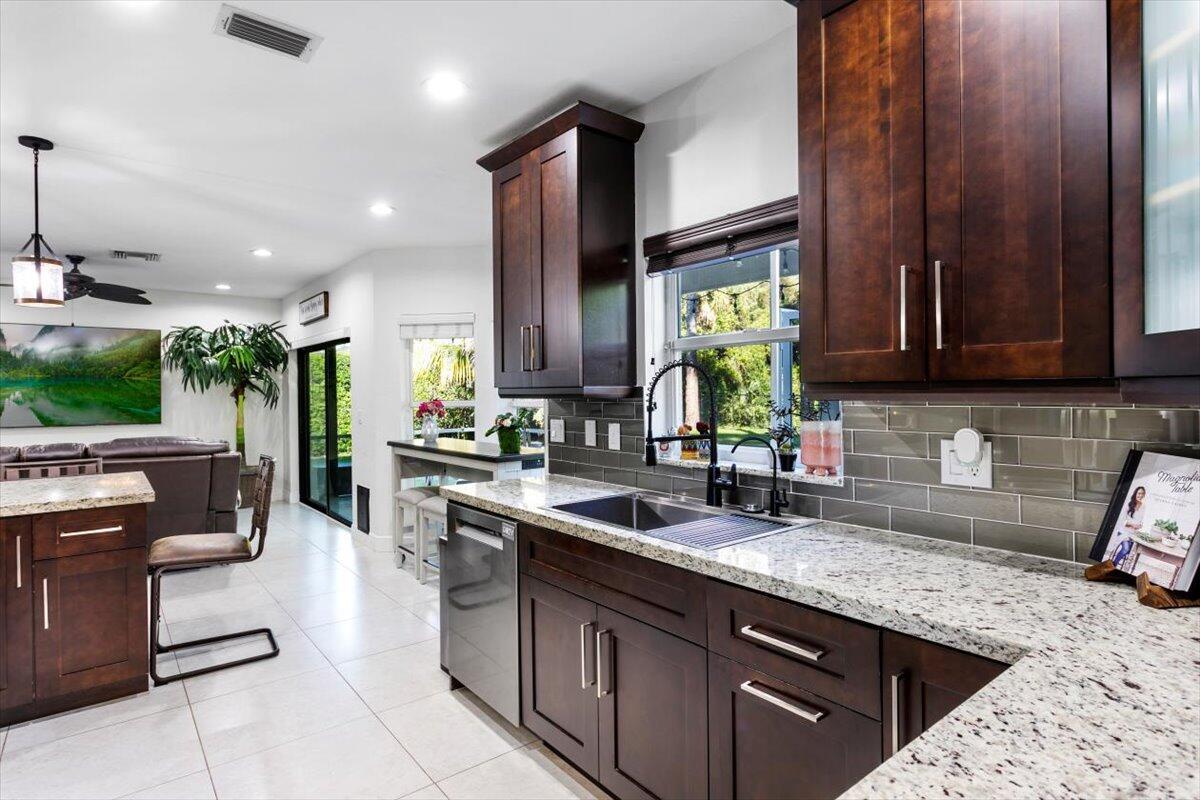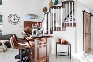 Welcome to your private sanctuary in the desirable Crestwood community, a beautifully updated residence where modern design meets effortless Florida living. Ideally positioned on lush preserve lot with N/S exposure, this home offers a rare sense of tranquility while keeping you close to everything Royal Palm Beach has to offer. From the curb, a long driveway and manicured landscaping set the tone for what's inside. Enter through the front door to find sunlit interiors, soaring ceiling, and elegant 24x24 porcelain tile flooring that flows throughout the open living spaces. The renovated kitchen is designed to impress, showcasing granite countertops, subway tile backsplash, custom soft-close wood cabinetry, LG stainless steel appliances, and double pantries for extra storage.Overlooking the spacious family room area and screened patio, it's the ideal hub for entertaining or relaxed evenings at home. The first floor includes a flexible bedroom, utility room or office, a full bath and laundry room with sink, providing both comfort and convenience for everyday living. Upstairs, the primary suite is a retreat of its own with vaulted ceilings, hardwood floors, and a private balcony overlooking the preserve, an ideal spot for morning coffee or sunset views. The spa-inspired bath features dual vanities, an oversized glass-enclosed shower, and a soaking jacuzzi tub. Three additional bedrooms offer versatility for guests, hobbies, or workspace needs, including one converted into a beautifully organized dressing room with built-ins. Head outside to your backyard paradise, a screened patio for dining al fresco, a fully fenced yard for privacy, and plenty of space for a future pool. Thoughtful touches like built-in pet doors and lush mature landscaping make this home both stylish and functional. Highlights include: new hurricane-rated front and patio doors, updated designer lighting and fans, 7-zone sprinkler system, new gutters, A/C 2021, water heater 2015, reverse osmosis system, smart home features, security cameras, and an insulated garage with ample storage. Located near shopping, dining, parks, and A-rated schools, with easy access to I-95, the Turnpike, and Palm Beach International Airport. Just minutes from Lion Country Safari, the Fairgrounds, and the upcoming Tuttle Royale "CityPlace of the West" development. This residence truly has it all, space, privacy, and location wrapped in timeless Florida charm. Discover why this home stands out from the rest. All that is missing is YOU!