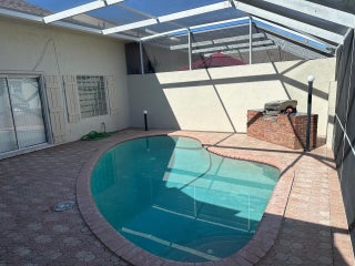 Spacious 3 Bedroom villa with private pool (pool maintenance is included), large screened patio, split bedroom floorplan, volume ceilings, tile flooring with wood floors in all bedrooms. Lots of storage space. Washer/Dryer. Great location wonderful community amenities. Beautifully 16' tile on diagonal. Storm shutters, private corner location. A great Boca private pool rental home!