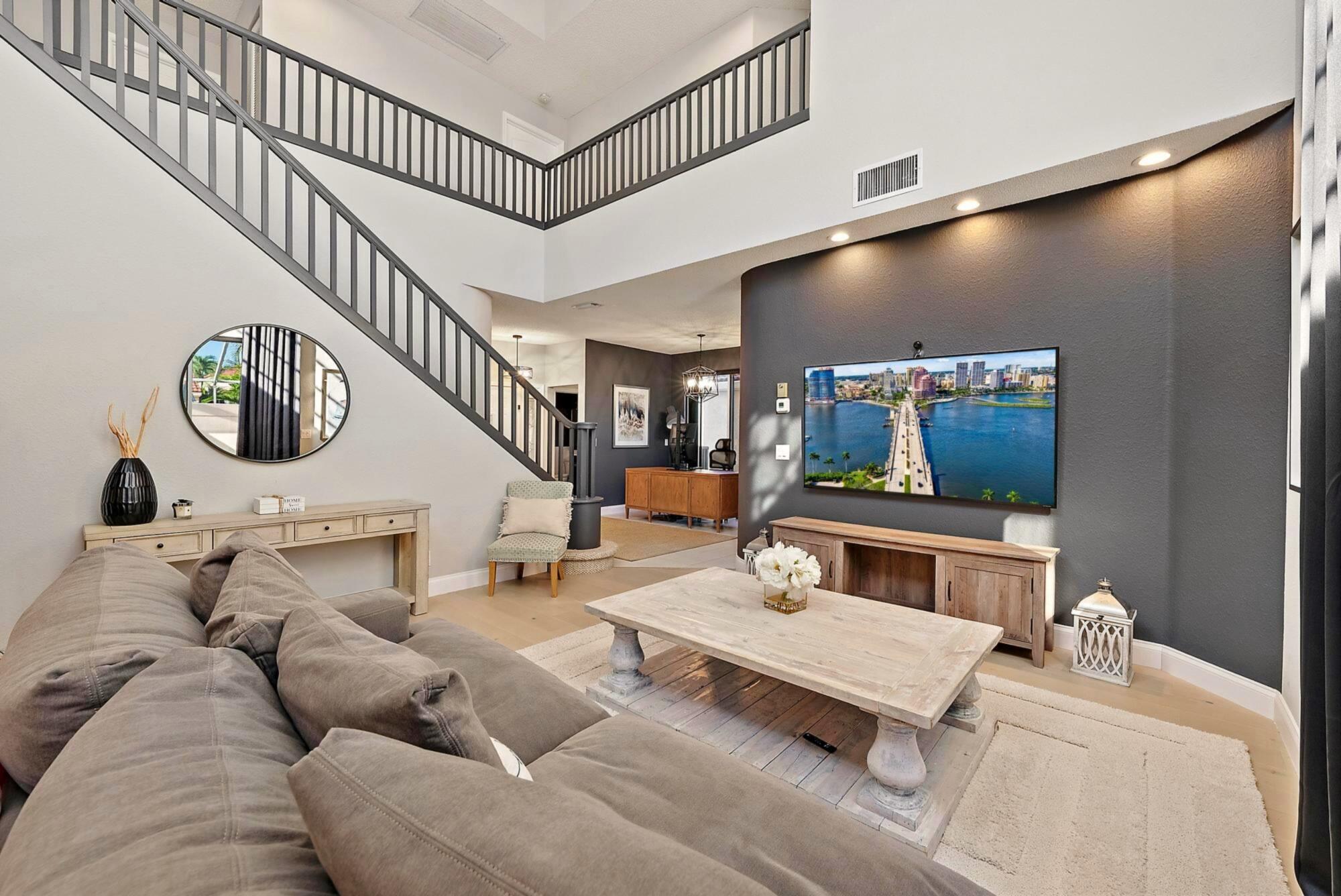 Showcasing a brand-new August 2025 roof, fully renovated bathrooms (2025), and a redesigned kitchen, interior painting, designer lighting, wide-plank oak flooring, new carpeting, baseboards, and a custom primary closet (2024), this beautifully reimagined residence embodies a perfect harmony of timeless charm and modern sophistication.Nestled within the enchanting, Spanish-inspired enclave of Villa d'Este in PGA National, the home has been meticulously transformed throughout. Elegant wide-plank white oak floors, fresh interior paint, and curated designer lighting create an inviting ambiance that exudes both warmth and refinement.The kitchen serves as the home's centerpiece, showcasing an expansive center island, premium new appliances, and stylish finishes that seamlessly blend f