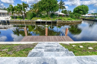 Dock your boat in your backyard living the Florida lifestyle boating, fishing ,paddleboarding & more . Camino Gardens is a prime east Boca location a bike ride away from the Raton resort, Mizner Park and dozens of restaurants and shops and the beaches. Torally renovated 3 bedroom plus a den pool home w private dock. Great open floorplan w/ large covered patio offering an additional 600 SF + outdoor covered living space, New impact windows & doors 2022. Newer roof 2018, Newer AC , new hot water heater 2023, new appliances &washer/dryer, New Modern hi gloss white kitchen cabinets by Azzurri Kitchens w/ built in Fisher Paykel refrigerator & dishwasher, built in appliance pantry & gorgeous designer porcelain accent wall & white quartz waterfrall countertops with bar seating.Luxury vinyl woodgrain gray flooring throughout, new bathrooms w/ designer vanities & tile, New lighting and plumbing fixtures , New 3 panel doors thruout, New Epoxy garage floors , New gorgeous marble extended patio and stairs with turf area and new Azul pool surface and tile complete this modern home in popular Camino Gardens .prim