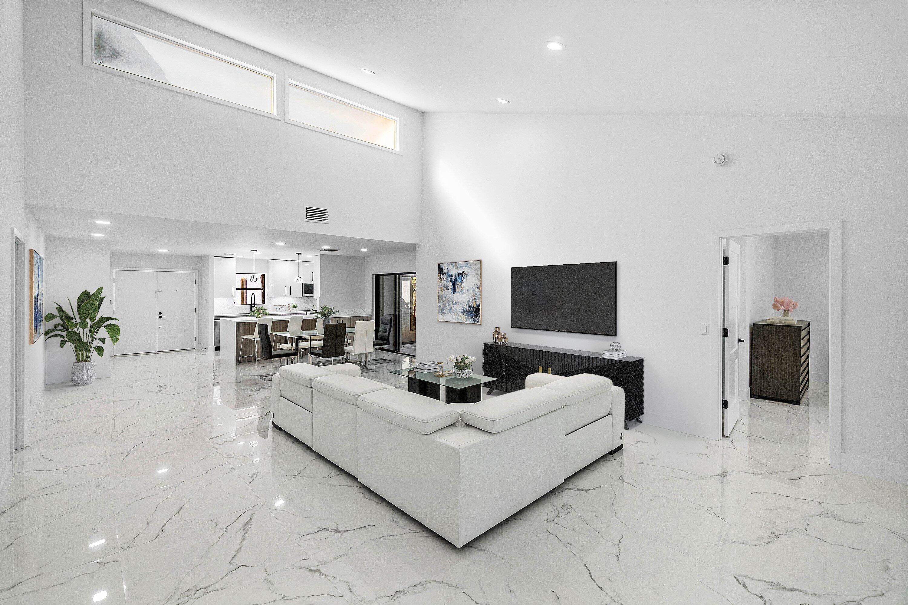 Photos virtually staged. Rare opportunity to own a completely remodeled, 3-bedroom villa in Hampshire at Hunters Run Country Club. This stunning semi-detached residence offers the perfect blend of comfort and luxury. This spacious home boasts 3 true bedrooms, 2 full baths, and a glass-enclosed Florida room across 2,494 square feet of living space. As you step inside, you'll be greeted by an open and airy layout featuring vaulted ceilings, large-format porcelain tile flooring, a contemporary open concept kitchen with stainless steel appliances, a split bedroom layout with a large primary suite with a beautiful spa-inspired bathroom featuring a dual European shower. Two guest bedrooms provide space for hosting your family, with a flex room ideal for a media den setup or home office.Experience world-class Country Club living at Hunters Run. Featuring 54 holes of championship golf (with a brand new East Course designed by Kip Schulties), 18 har-tru tennis courts, 12 pickleball courts, resort-style clubhouse and pool, salon & spa, state of the art fitness center, six dining venues and so much more.