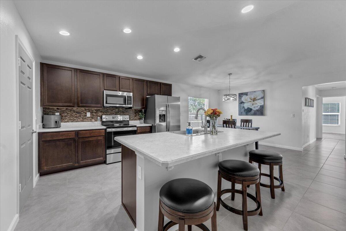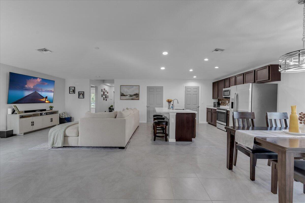 Bright, spacious, updated 4/2 no HOA single family home in Port Saint Lucie! Modern finishes with stainless appliances, luxury vinyl flooring, impact glass and doors, screened patio and fully fenced yard. 2 car garage with LED lighting and freshly epoxy-finished floor. Convenient to 95 and Turnpike, close to Port Saint Lucie's main roads to access shopping, dining, and entertainment.