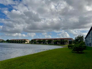 Highly desirable ground-floor 2BR/2BA condo in a serene lakefront setting! Wake up to tranquil water views from the living room, primary suite & screened patio, perfect for relaxing or entertaining. Enjoy 1st Floor convenience with no stairs and easy access to your assigned parking space plus ample guest parking. Interior highlights include neutral tile floors throughout, a spacious walk-in closet, eat-in kitchen, in-unit washer/dryer, fresh paint & full accordion shutters for peace of mind. Century Village 55+ offers resort-style amenities: indoor/outdoor pools, tennis, golf, fitness center, state-of-the-art clubhouse, theater, and shuttle service to shopping and dining. Gated community provides the ultimate active lifestyle, ideally located near major highways, restaurants, and malls.