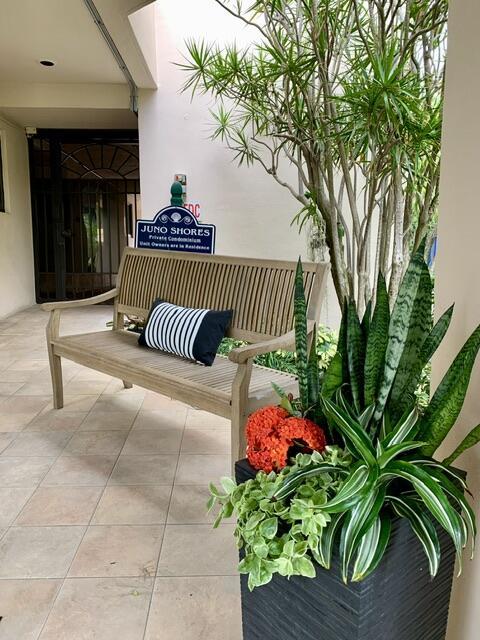 Experience the quintessential coastal lifestyle in this fully renovated ground-floor condo, just steps away from the tranquil shores of Juno Beach. Forget elevators and long walks, simply step out your door and feel the sand between your toes. Since 2021, this unit has been completely reimagined with a clean, beachy aesthetic from floor to ceiling. The new, modern kitchen is equipped with sleek stainless steel appliances, porcelain countertops, and a stunning sea glass backsplash that brings the ocean's palette indoors. With new hurricane windows and a recently replaced AC system, comfort and peace of mind are guaranteed. Enjoy the fresh, updated building, which recently replaced all its windows and resurfaced the pool, providing a pristine setting for your new life by the sea.Roof replaced 2018, Lease restrictions are 4 times per year, minimum 30 days per lease.