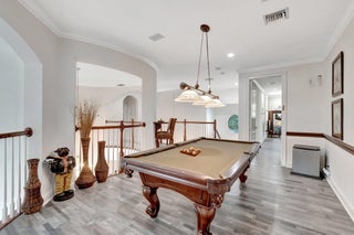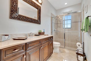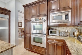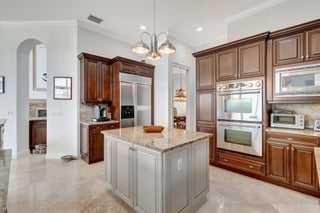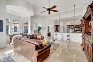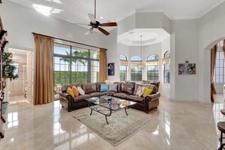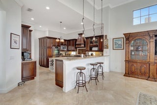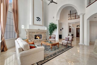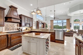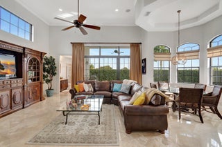 Welcome to Equus - This 5-bedroom estate is an entertainers dream built by Landmark Custom builders. You will be captivated by the soaring ceilings, elegant marble floors and serene views of the private backyard oasis. Enjoy your primary suite downstairs with an additional guest quarter on the opposite side of the home. There are 3 full ensuite bedrooms and a loft upstairs with room for everyone. The chef's kitchen is a culinary dream equipped with a gas stove, double ovens and premium stainless-steel appliances all overlooking the family room for seamless living and entertaining. The formal living area has a welcoming gas fireplace and custom bar area, perfect for gatherings. This home is equipped with full hurricane impact windows for your peace of mind.Outside you will find a private retreat with a newly resurfaced pool, summer kitchen and maximum privacy. Living in Equus means enjoying resort style amenities, including a clubhouse, community pool and hot tub, fitness center, Har-Tru tennis courts, a billiard room, a tot lot, a party room and fire pit with BBQ grills. Pickleball courts are also on the way. HOA covers cable, internet, security, common areas, trash removal, and sprinklers, offering exceptional value.