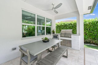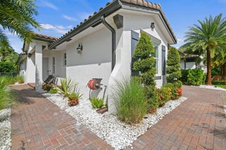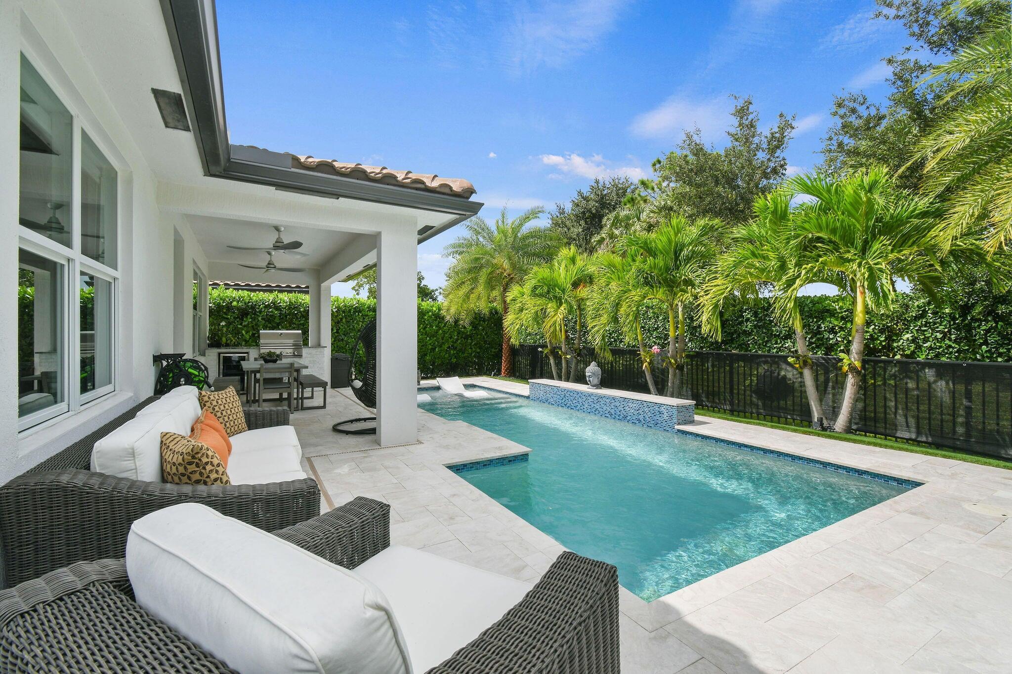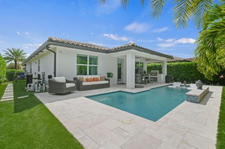 This beautifully appointed 3-bedroom, 2-bathroom residence with a 2-car garage offers the perfect opportunity for year-round living just seven minutes from the equestrian heart of Wellington. Built in 2020, the home features an open and inviting floor plan with abundant natural light, impact-rated windows and doors, electronic window treatments, custom wall paneling, GE Profile appliances, a large kitchen island with designer hood, and a stylish backsplash that elevates the space. Smart-home features and cost-saving solar panels enhance day-to-day living. The private turf backyard, covered lanai, outdoor kitchen, and resort-style saltwater heated pool with jacuzzi provide an effortless indoor-outdoor lifestyle perfect for relaxing or entertaining year-round.For added convenience, the garage is equipped with a Tesla rapid charger. Located in a peaceful, nature-focused community, residents enjoy resort-style amenities including a sparkling swimming pool, tennis courts, and basketball courts. This home provides the ideal blend of modern convenience, privacy, and everyday livability in a prime location close to shopping, dining, and all that Wellington has to offer.