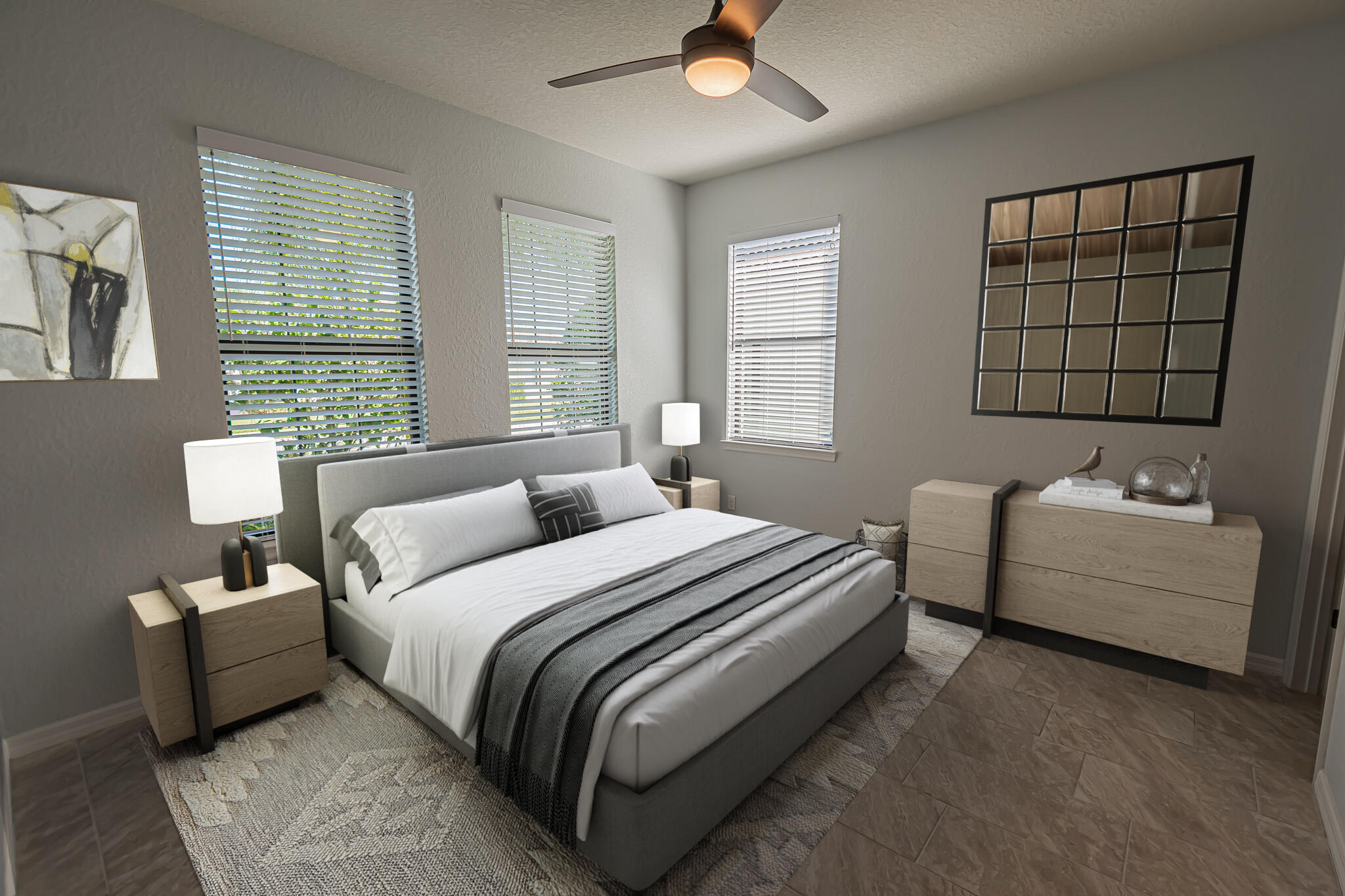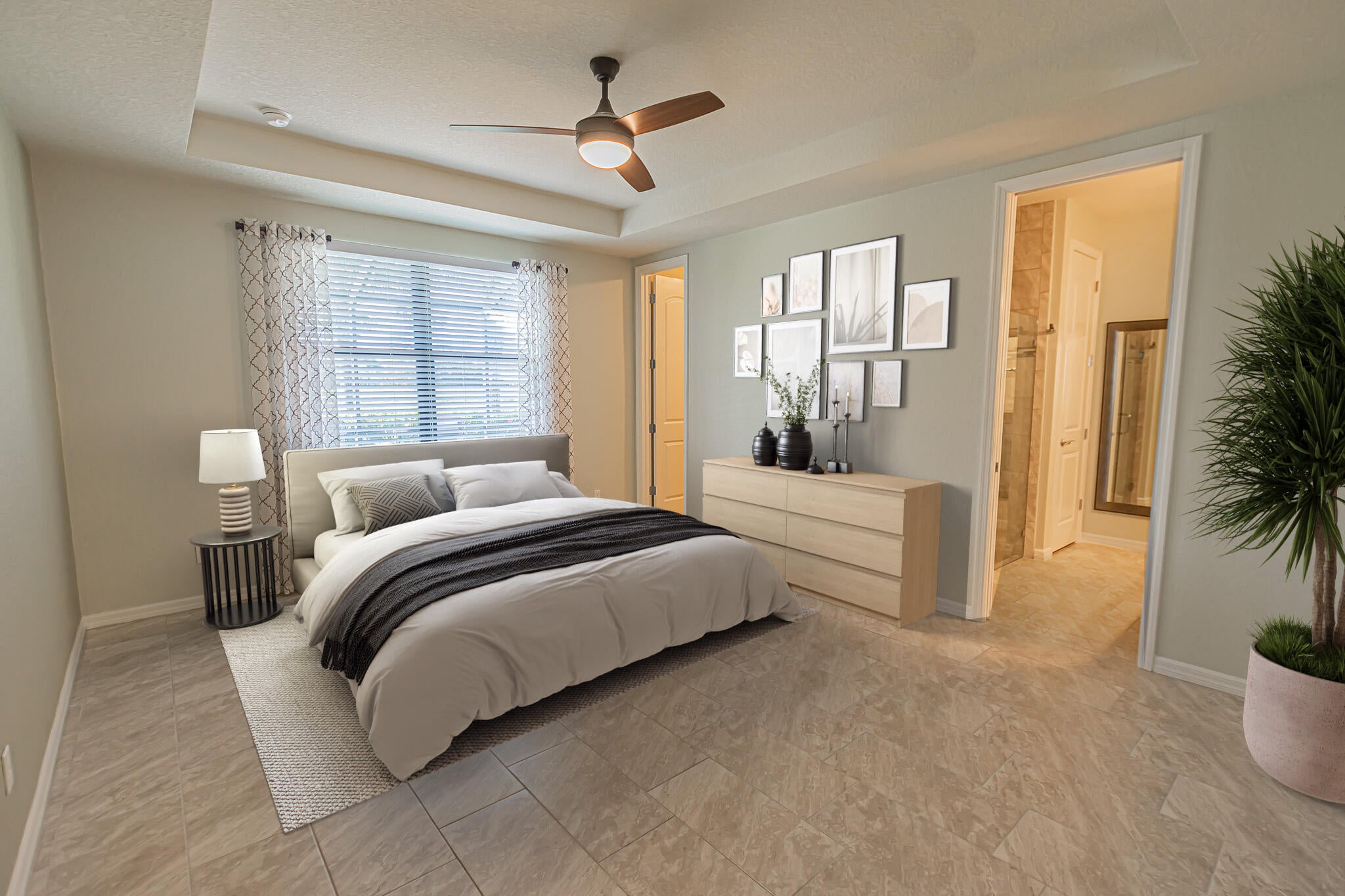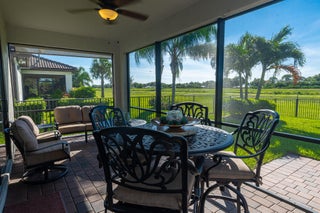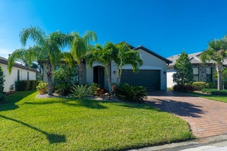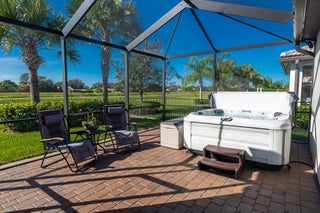 Stunning 2020-built waterfront 4BR/3BA/2CG loaded w/$50K+ in owner/builder upgrades. Elegant open-concept design features tile flooring throughout, high-impact glass, stylish lighting. The gourmet kitchen boasts gas cooking, ss appliances, pantry & breakfast bar seating. Spacious primary suite offers tray ceiling, dual sinks, tiled walk-in shower & large walk-in closet. Step outside to a fenced backyard, extended covered and screened lanai with TV, located on C-23 canal. Additional upgrades include epoxy garage flooring, extra attic storage, laundry tub, front-load washer/dryer and roll shade on the patio slider. Low HOA dues w/community amenities, fitness center, pool, pickleball, convenient location close to shopping, & dining.