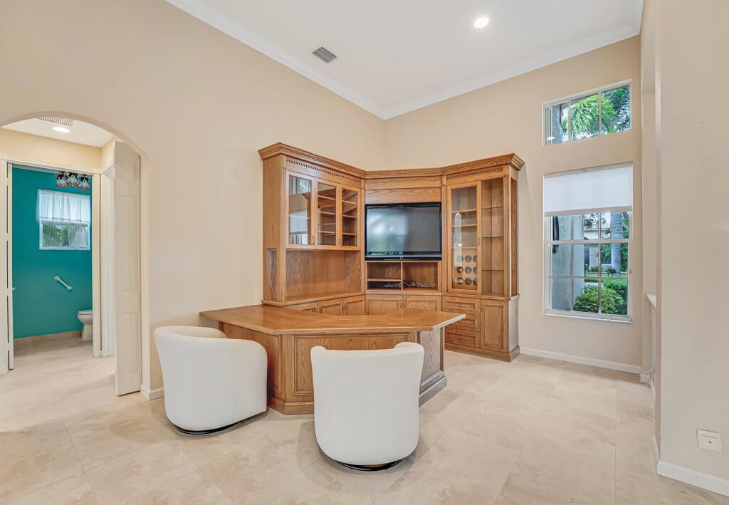 Built-in Shelves, Cook Island, Pantry, Roman Tub, Volume Ceiling, Walk-in Closet, Bar, French Door, Closet Cabinets, Custom Mirror, Laundry Tub