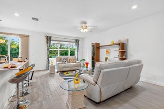 Discover modern comfort in this 2021-built home, where thoughtful design meets everyday ease. Step into spacious living areas warmed by wood plank tile floors, creating a welcoming space for gatherings and relaxation. Impact windows throughout ensure peace of mind during storm season, while the move-in-ready layout invites you to settle in without delay. Nestled in a secure gated community, enjoy amenities like the pool with cabana and a fitness center. Included with the dues is lawn care and sprinkler system. The backyard is fenced in and you don't have neighbors right behind you. The newer construction means lower insurance cost and a newer roof! Imagine unwinding here after a long day. This could be your sanctuary--schedule a showing today and feel the difference.