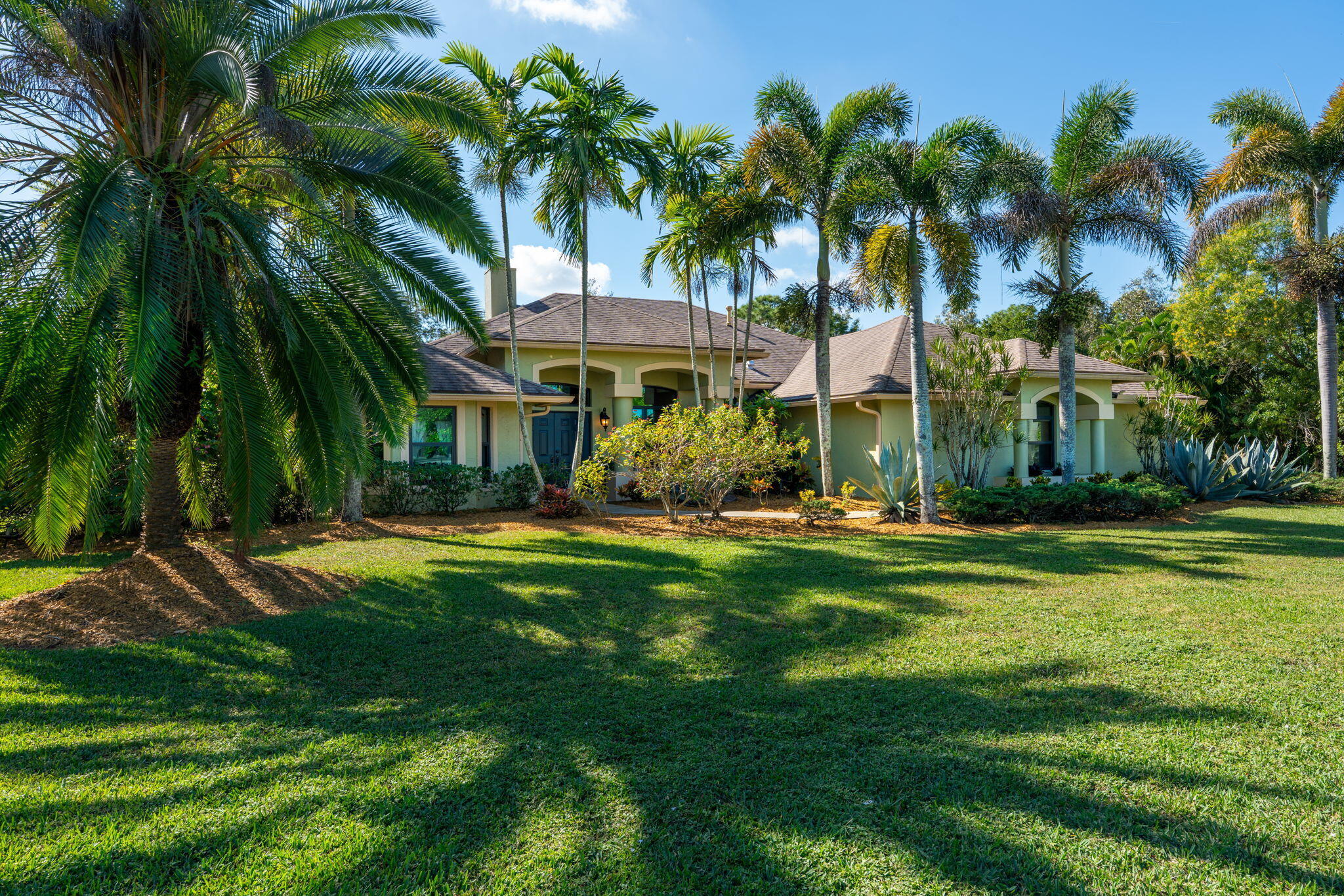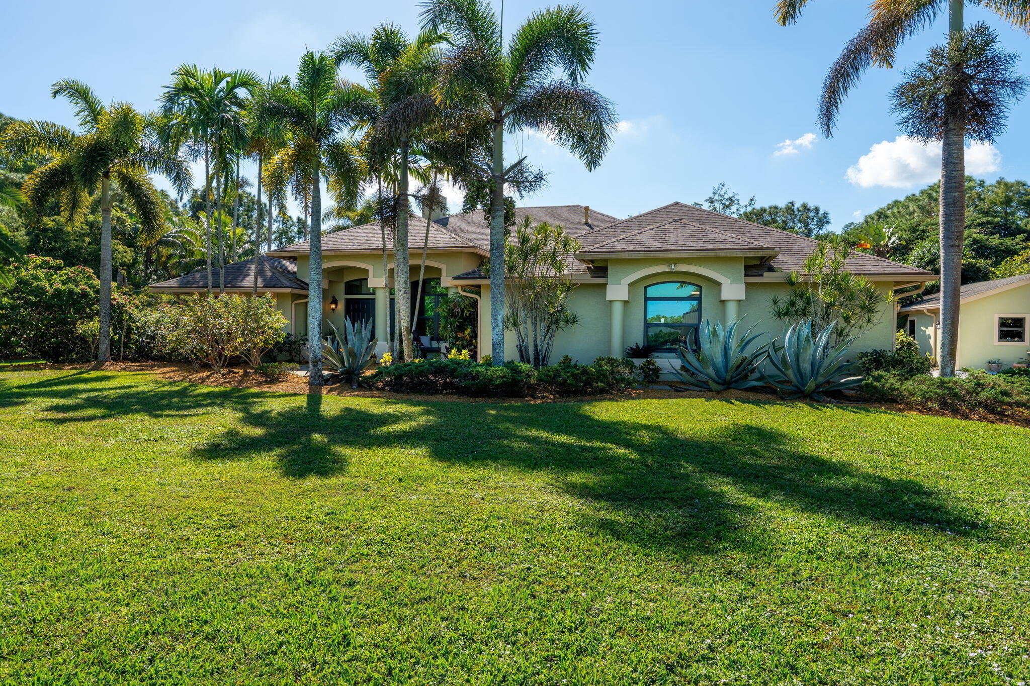Beautiful custom-built 3-bedroom, 2.5-bath home with den/bonus room (optional 4th bedroom) and private home office situated on a 1.20-acre lot in Loxahatchee. Built in 2005, this home offers vaulted ceilings and an inviting open layout filled with natural light. The spacious living area features a gorgeous dual-sided fireplace that creates a warm and welcoming atmosphere, perfect for relaxing or entertaining. Enjoy an oversized 3-car garage plus a detached 860 sq. ft. air-conditioned garage, ideal for a workshop, hobby space, or additional storage. The resort-style backyard is an entertainer's dream with a sparkling pool, expansive patio, and custom fire pit area surrounded by lush landscaping and outdoor lighting for incredible curb appeal. Additional highlights include a newer roof,hurricane impact windows, newer A/C system, whole-home generator, reverse osmosis water system, and gas appliances. Located on a paved road in a desirable area of Loxahatchee, this one-of-a-kind home is a must-see!