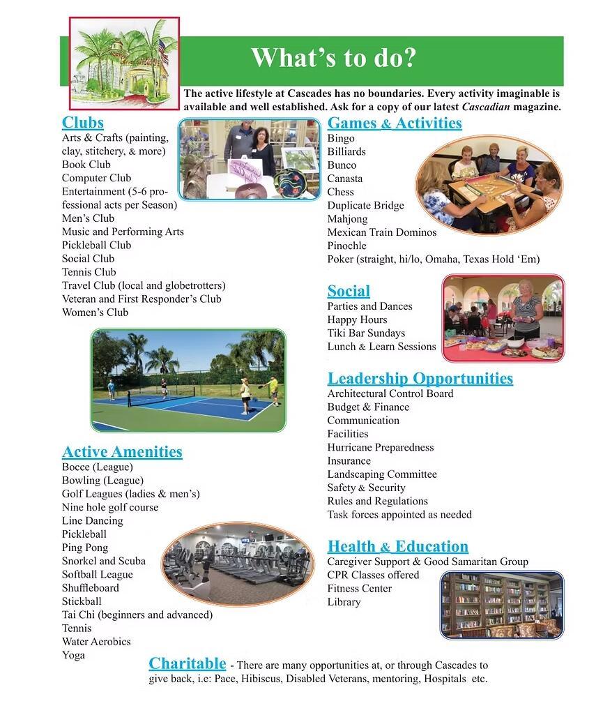 View Virtual TourBike - Jog, Billiards, Bocce Ball, Business Center, Clubhouse, Community Room, Exercise Room, Golf Course, Internet Included, Manager on Site, Pickleball, Picnic Area, Pool, Putting Green, Sidewalks, Street Lights, Tennis