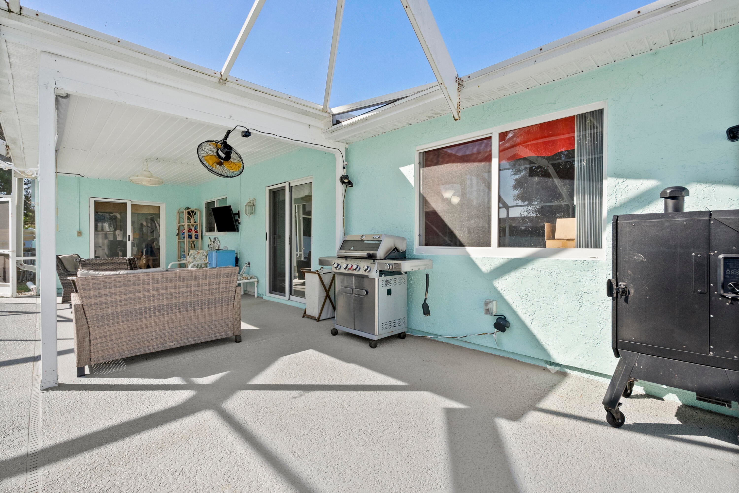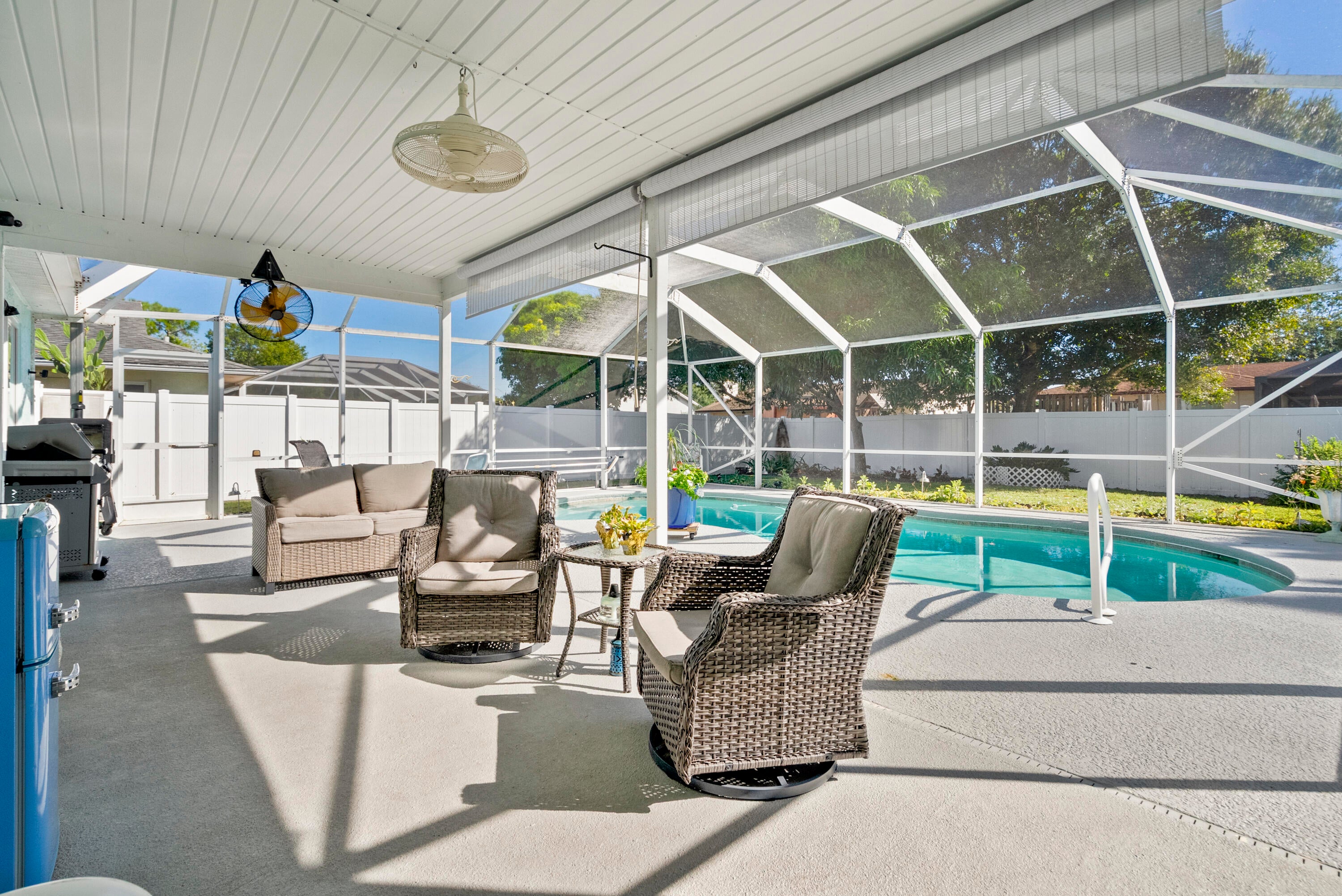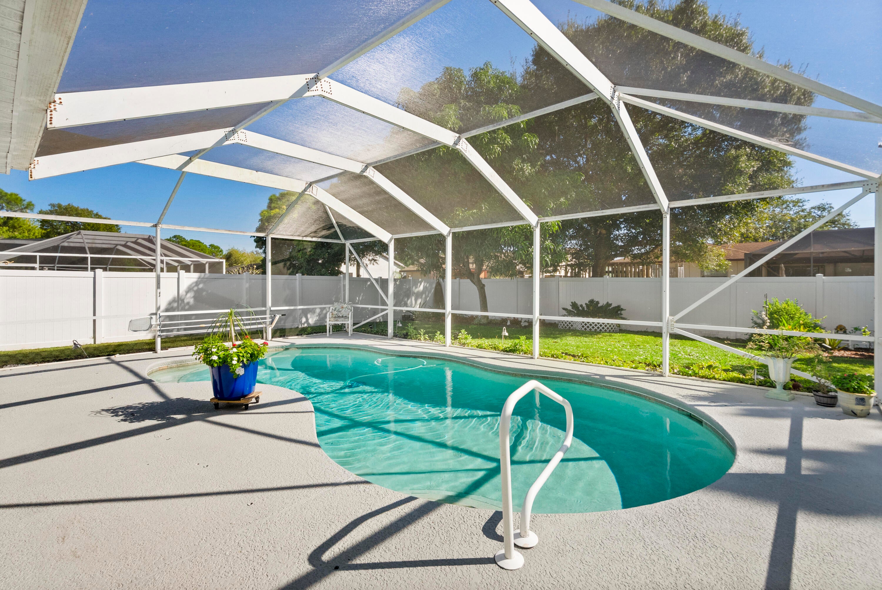 JUST LISTED!! 3 bedrooms 2 baths, saltwater pool home in a great location in Central/East PSL. IMPACT GLASS - NEW ROOF -VINYL FENCE -NEW A/C - Upgraded electrical box - Smart Garage - Large Shed w/hurricane tie downs -RV Hook-Up - Generator Hook up - 2 car garage - Great private backyard Oasis. Watch the sunset floating in your saltwater pool. Great for BBQ's, entertaining and relaxing. Great for your pets, too - Minutes to the beach, highways, botanical gardens, shopping, golf, fishing, boat ramps, theater, community center, waterfront dining, casual and upscale dining. This community offers many community events - live music - plays - shows - fireworks - festivals - Friendly - Call to view this awesome home today. Easy to see!!