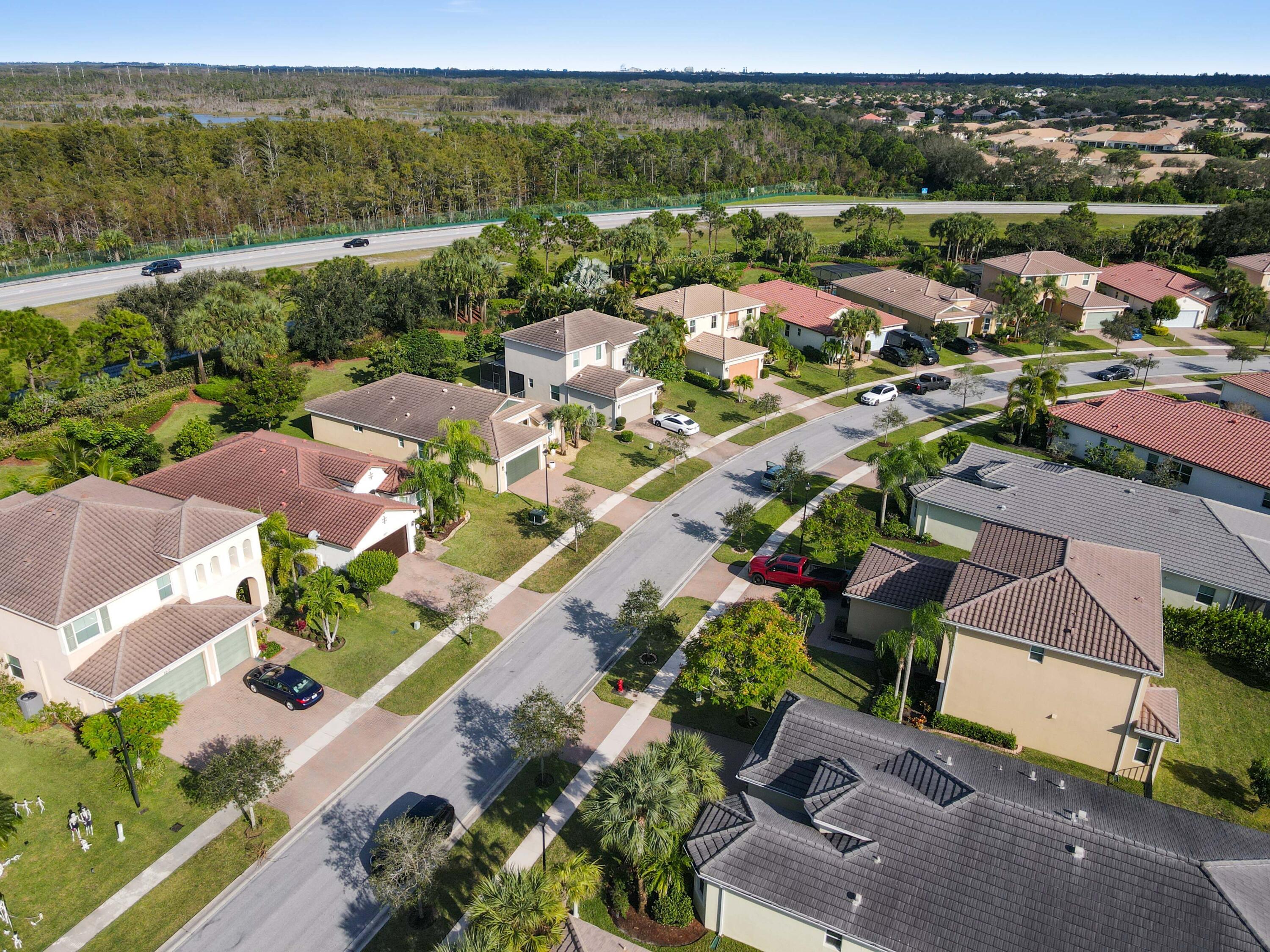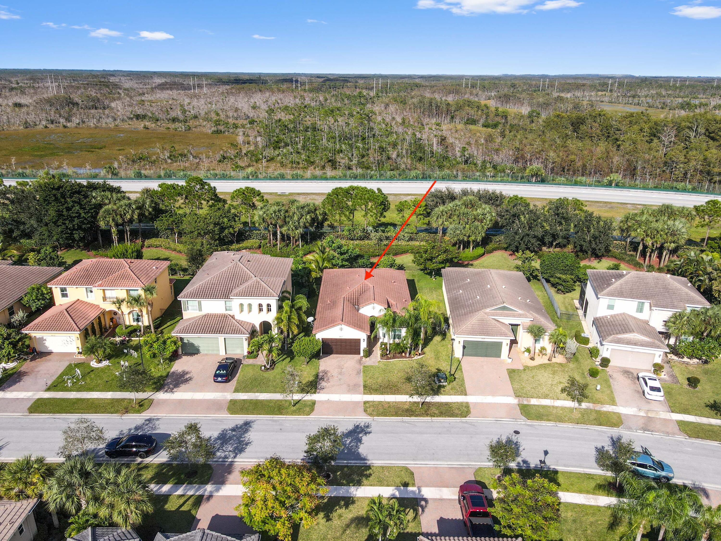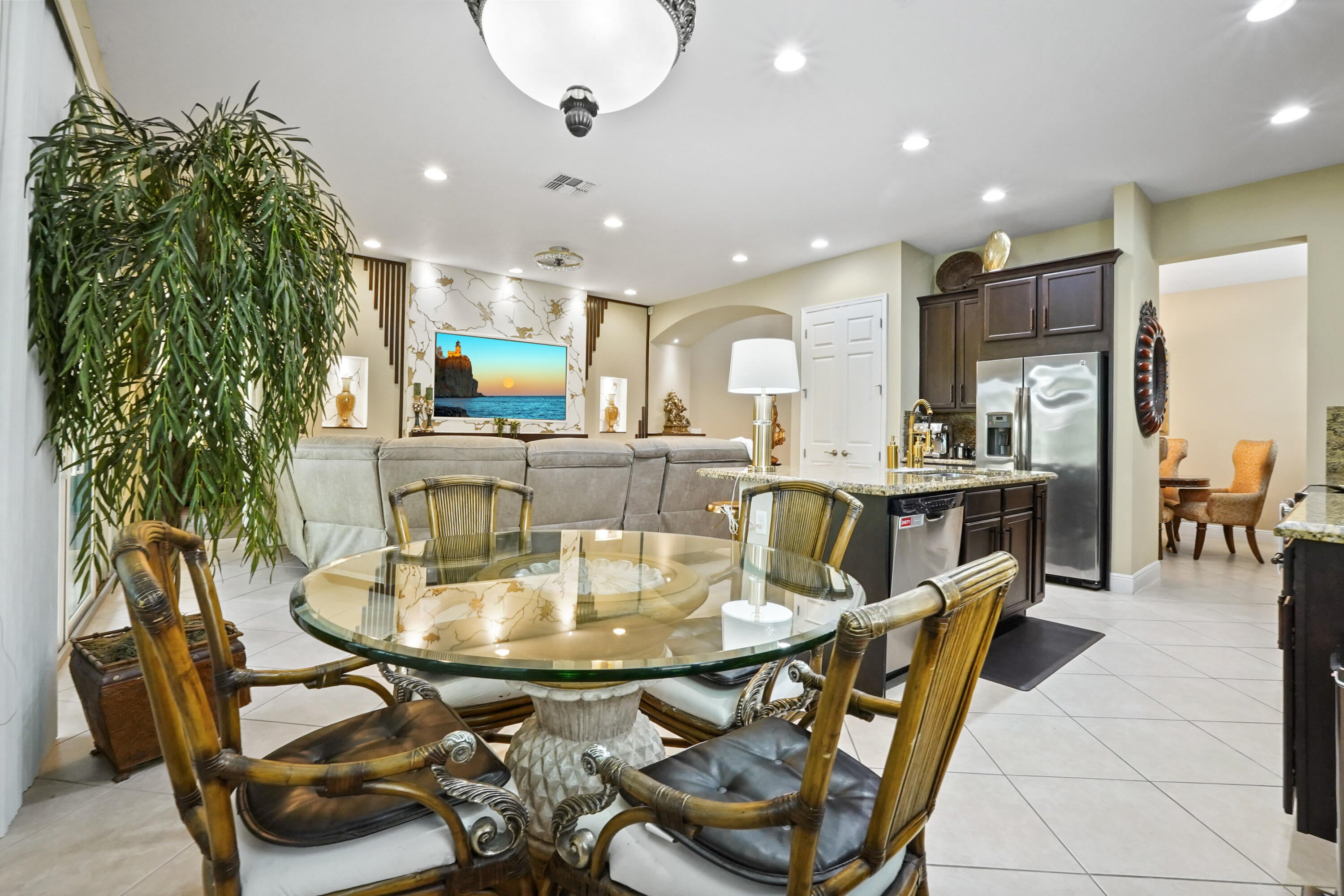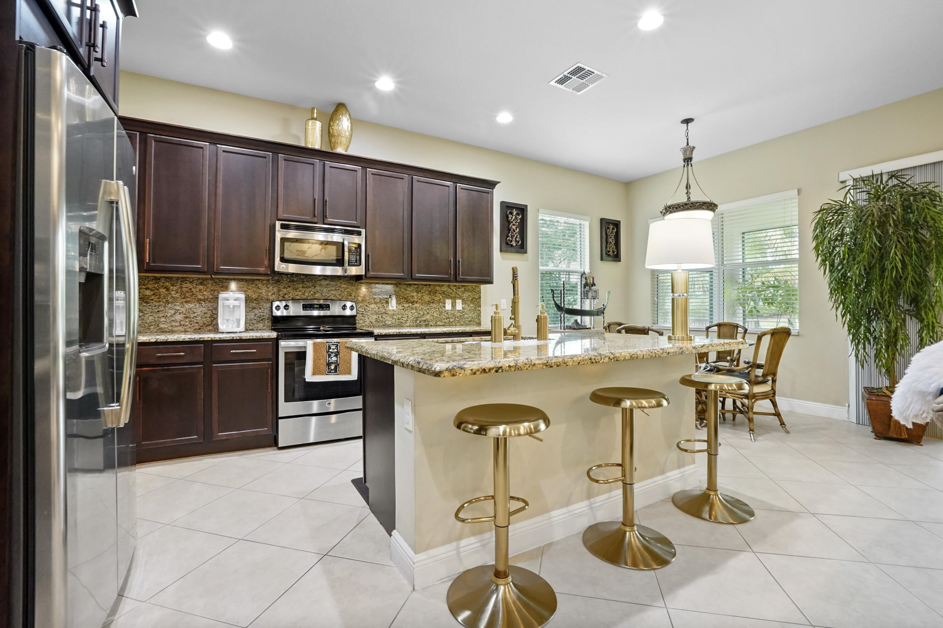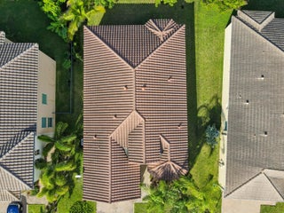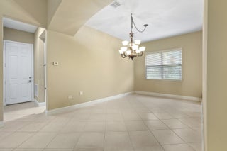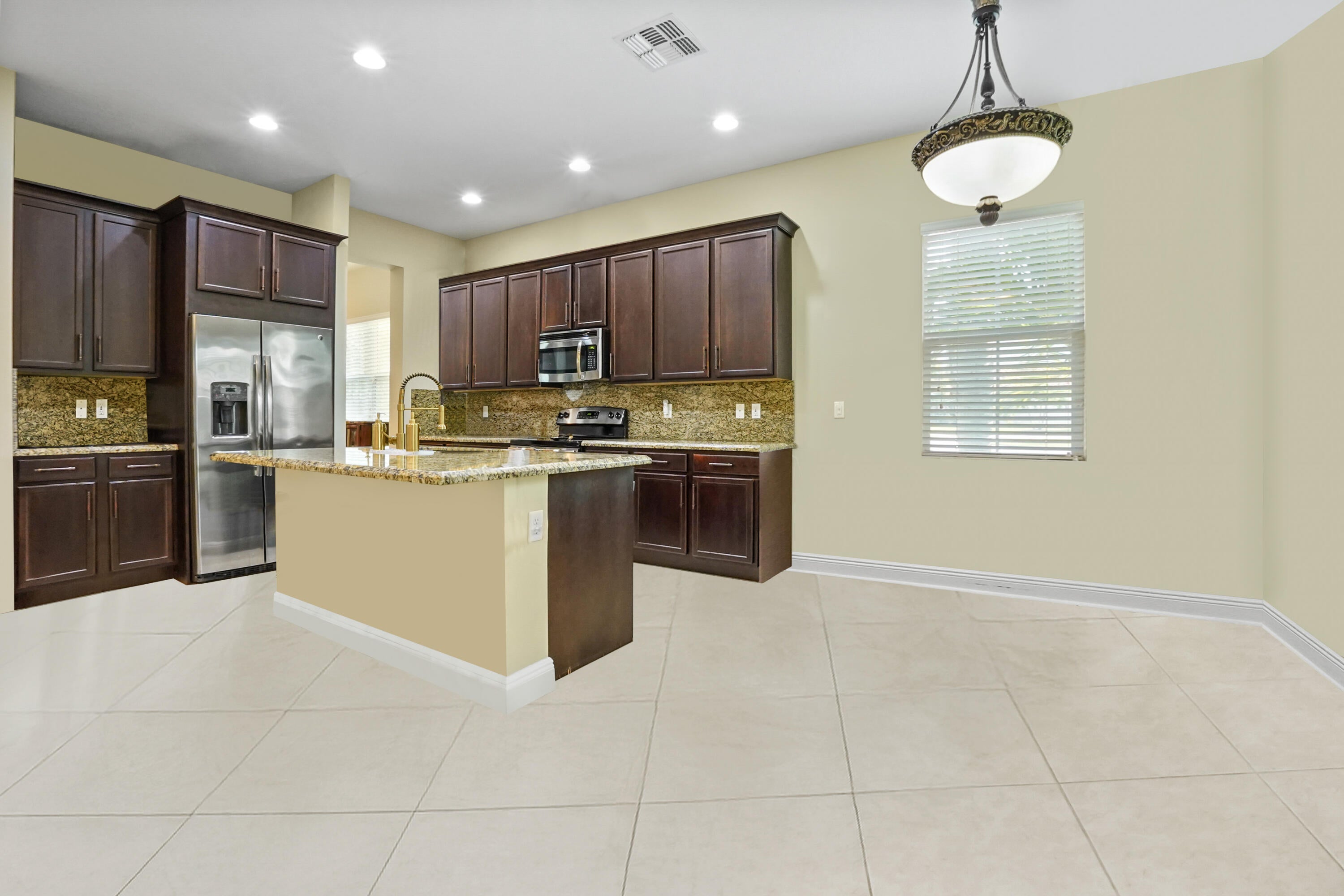 Welcome to this stunning single-family home, perfectly situated on a quiet circle in the desirable gated community of Portosol in Royal Palm Beach. The residence offers 3 bedrooms and 2 bathrooms with exceptional curb appeal, featuring attractive Mediterranean architecture with a tile roof, impact windoews a paver driveway, and lush tropical landscaping. A spacious, arch-covered entry leads to an elegant dark wood front door, setting a sophisticated tone from the moment you arrive.Step inside and be captivated by a beautifully designed, open-concept floor plan that flows seamlessly for modern living and entertaining. The main living areas feature clean, neutral tile flooring and elegant archways, lending a touch of classic charm to the space. The formal dining area is highlighted by a tasteful chandelier and is framed by decorative accents. The great room is anchored by a stunning, custom-built electric fireplace/media wall featuring marble-look paneling and gold accent trim, creating an eye-catching focal point and a perfect space for relaxing. The kitchen is highly functional and connects perfectly to the living space with a granite-topped peninsula. It features dark wood cabinetry, granite countertops, and stainless steel appliances, maintaining a sophisticated aesthetic. The home offers a dedicated laundry room with a sink and cabinets, adding to its convenience. Outside, enjoy the large private backyard and a large screen patio with upgraded travertine tile. Plenty of room for kids to play or to install a pool if desired!!! This residence boasts fantastic recent upgrades that ensure a worry-free experience: the Water Heater was replaced in 2021, and a new Washer and Dryer were installed in 2022. The main living area features beautiful new floors installed in 2023, and the bedrooms now feature updated wood floors (2023) With an attached two-car garage, high-end design accents, and a fluid layout, this home is a beautiful and move-in-ready sanctuary.