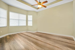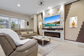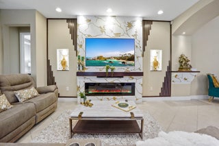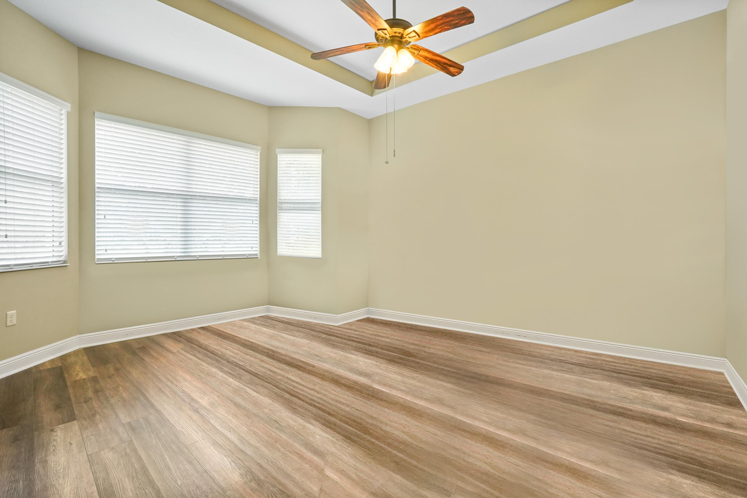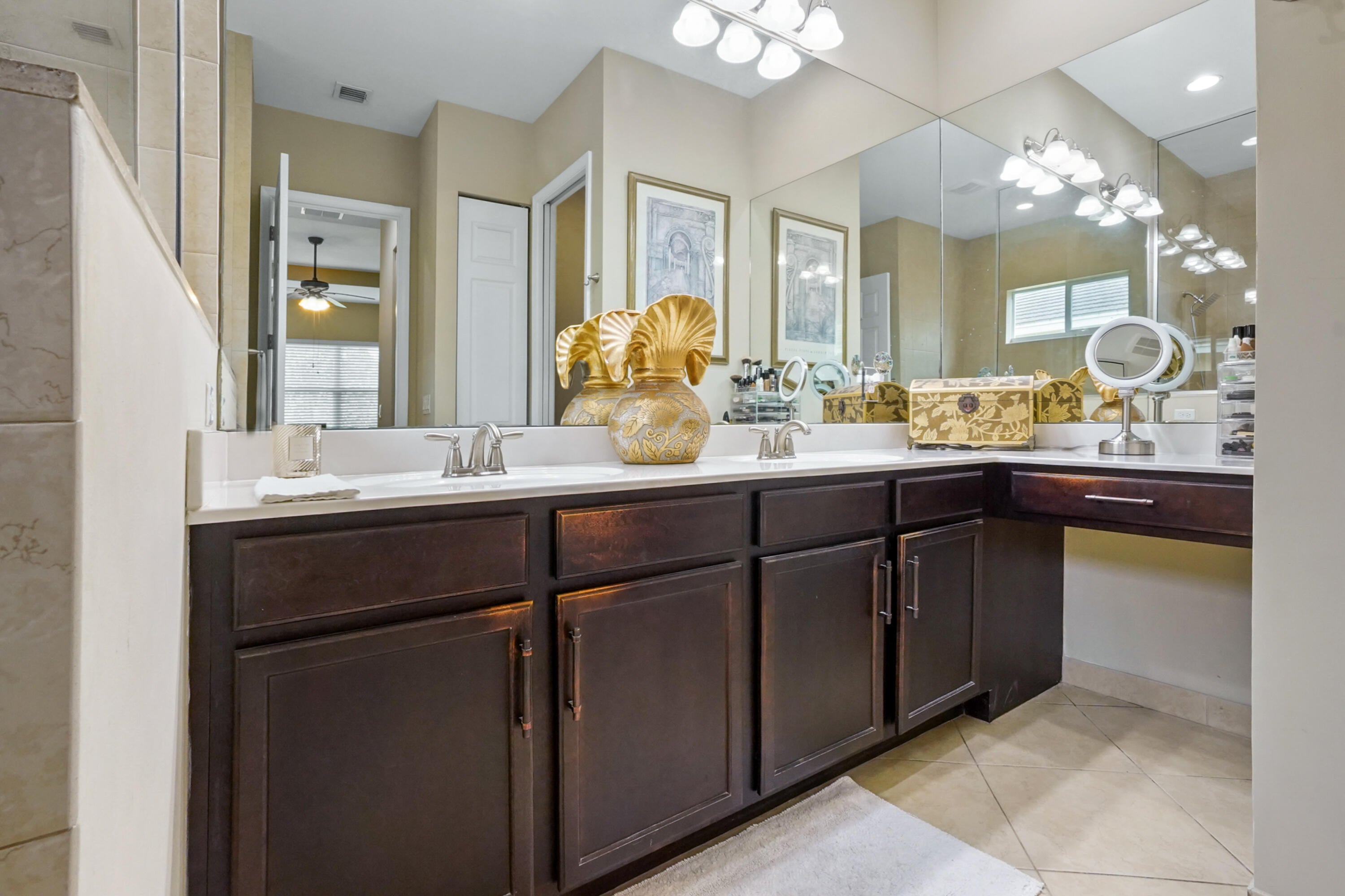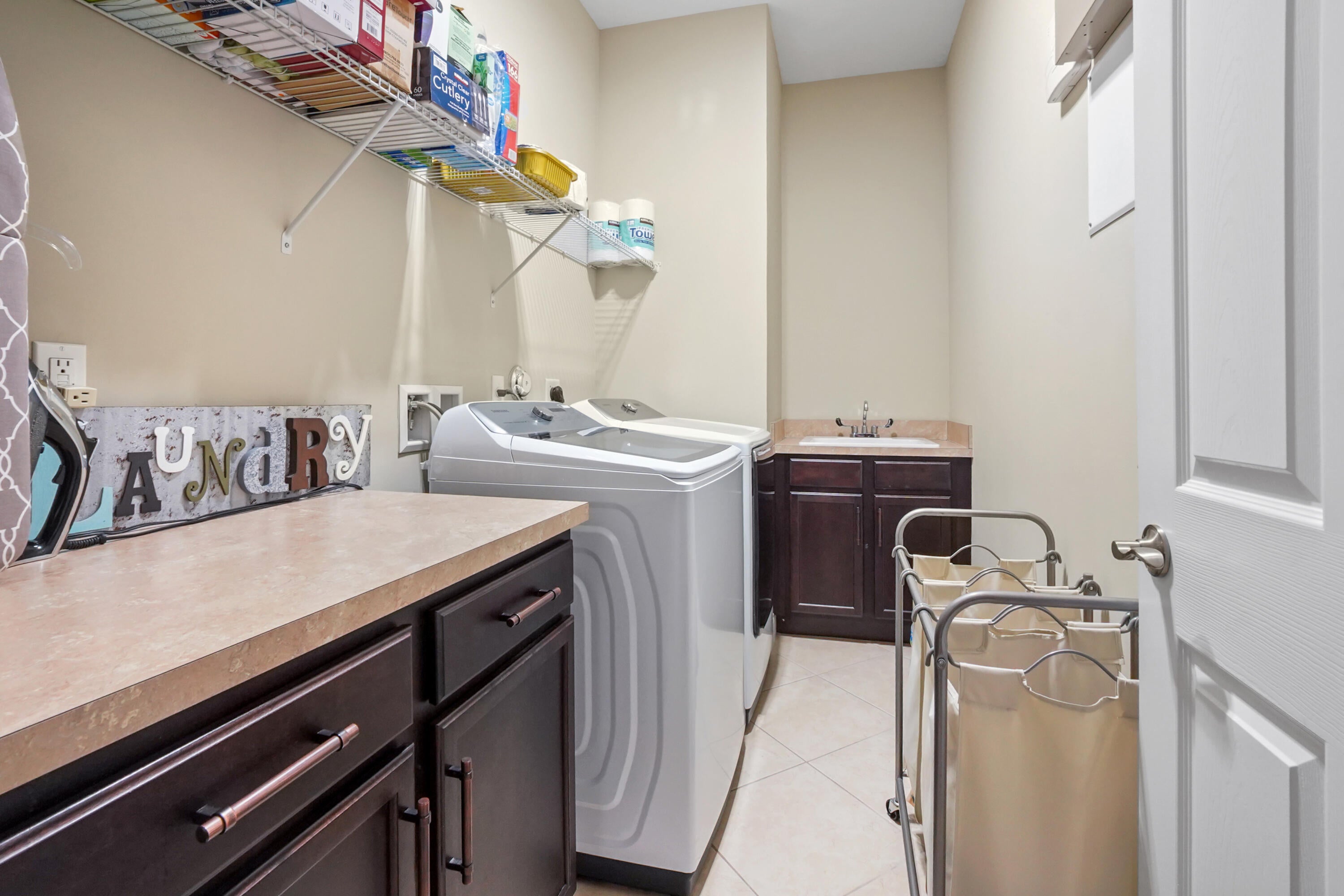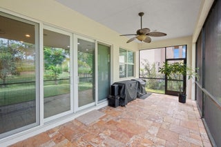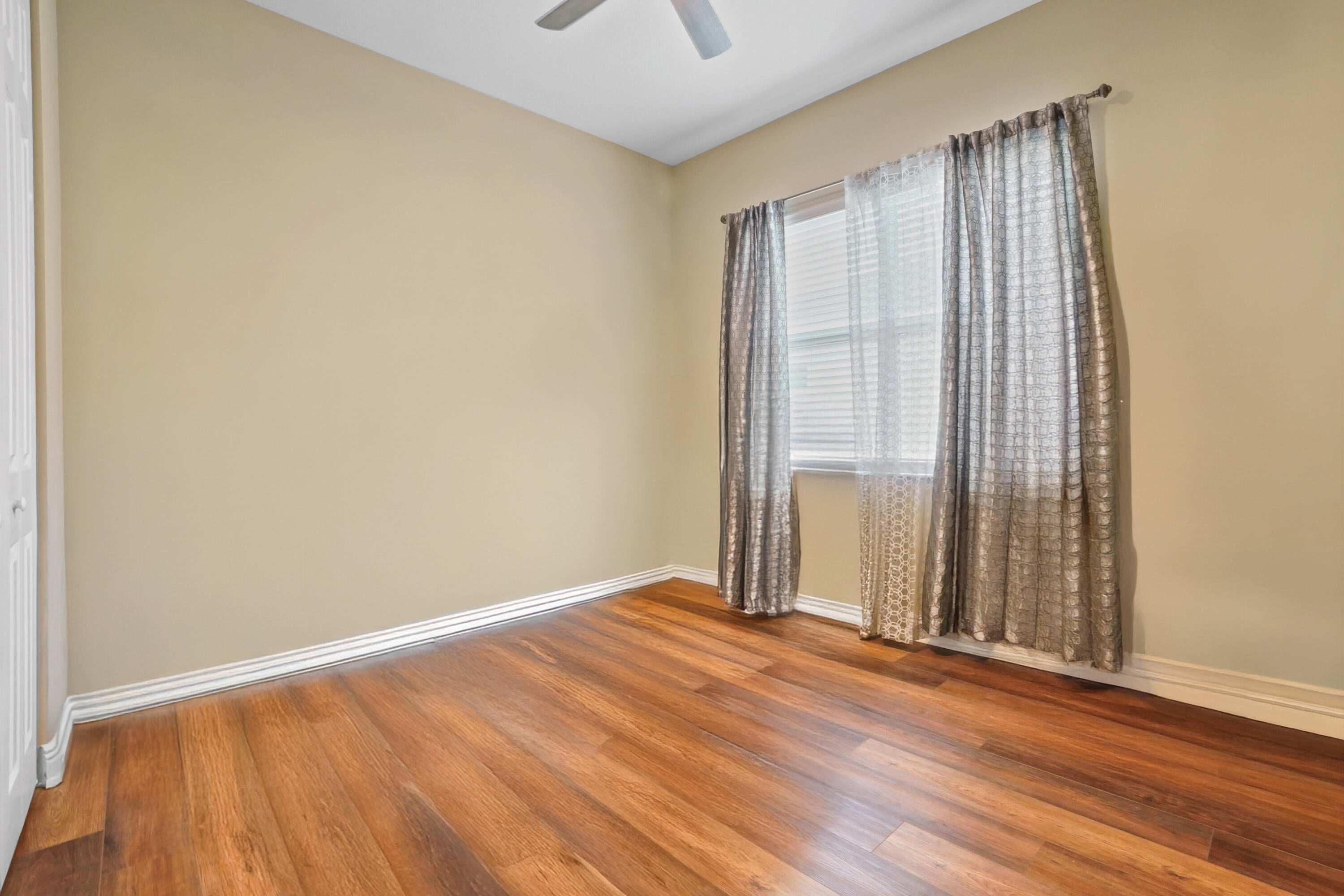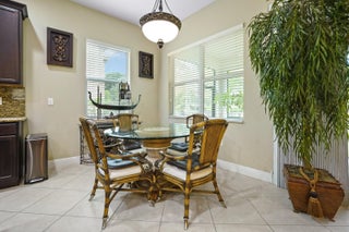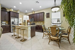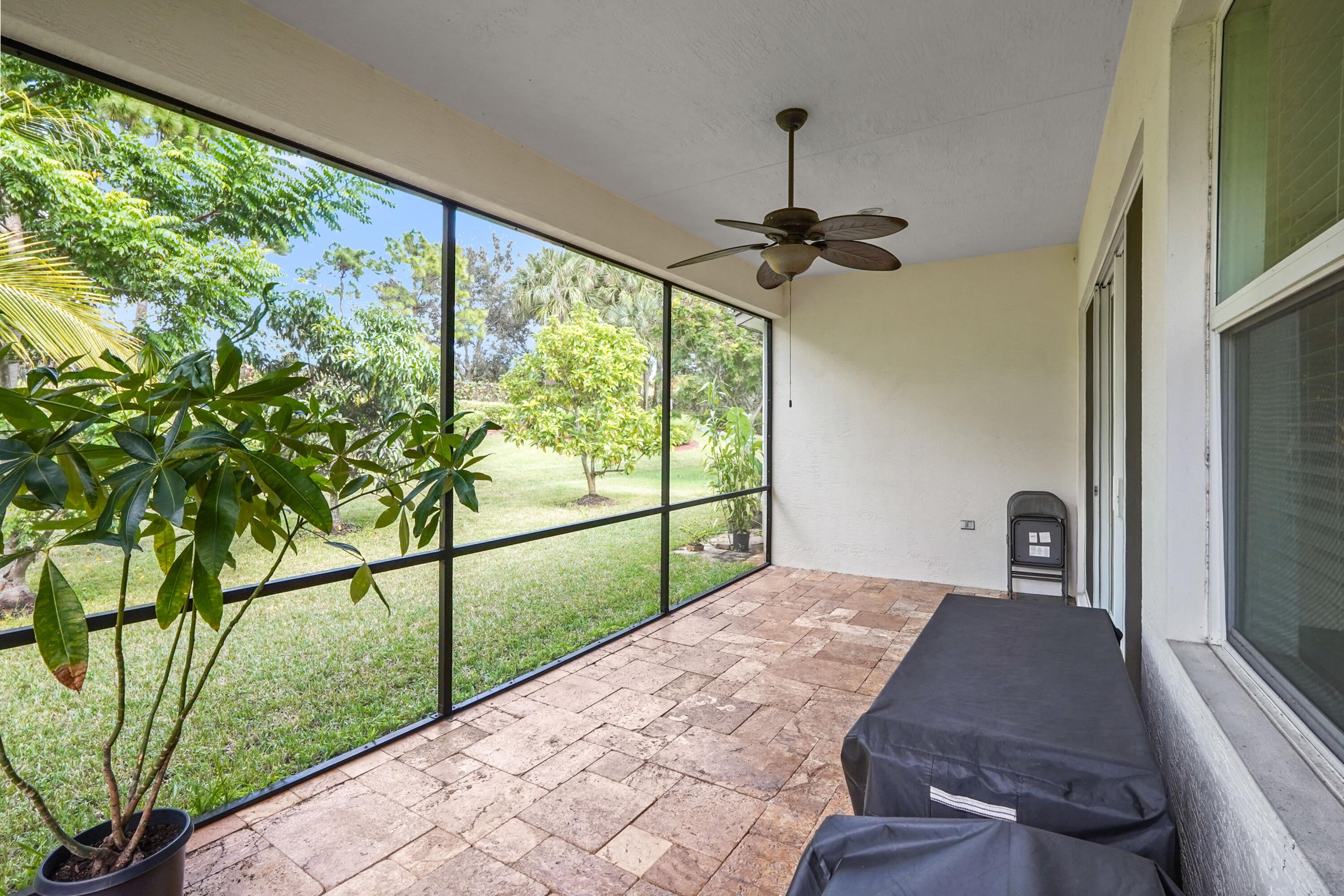 Welcome to this stunning single-family home, perfectly situated on a quiet circle in the desirable gated community of Portosol in Royal Palm Beach. The residence offers 3 bedrooms and 2 bathrooms with exceptional curb appeal, featuring attractive Mediterranean architecture with a tile roof, impact windoews a paver driveway, and lush tropical landscaping. A spacious, arch-covered entry leads to an elegant dark wood front door, setting a sophisticated tone from the moment you arrive.Step inside and be captivated by a beautifully designed, open-concept floor plan that flows seamlessly for modern living and entertaining. The main living areas feature clean, neutral tile flooring and elegant archways, lending a touch of classic charm to the space. The formal dining area is highlighted by a tasteful chandelier and is framed by decorative accents. The great room is anchored by a stunning, custom-built electric fireplace/media wall featuring marble-look paneling and gold accent trim, creating an eye-catching focal point and a perfect space for relaxing. The kitchen is highly functional and connects perfectly to the living space with a granite-topped peninsula. It features dark wood cabinetry, granite countertops, and stainless steel appliances, maintaining a sophisticated aesthetic. The home offers a dedicated laundry room with a sink and cabinets, adding to its convenience. Outside, enjoy the large private backyard and a large screen patio with upgraded travertine tile. Plenty of room for kids to play or to install a pool if desired!!! This residence boasts fantastic recent upgrades that ensure a worry-free experience: the Water Heater was replaced in 2021, and a new Washer and Dryer were installed in 2022. The main living area features beautiful new floors installed in 2023, and the bedrooms now feature updated wood floors (2023) With an attached two-car garage, high-end design accents, and a fluid layout, this home is a beautiful and move-in-ready sanctuary.